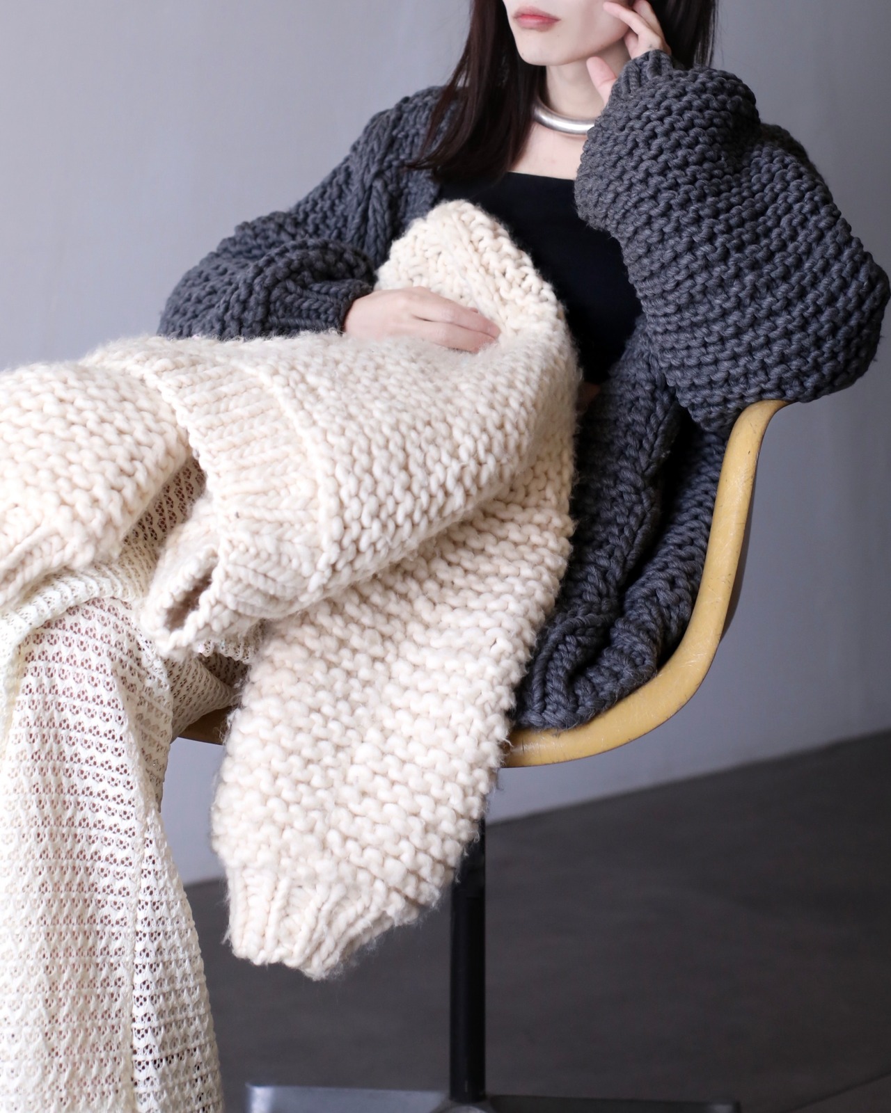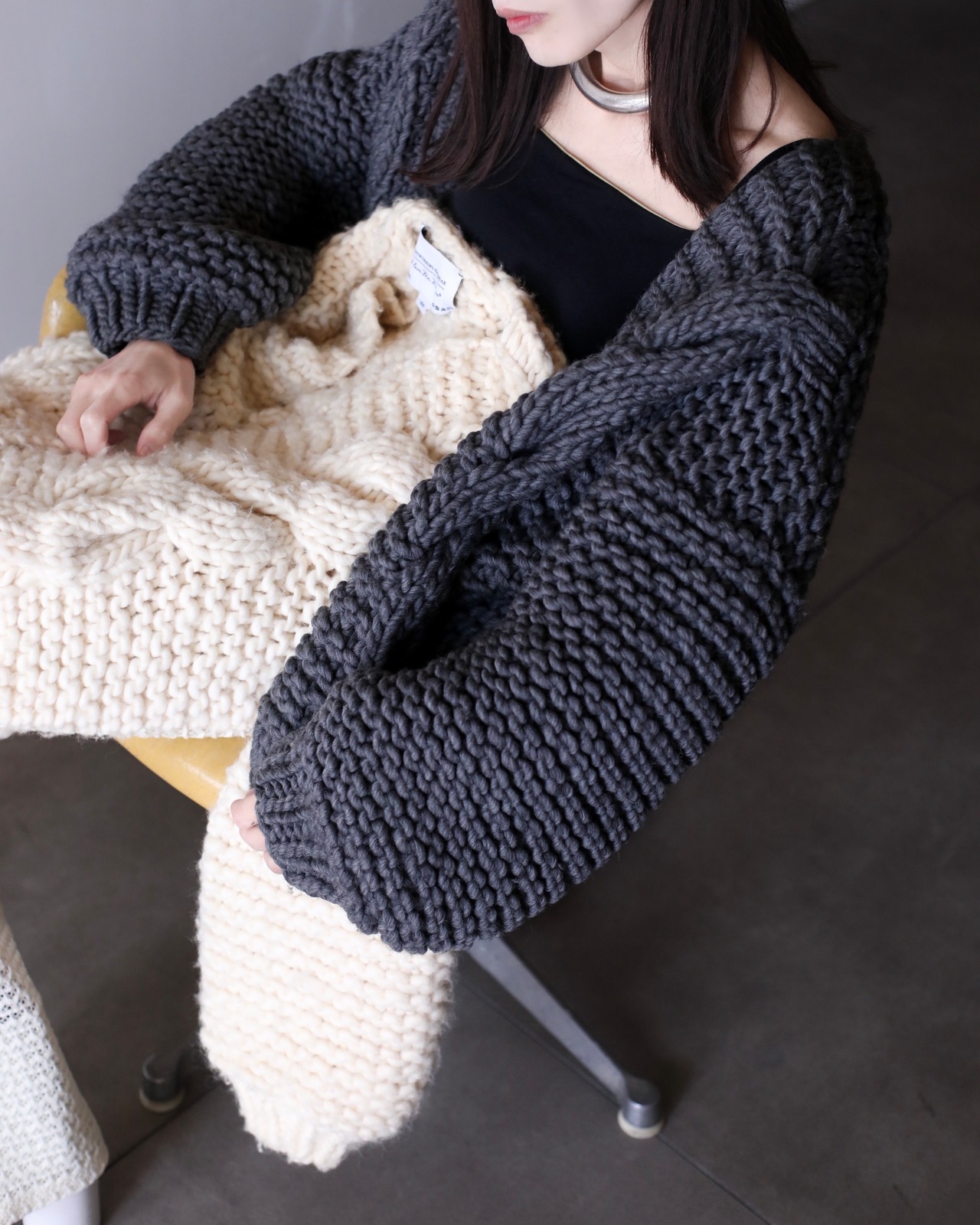 MR.MITTENS "gokubuto arm" super chunky design wide & short silhouette heavy wool knit jacket Made In Peru