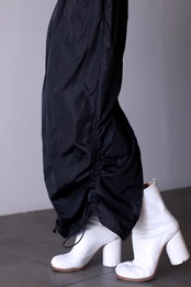 ウエストと両サイド裾にドローコードが仕込まれているディテールで裾のドローはしぼると縦にクシュクシュとしてくれてデザイン性もバッチリです。