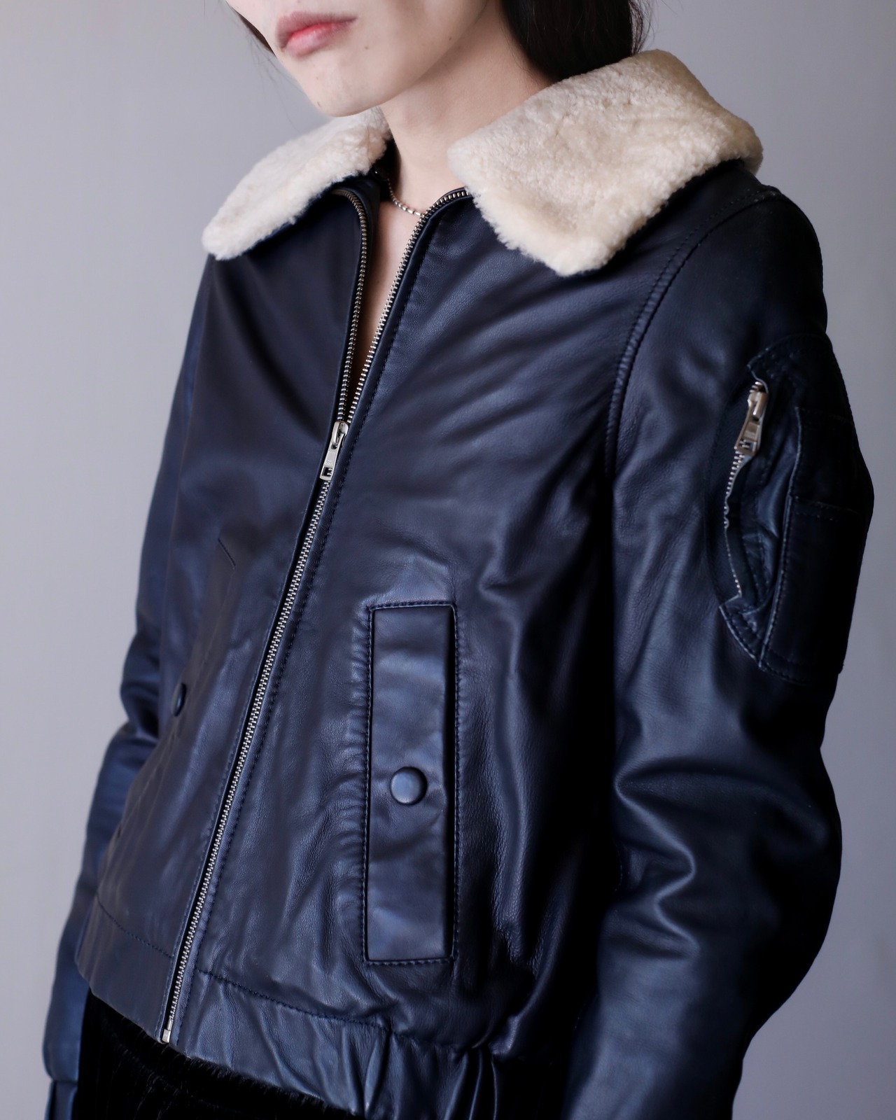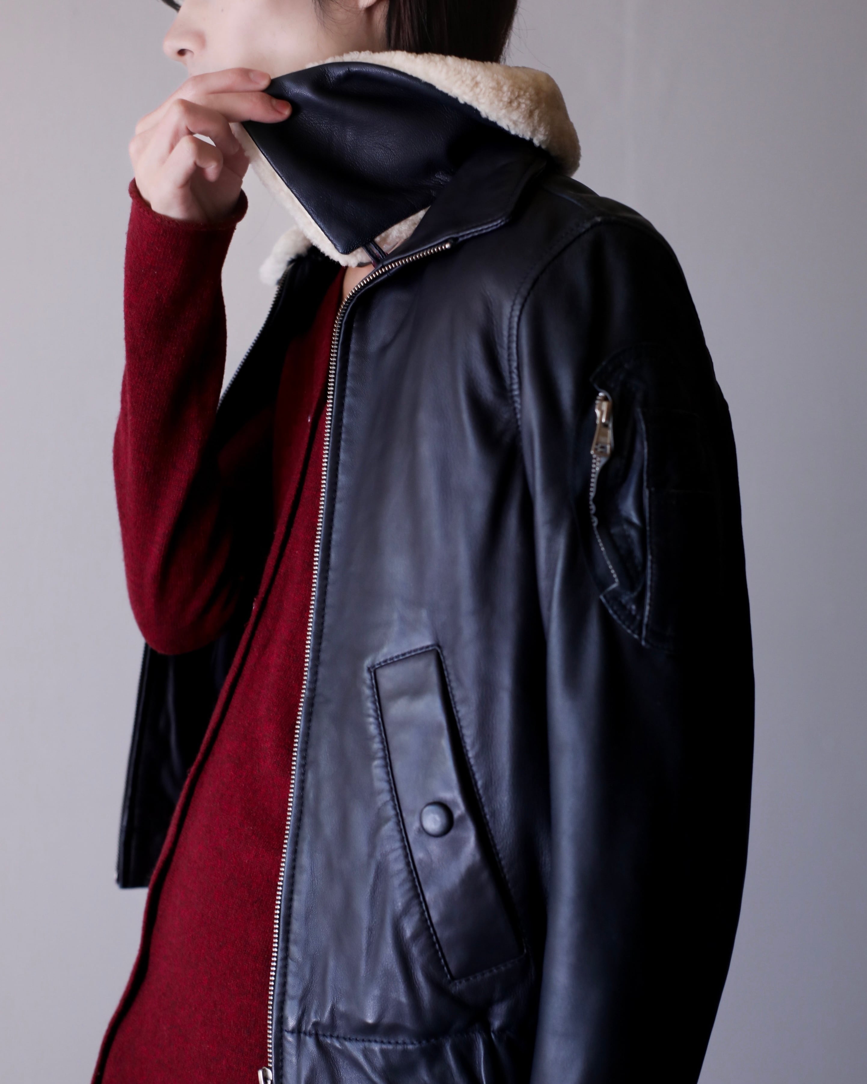 ラムレザームートンジャケット。