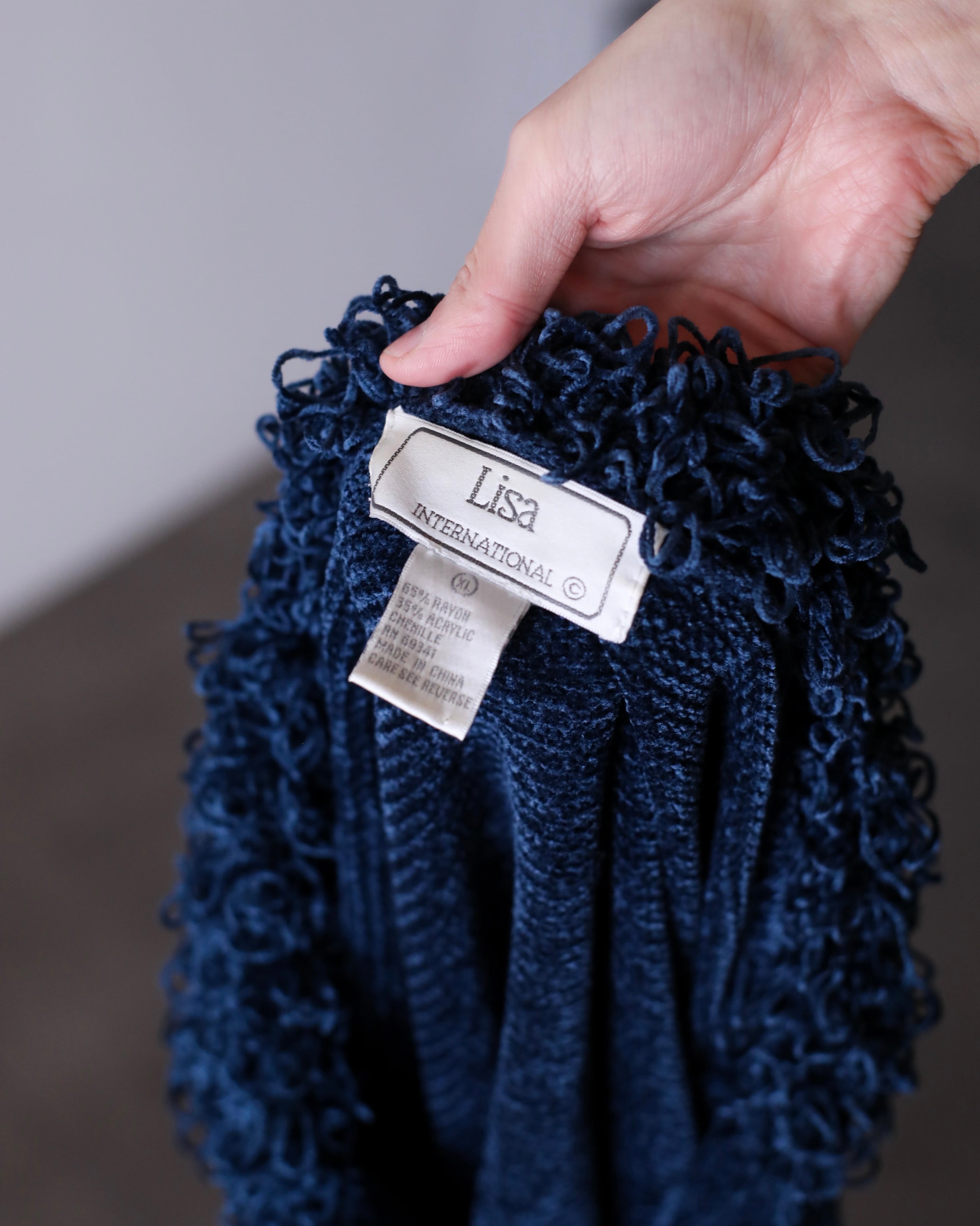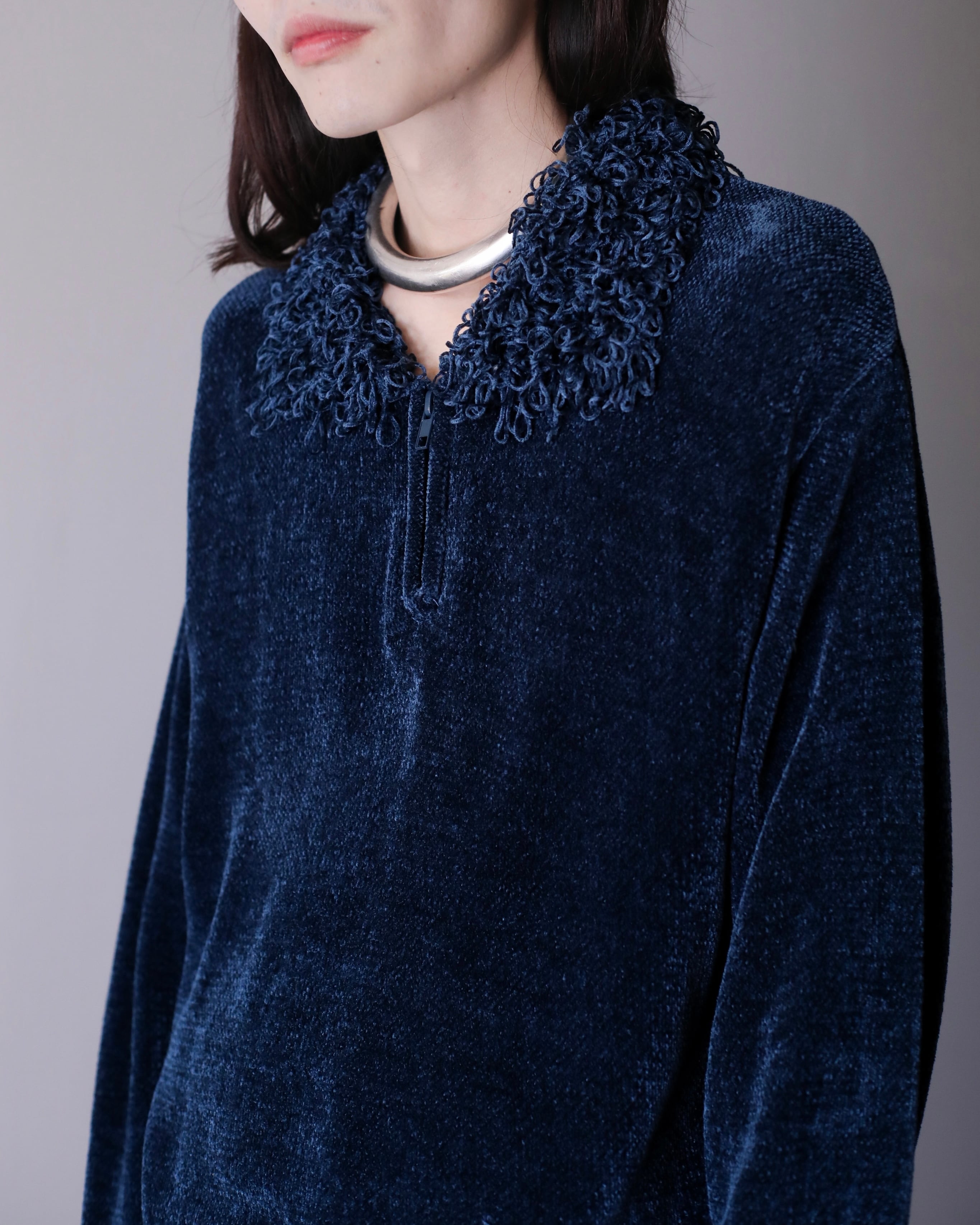 1990s "mojyamojya" eri design velours fabric half zip knit sweater