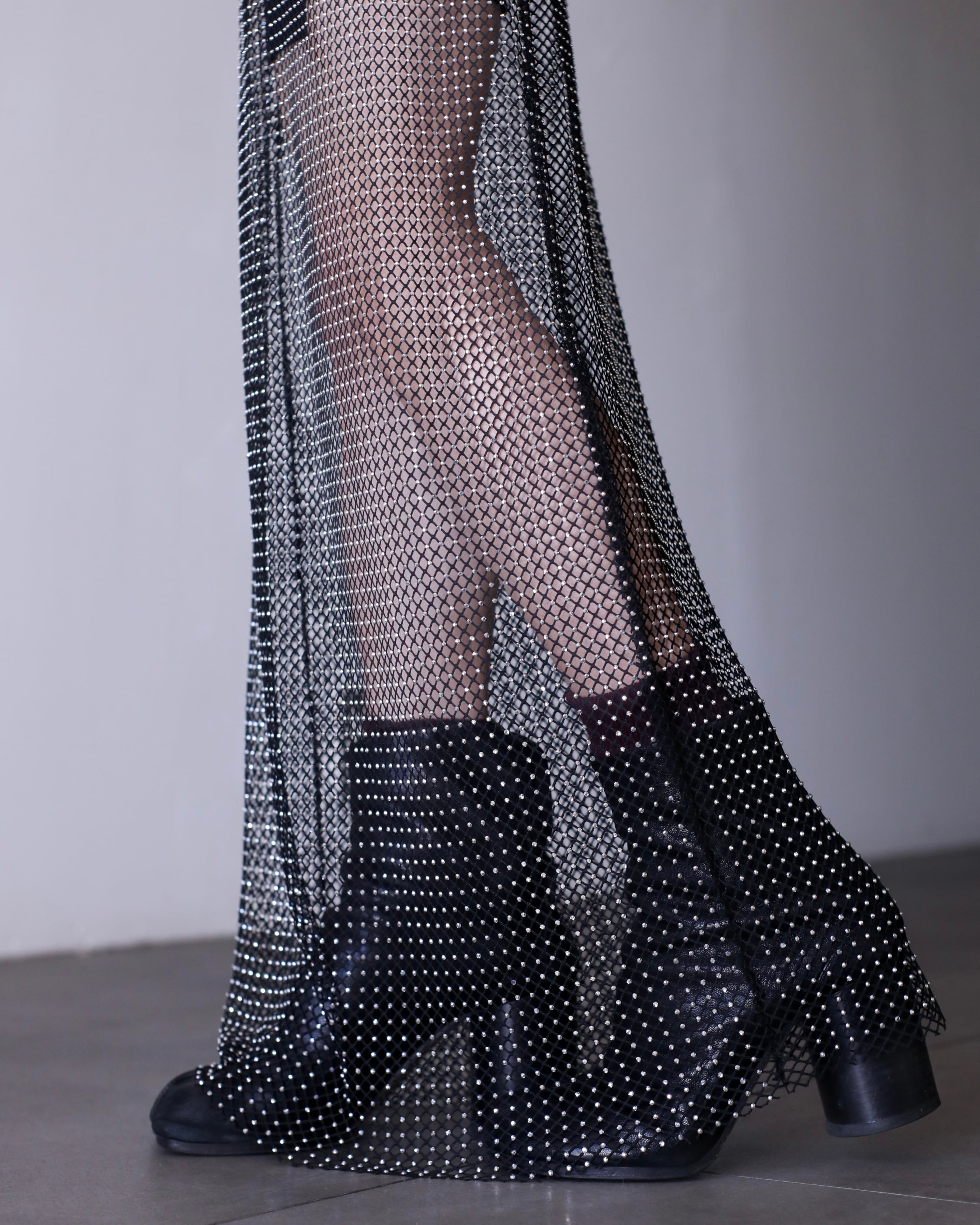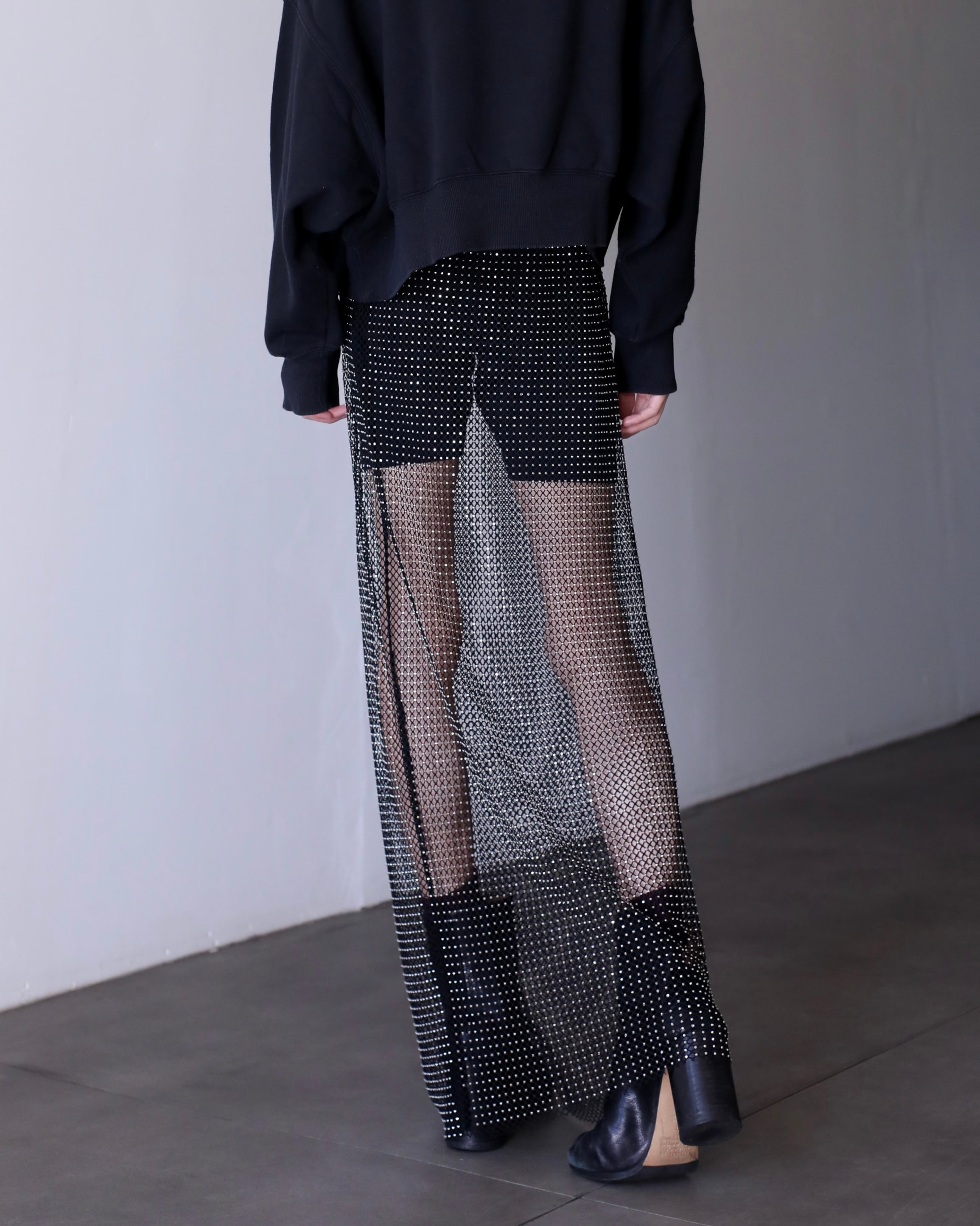 "suke suke kira kira" rhinestone design sheer maxi length skirt