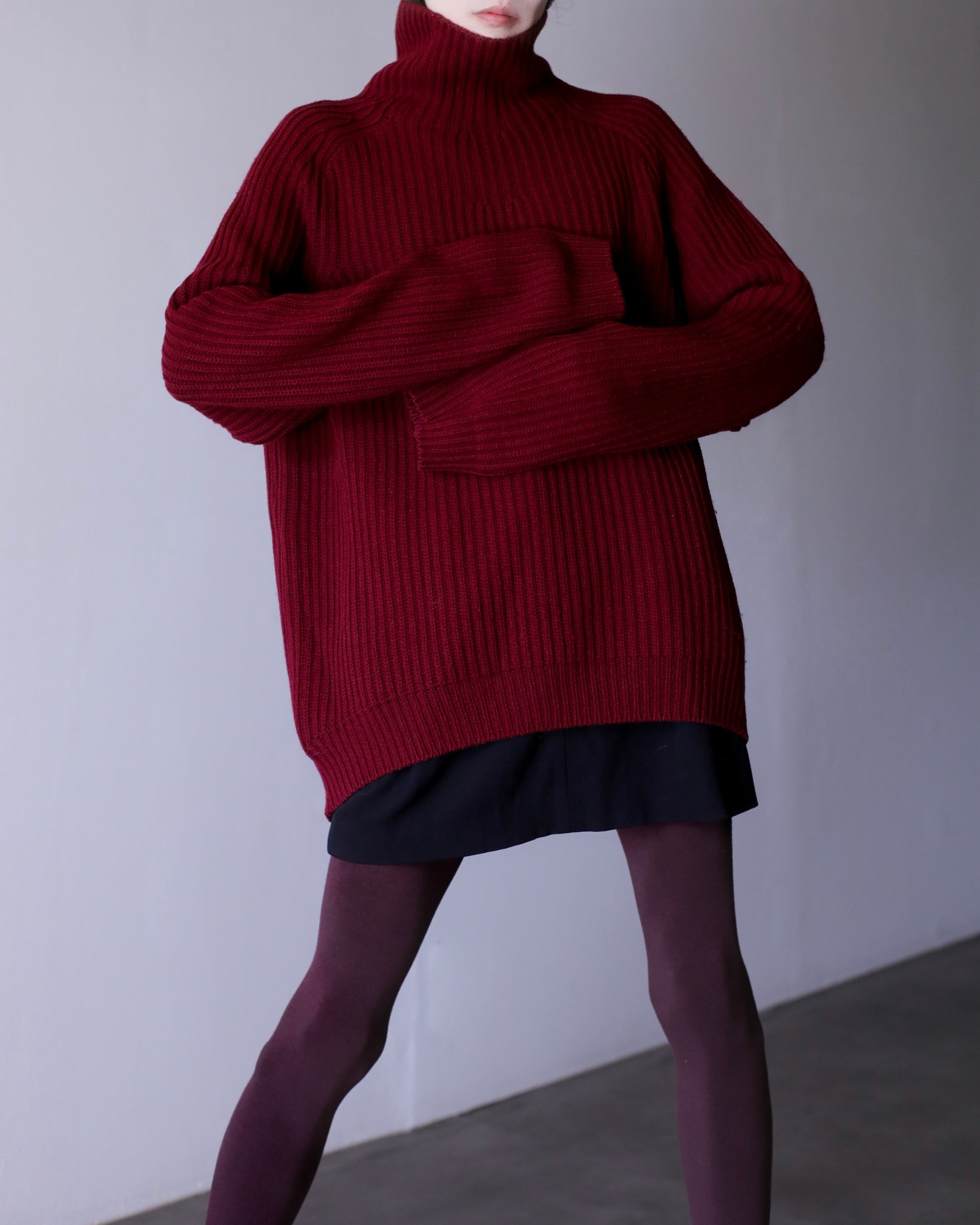 Acne chunky heavy wool fabric hi-neck knit ovdrsized