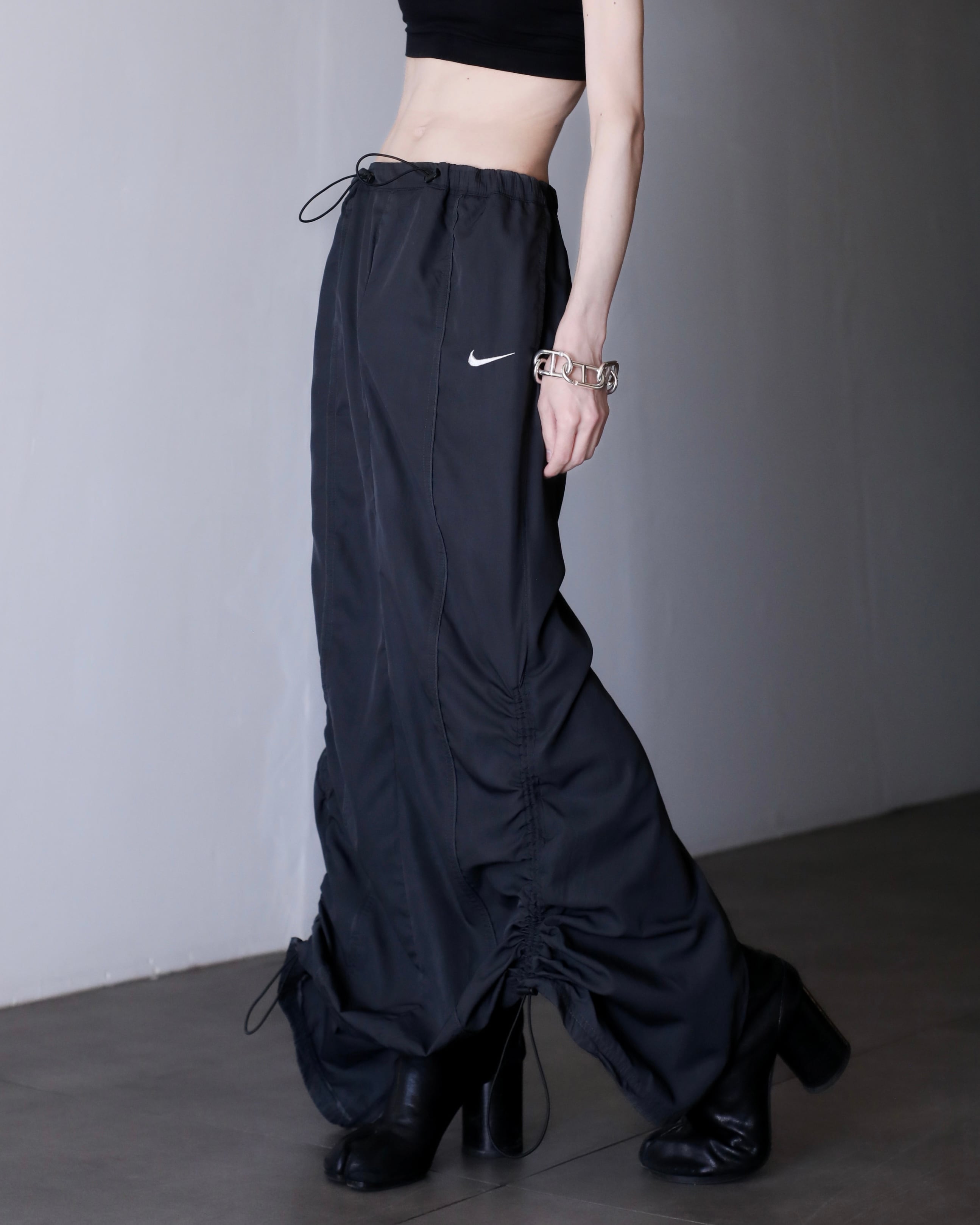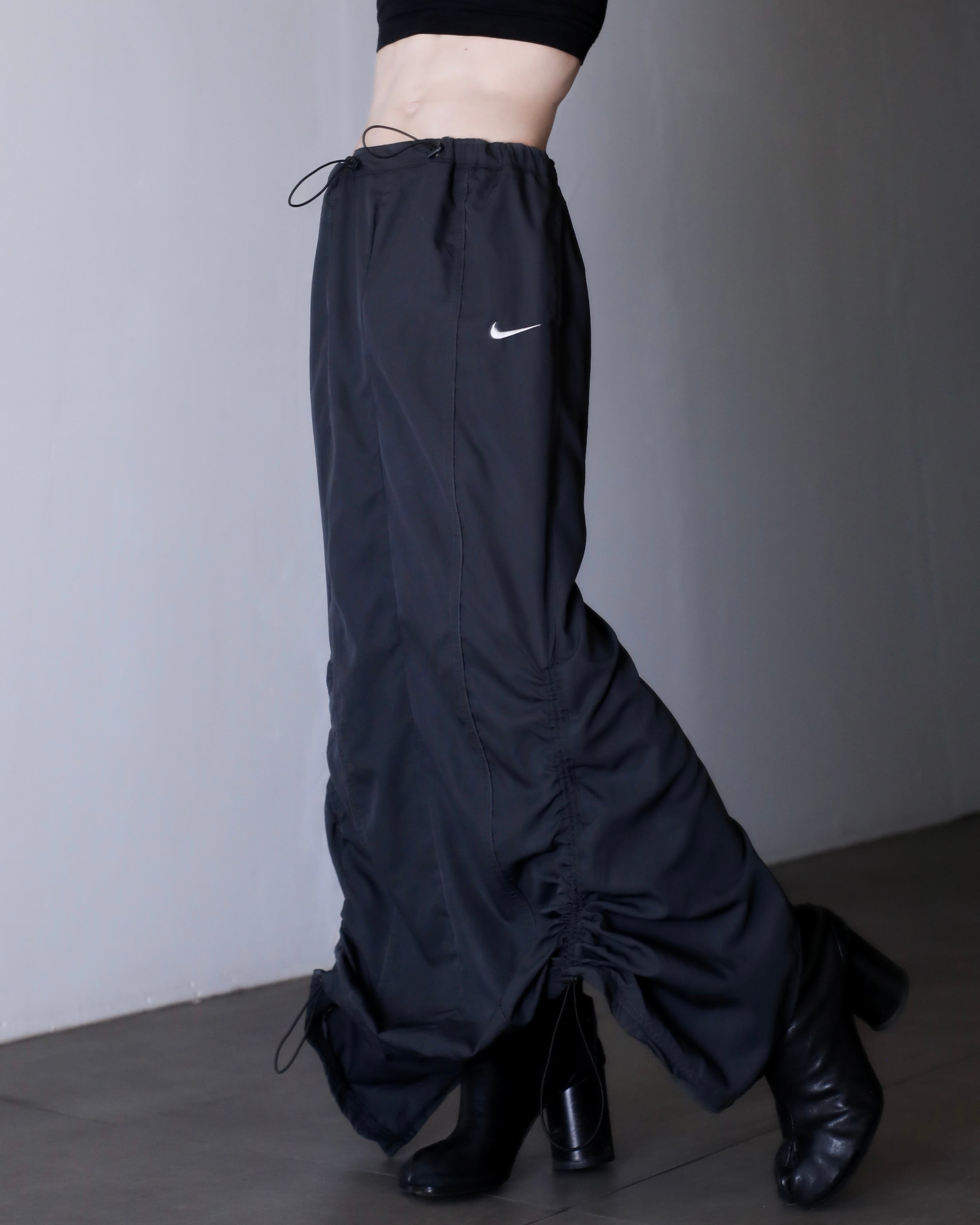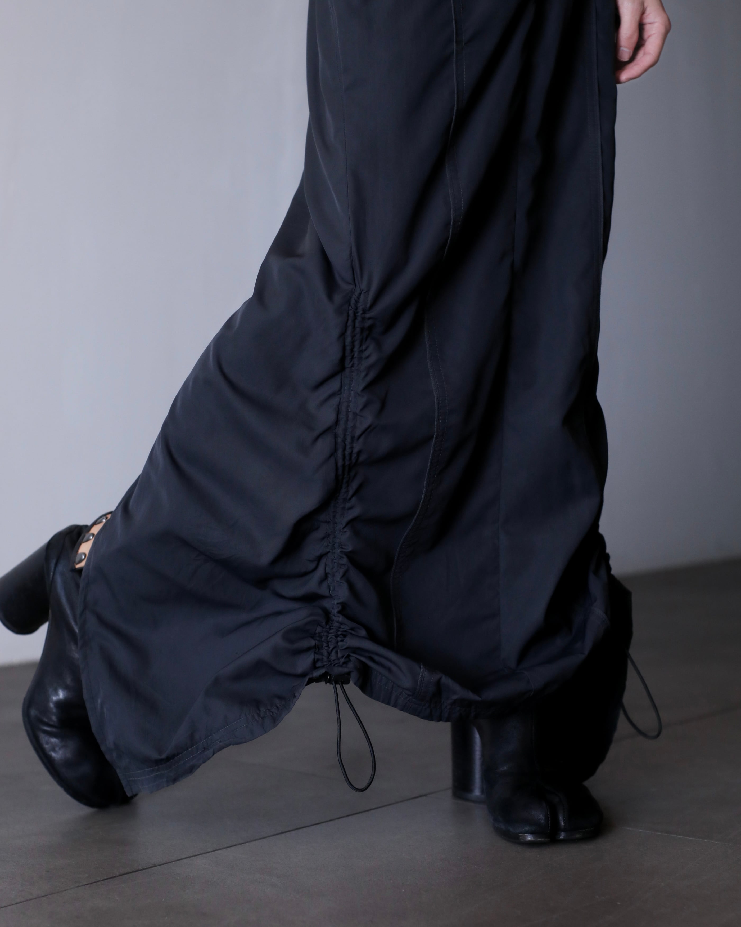ウエストと両サイド裾にドローコードが仕込まれているディテールで裾のドローはしぼると縦にクシュクシュとしてくれてデザイン性もバッチリです。
