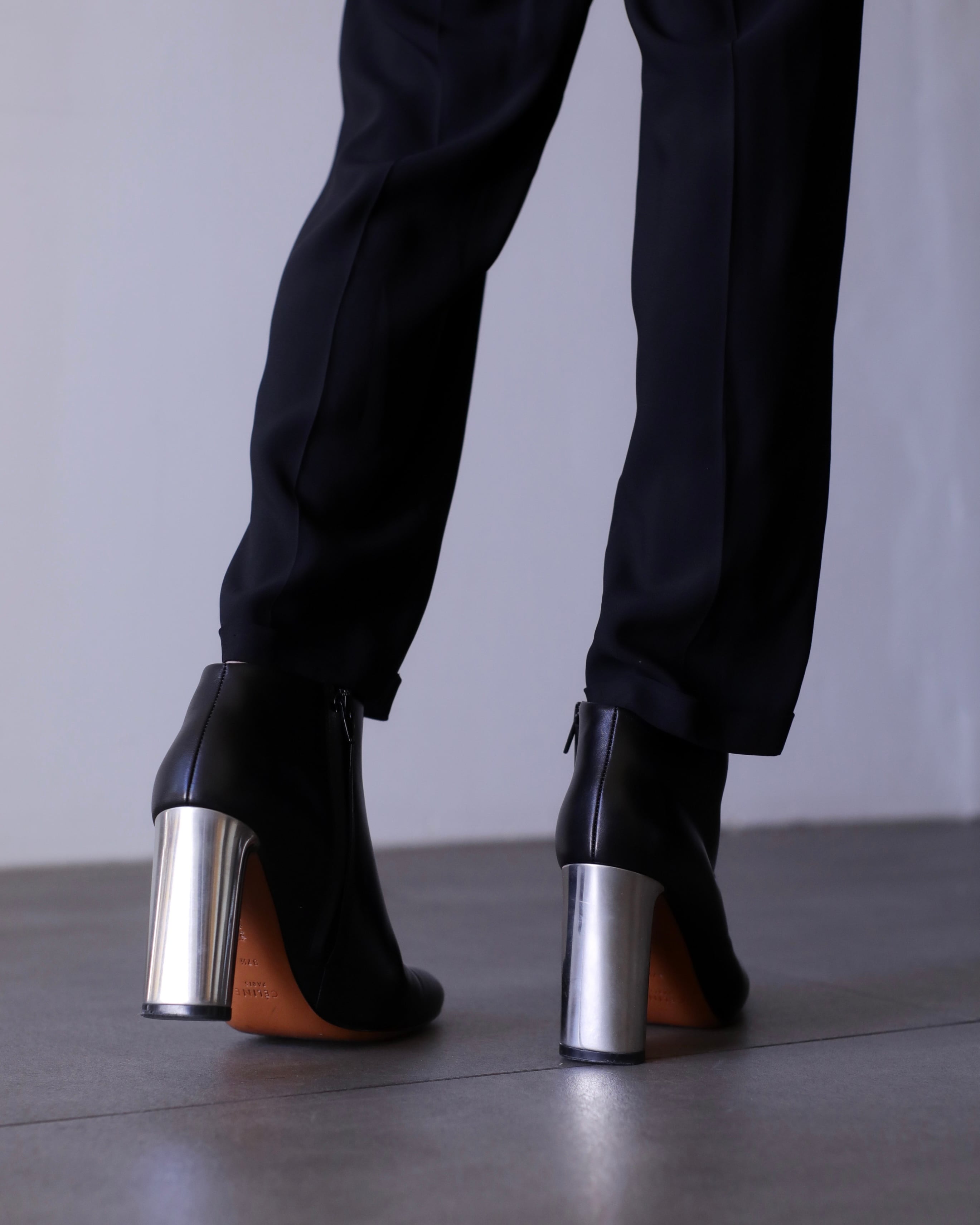 CÉLINE by Phoebe Philo "bambam" metal chunky heel design calf leather boots
