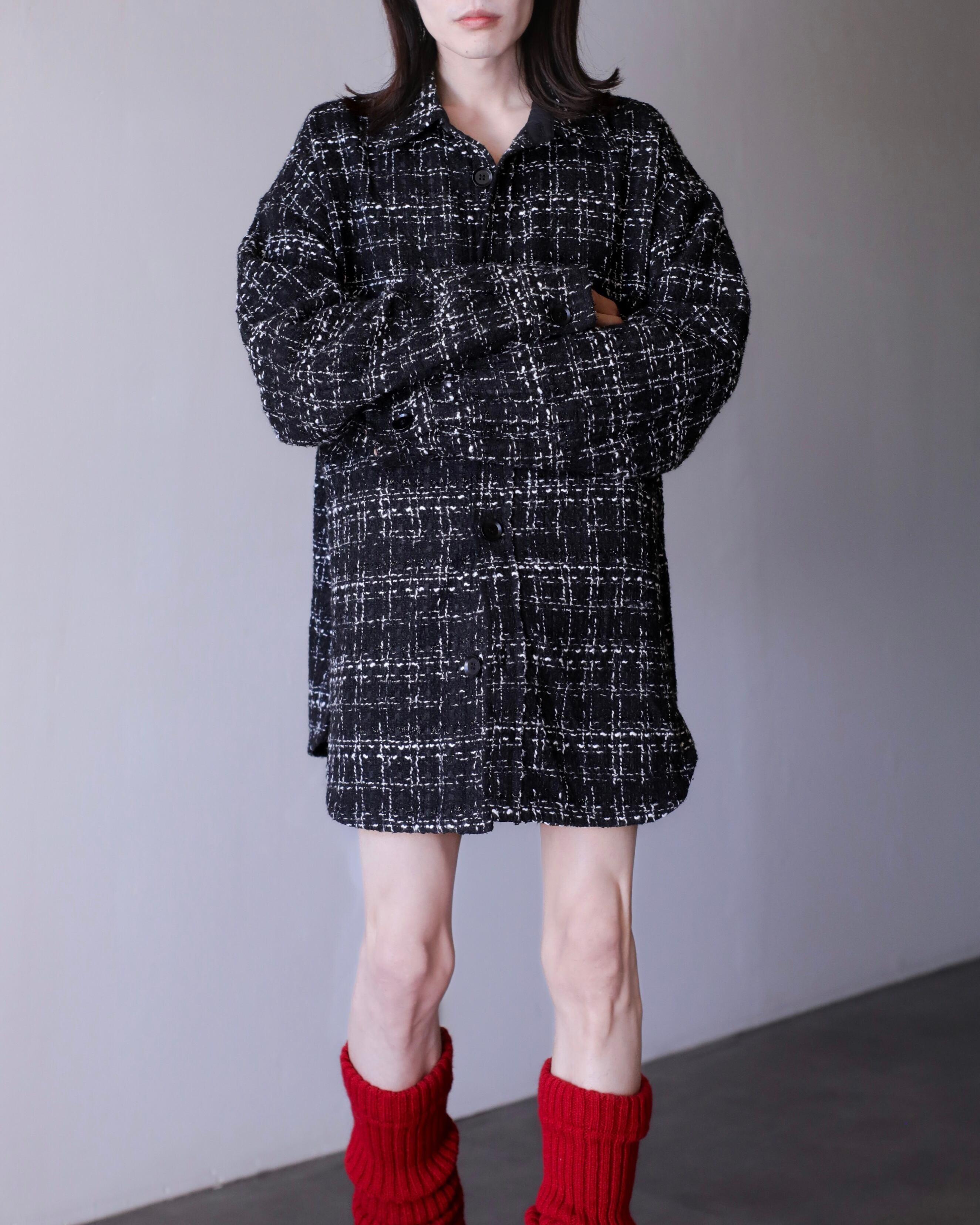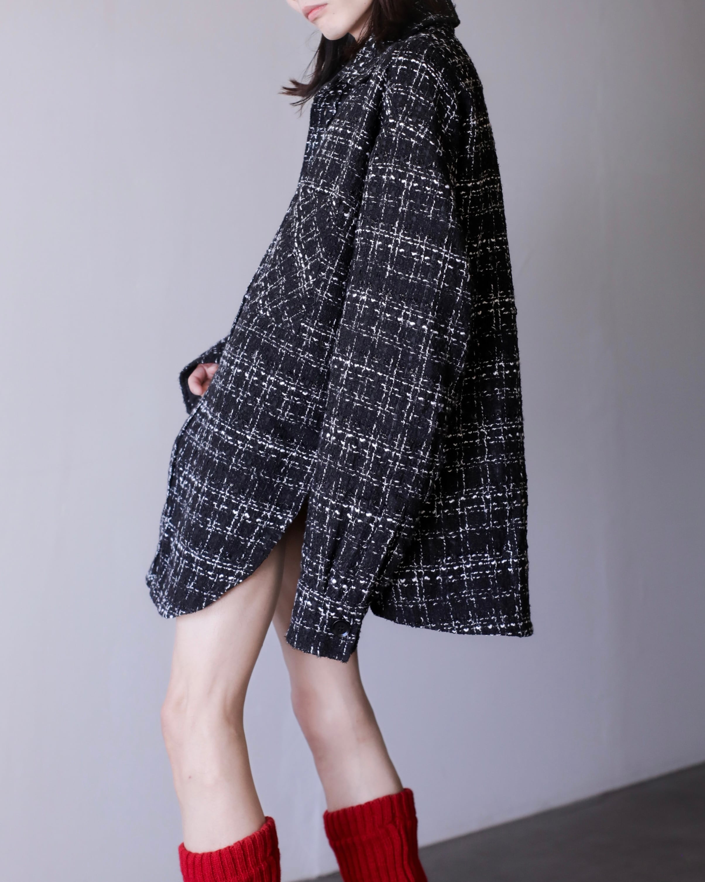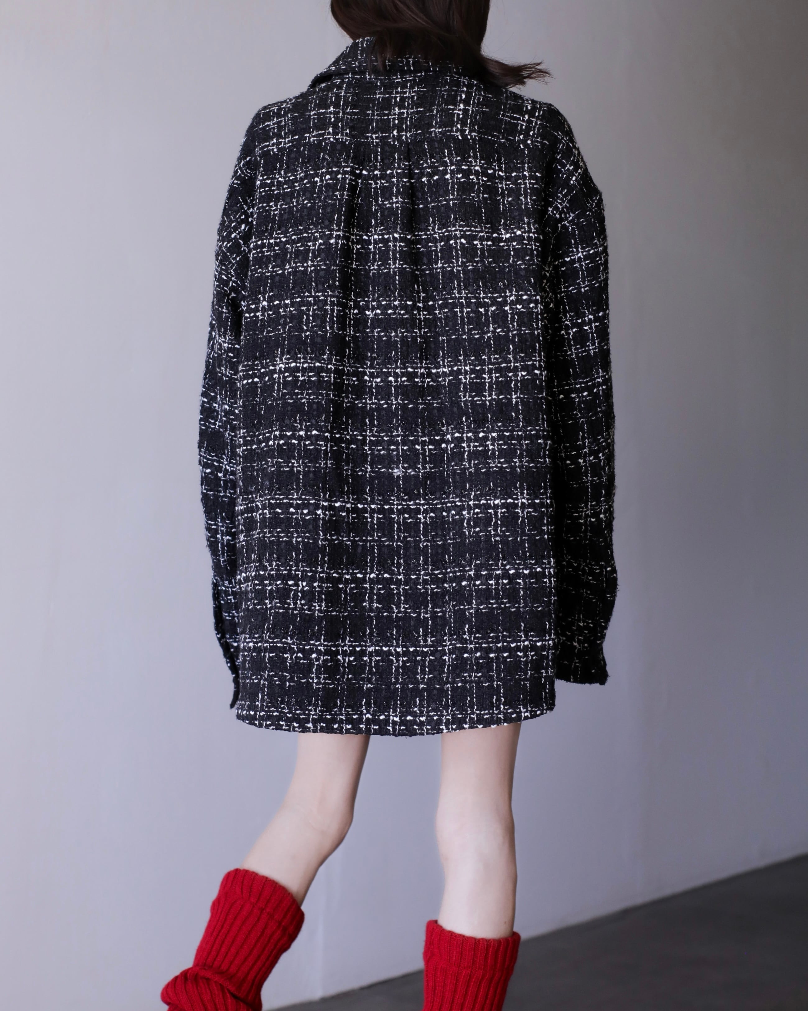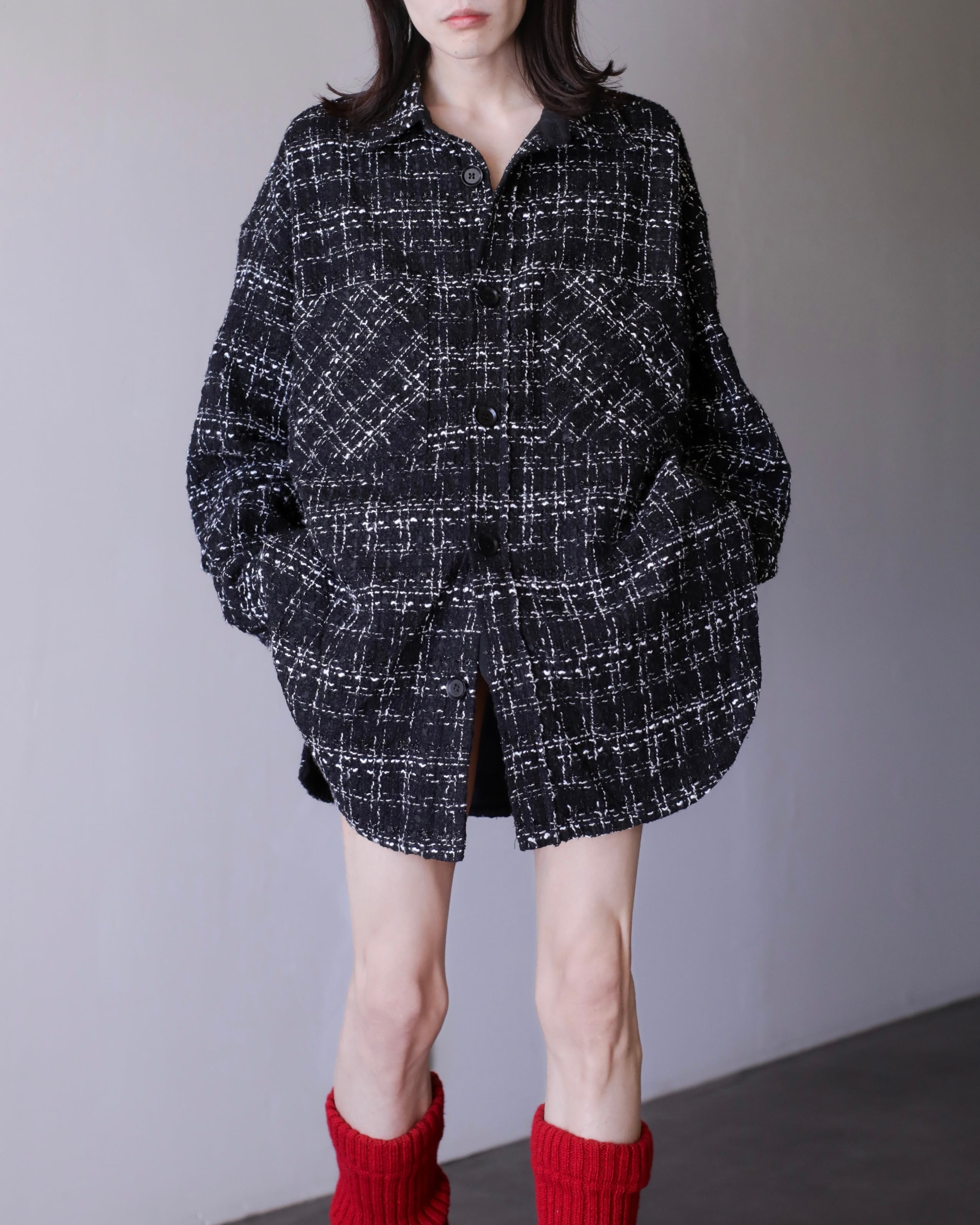 lamé tweed fabric drop shoulder design shirt jacket oversized