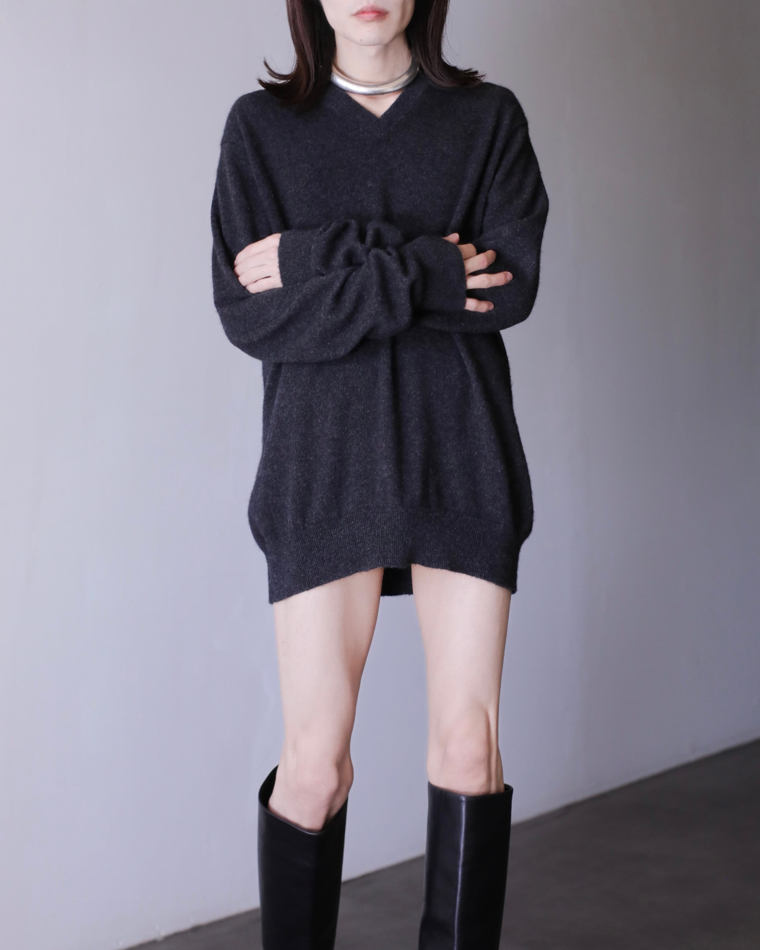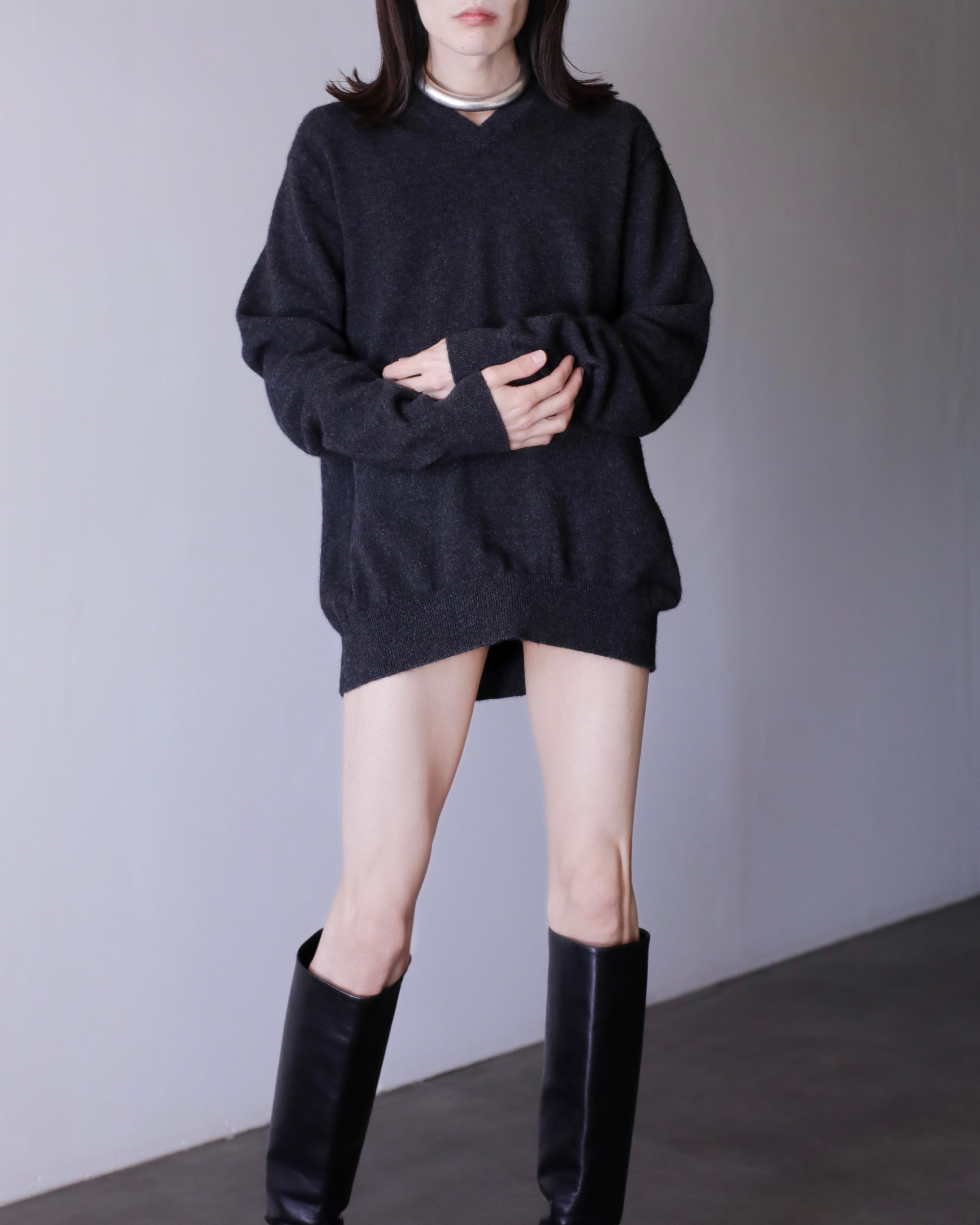 2000s cashmere 100% relax silhouette V-neck knit sweater