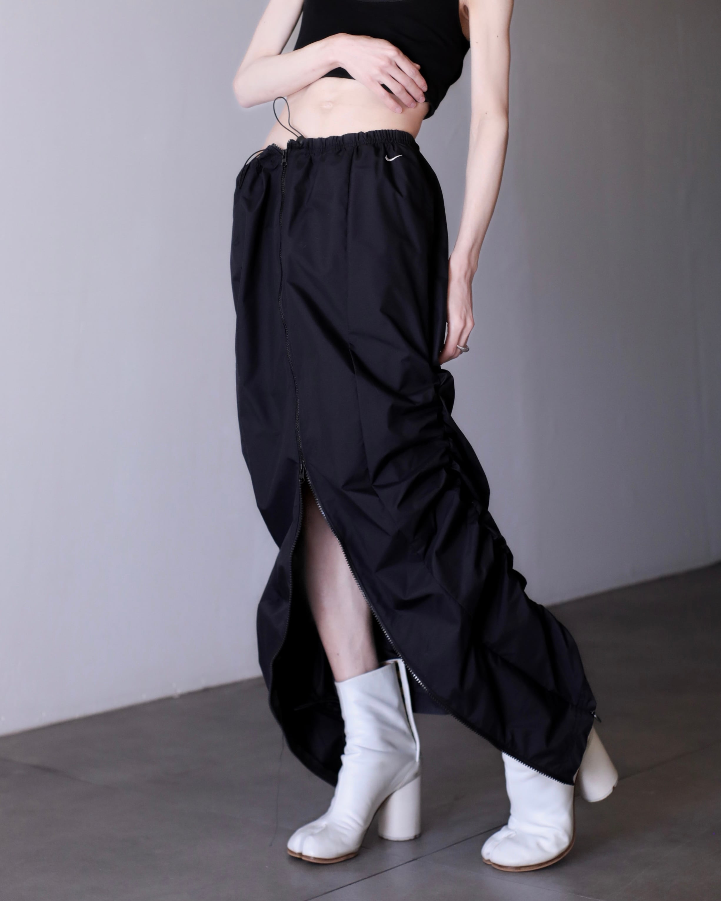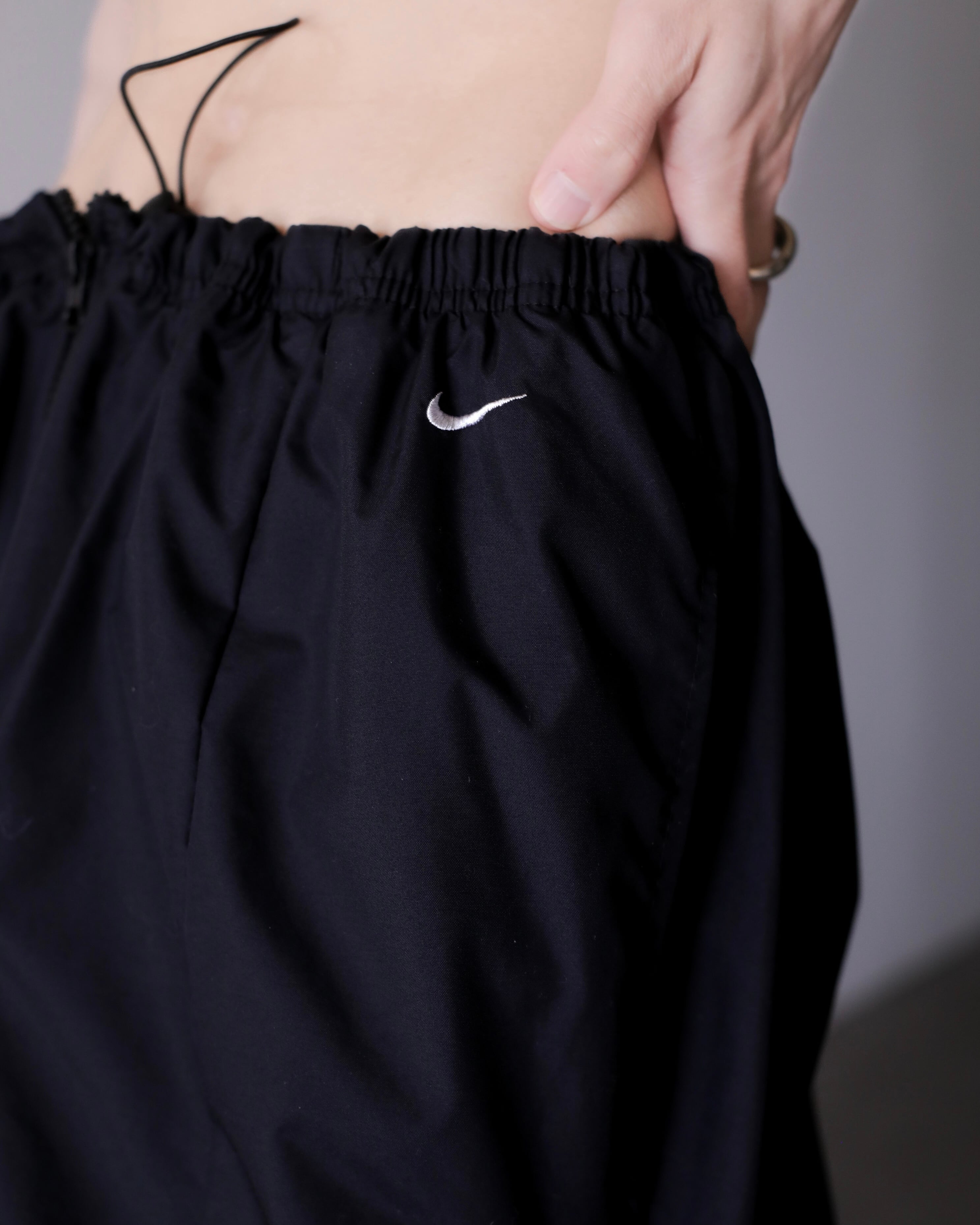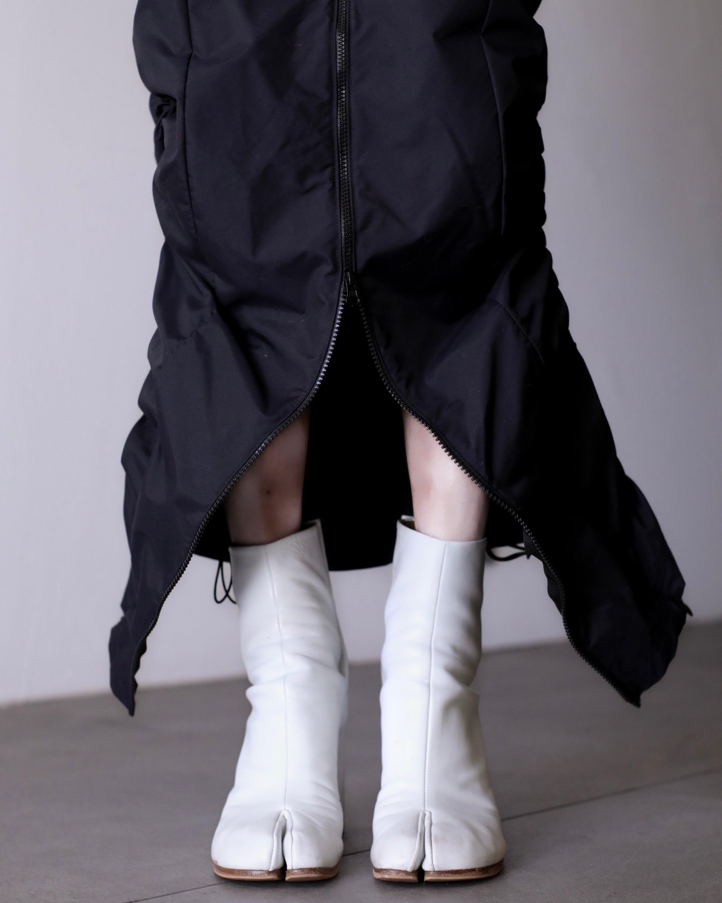 両サイドにフルでドローコードが仕込まれているディテールでしぼると縦にクシュクシュとしてくれてデザイン性も高く