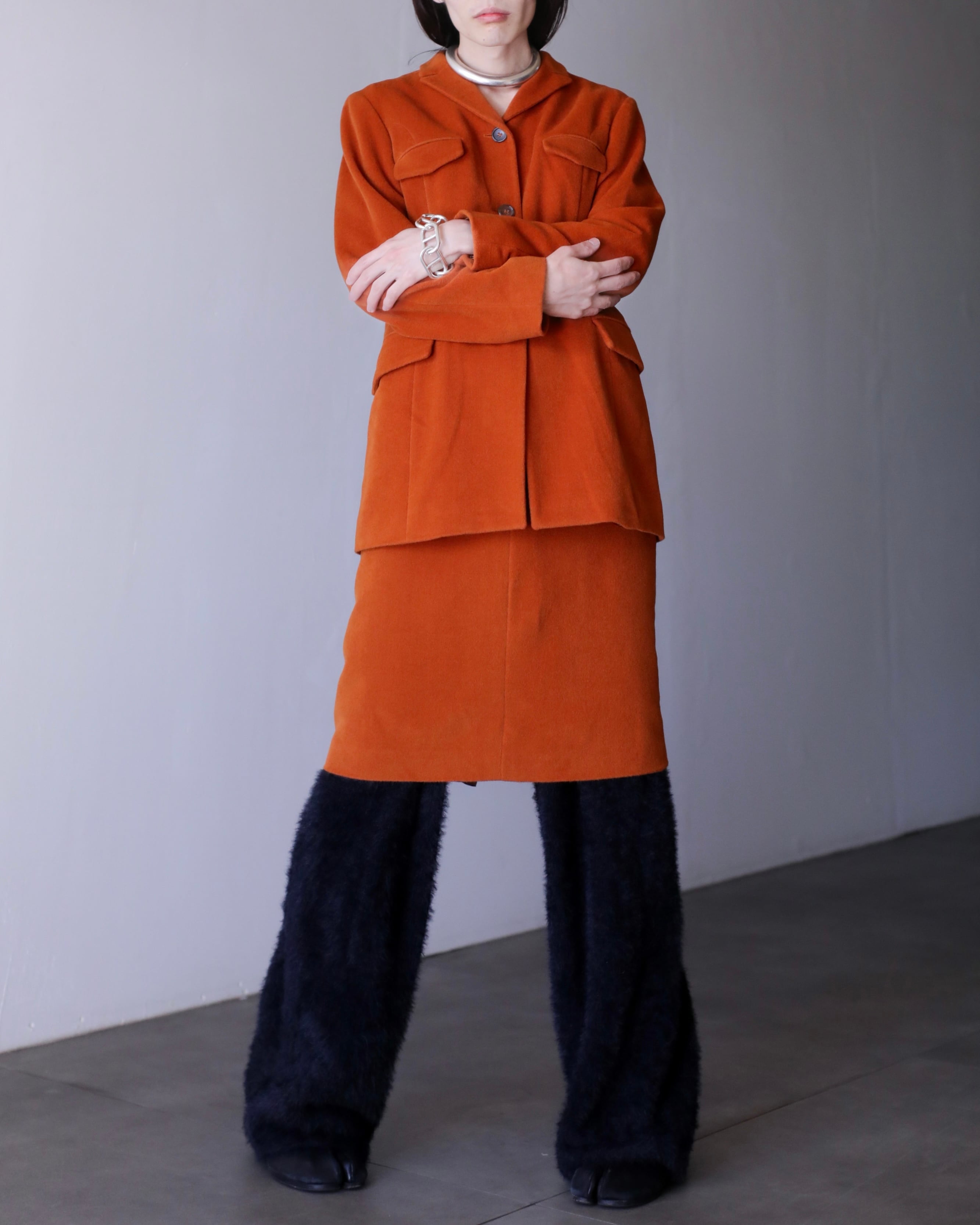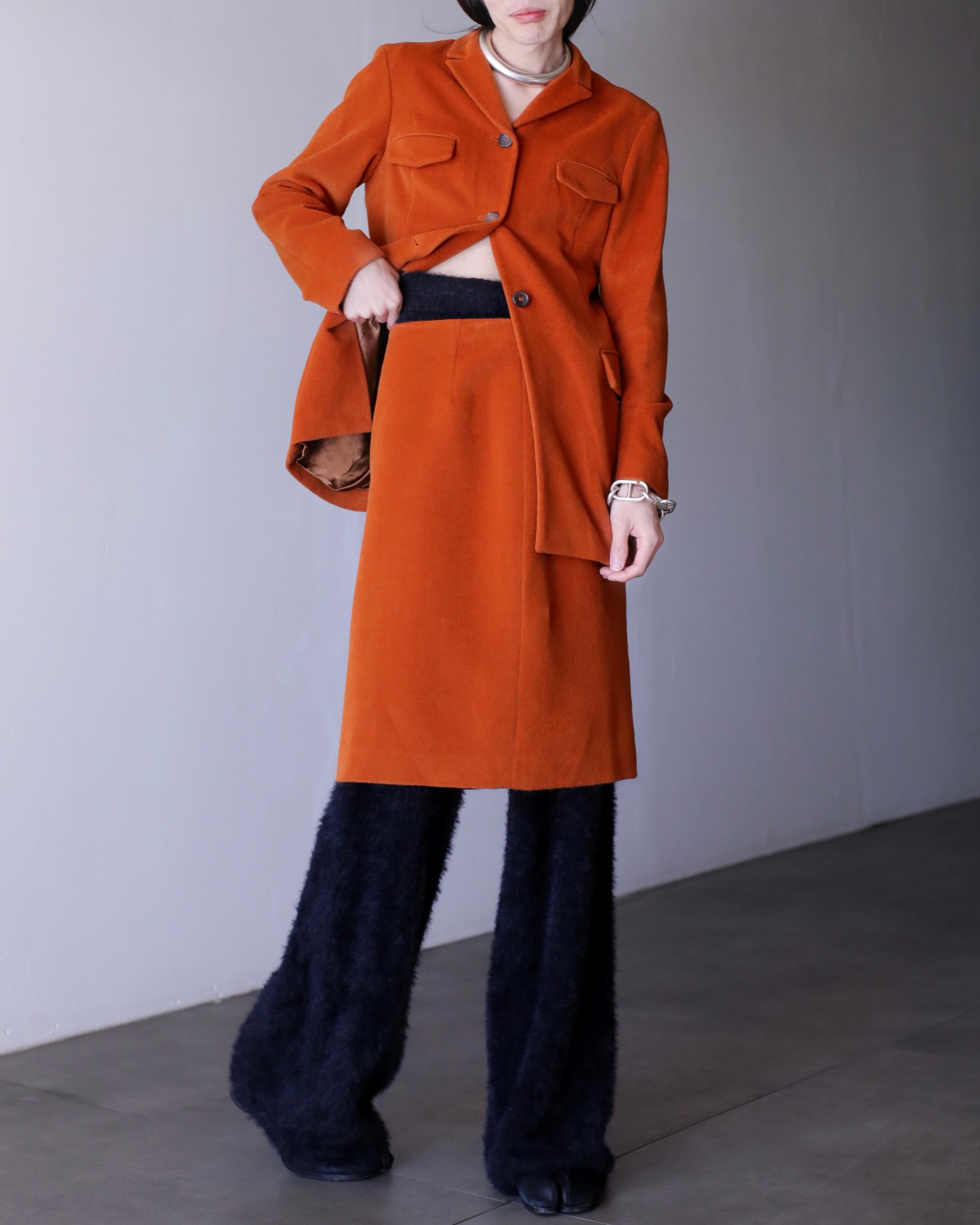1990s JIL SANDER set up "nikuatsu" angora mix fabric jacket & skirt Made In Germany