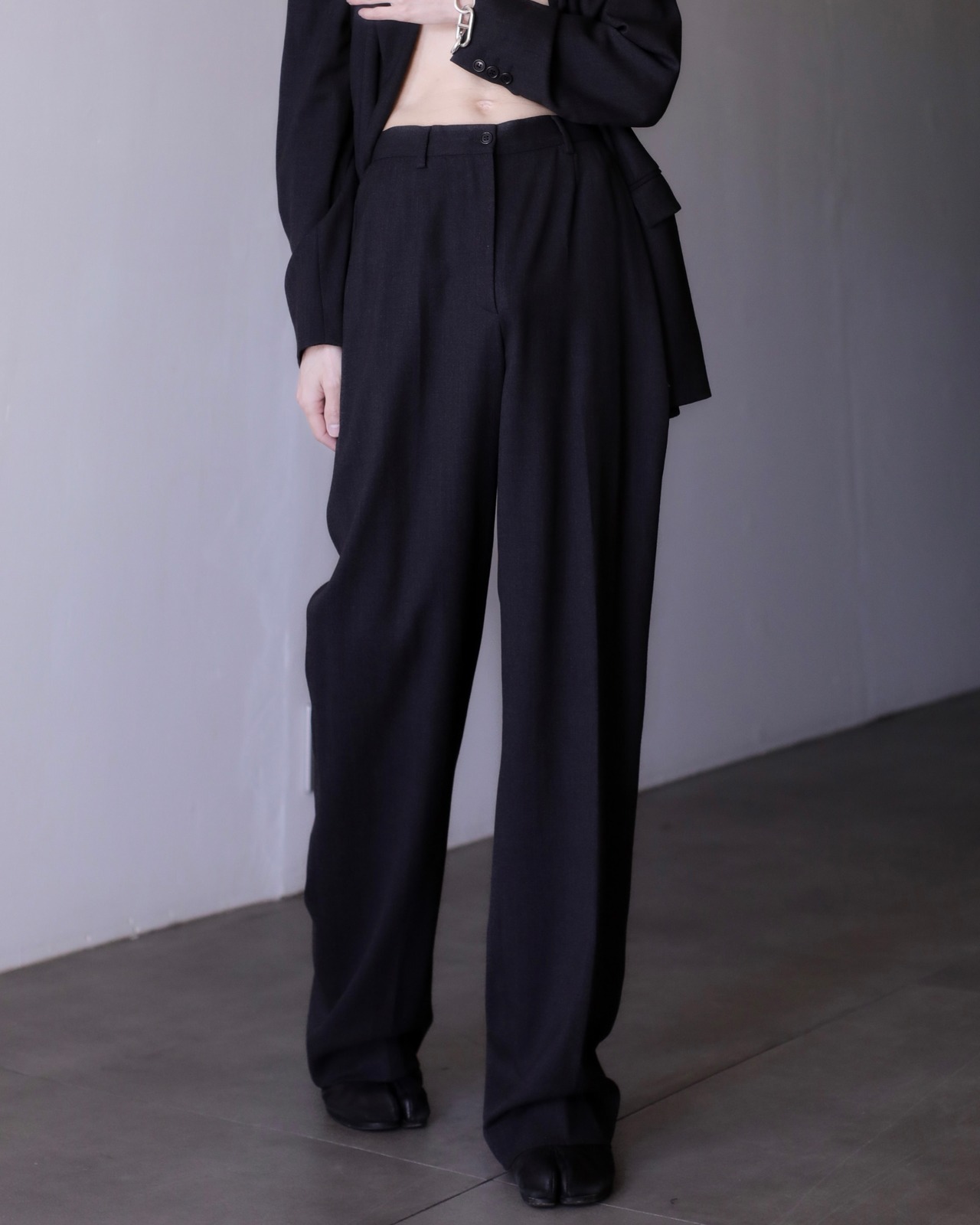 裾幅26cmのちゃんとボリュームのあるワイドストレートシルエットでジャケットともバランスが完璧なんです。