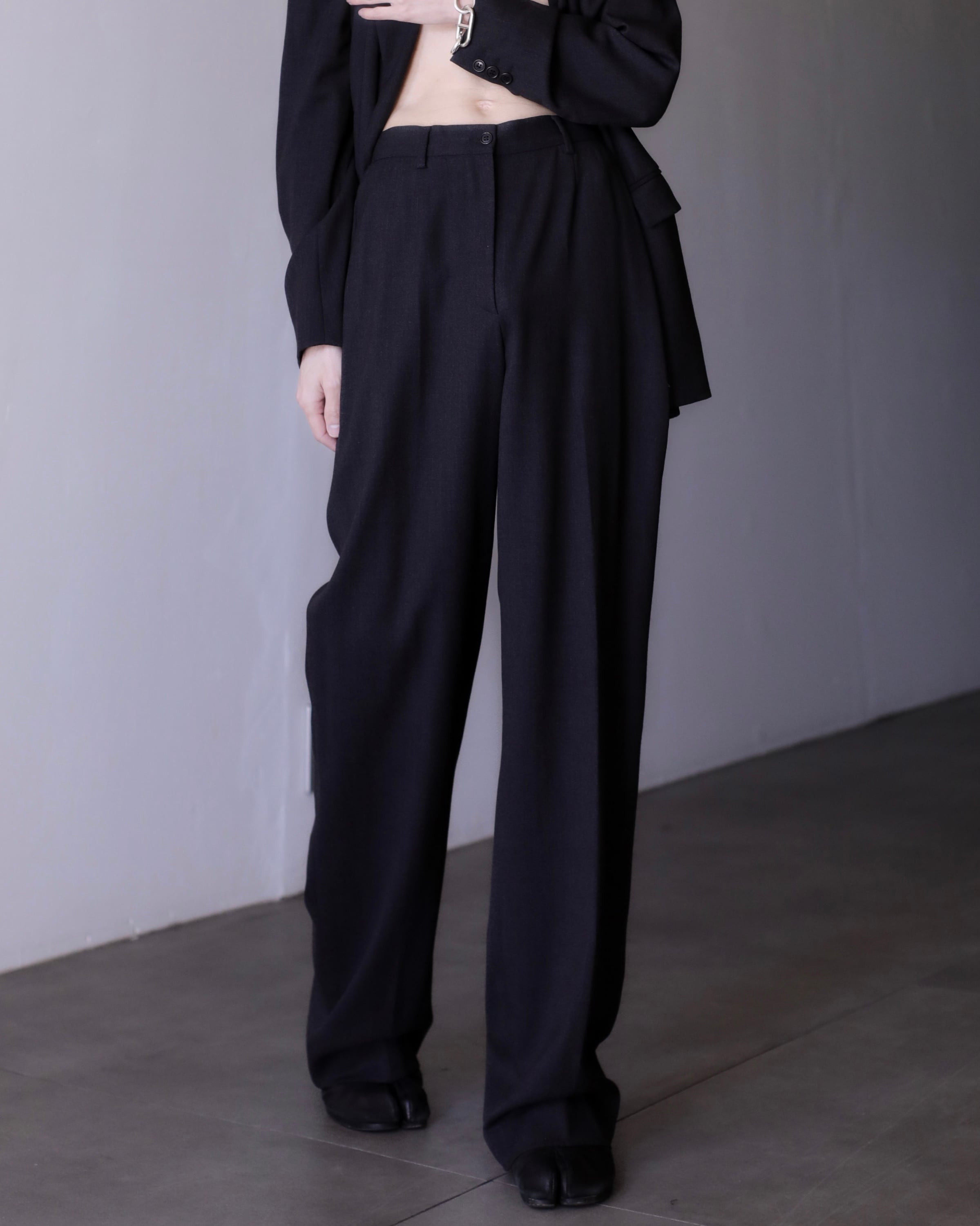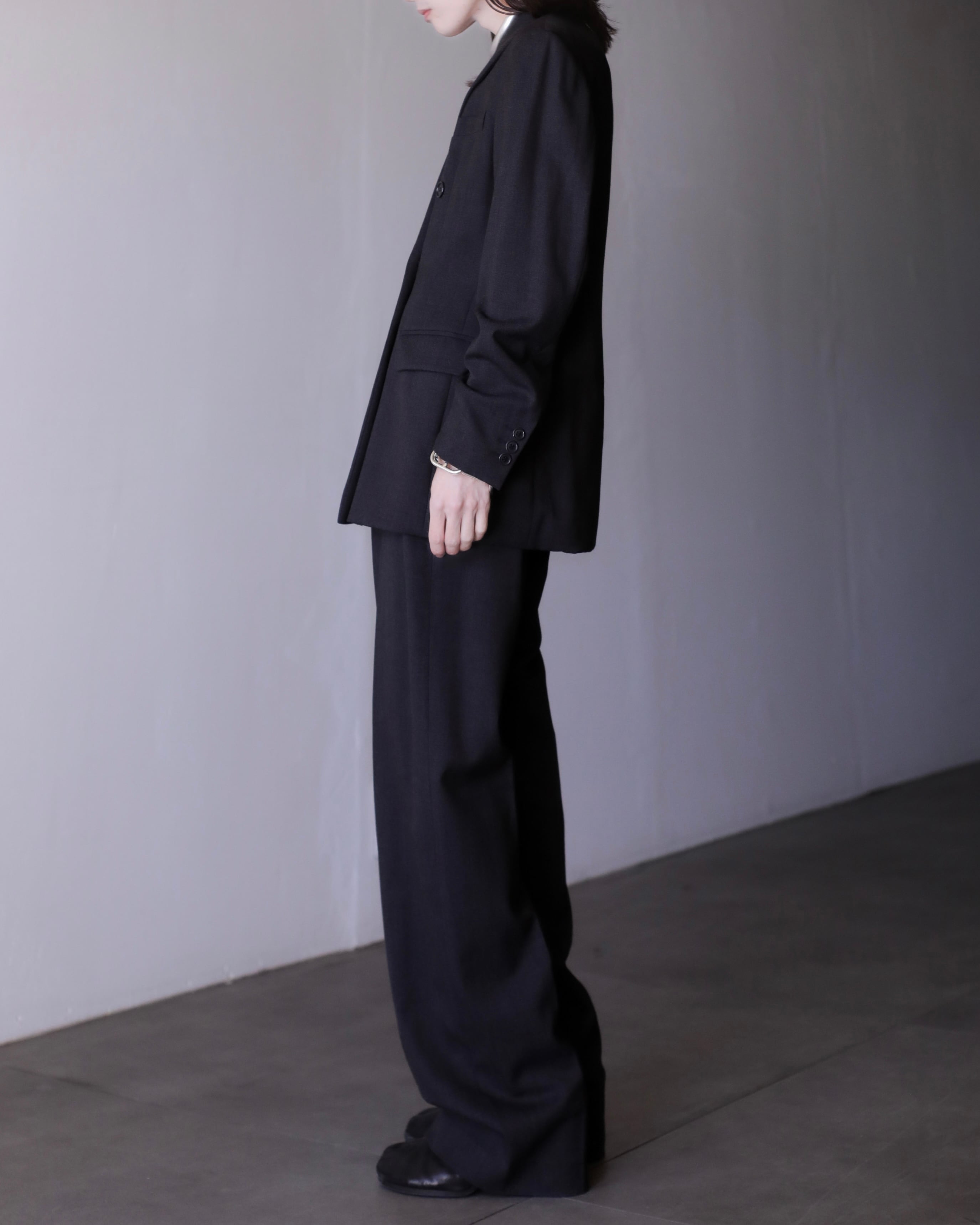 1990s Max Mara "shirotag" set up double breasted tailored jacket & wide straight slacks virgin wool fabric Made In Italy