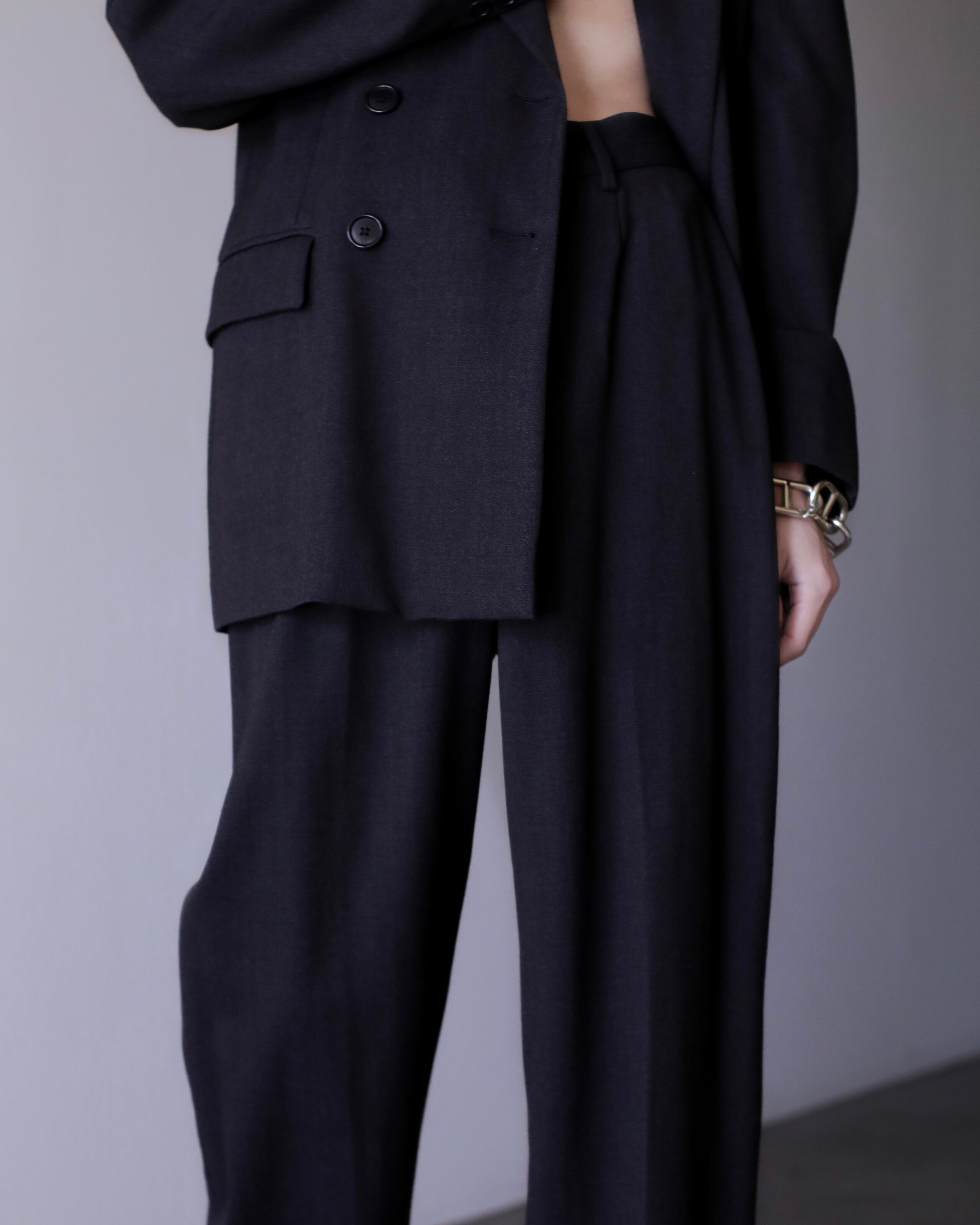 ジャケットはレディーステーラードには珍しいダブルブレスト。カラーリングもダークグレーで上品。言うことなしでした。