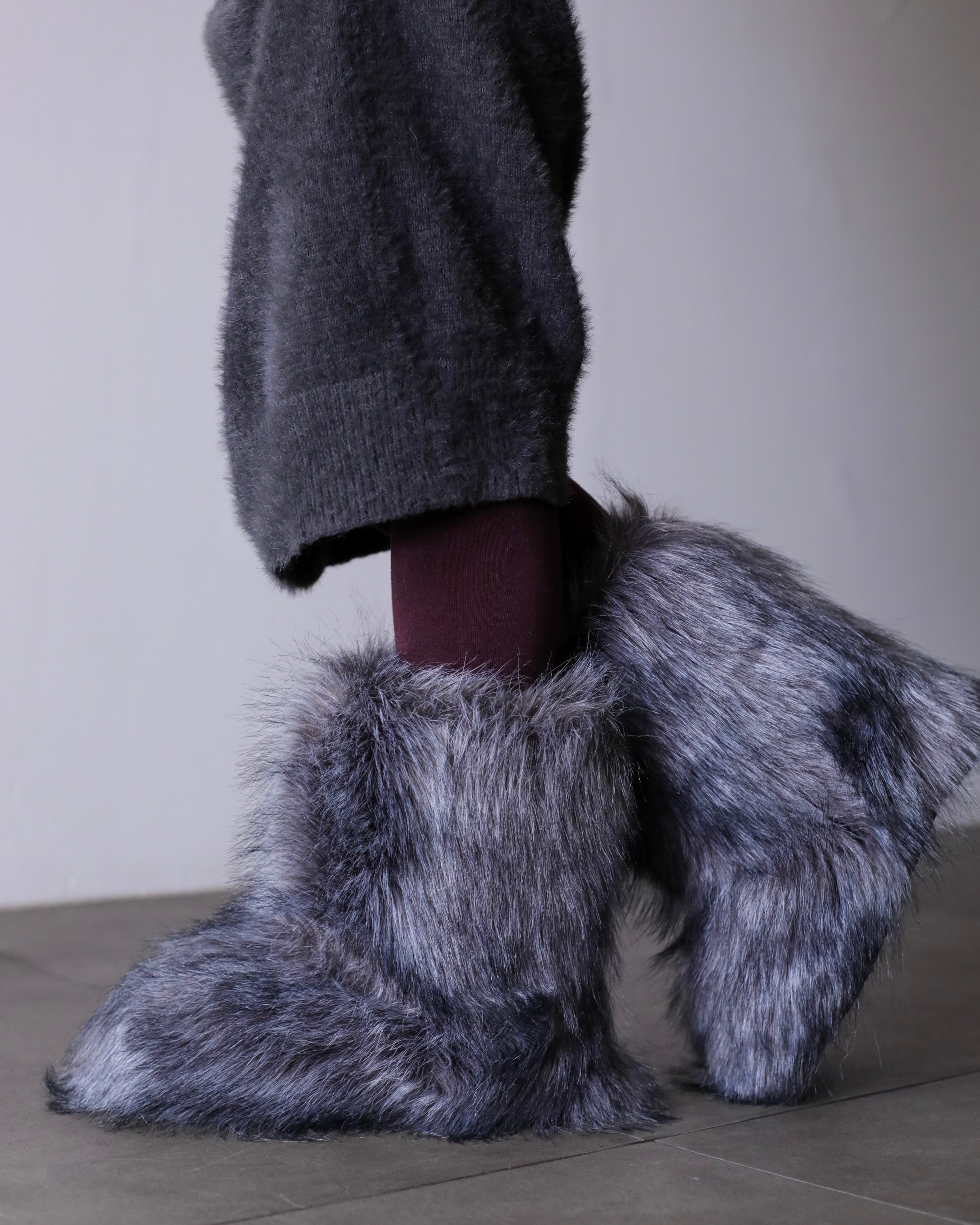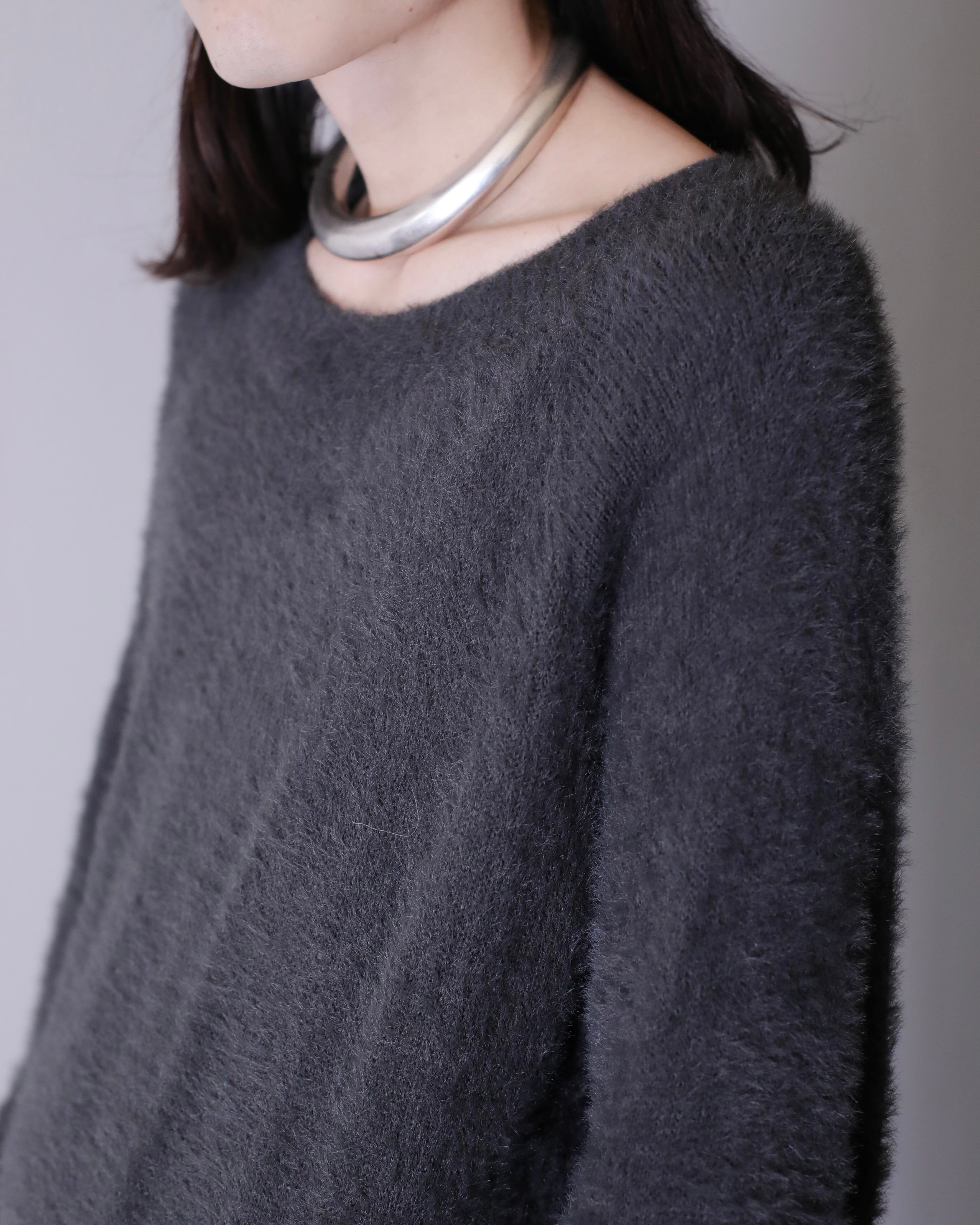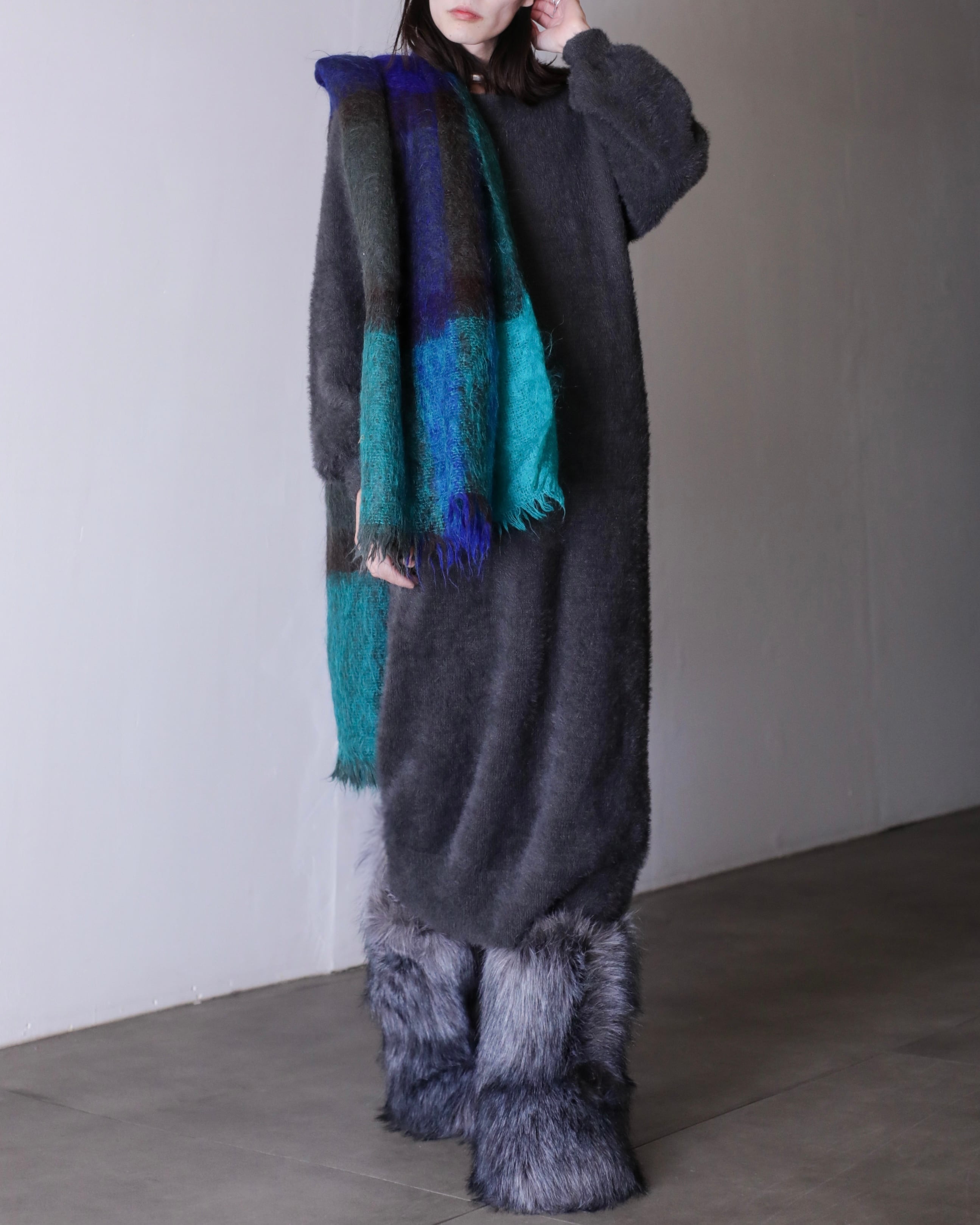 "fuwa fuwa" shaggy knit fabric balloon sleeve long dress one piece