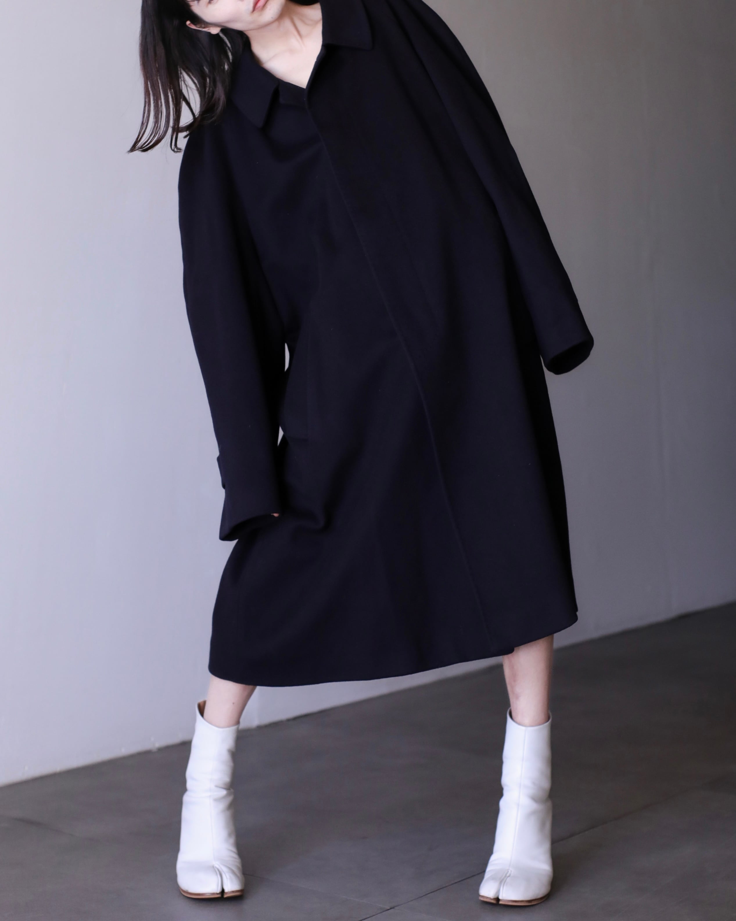 黒よりも優しく、ネイビーよりもモードに見える絶妙な色味で、