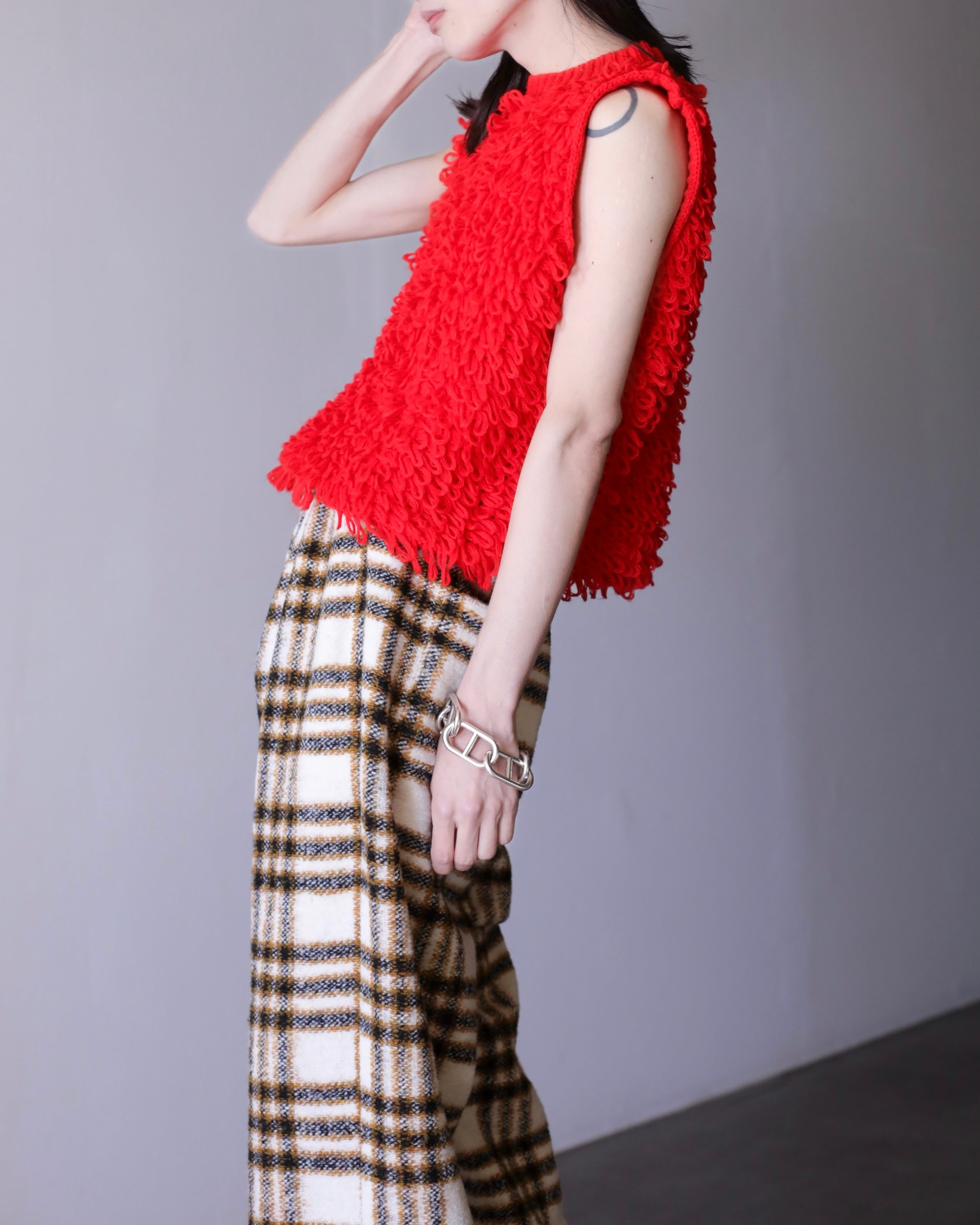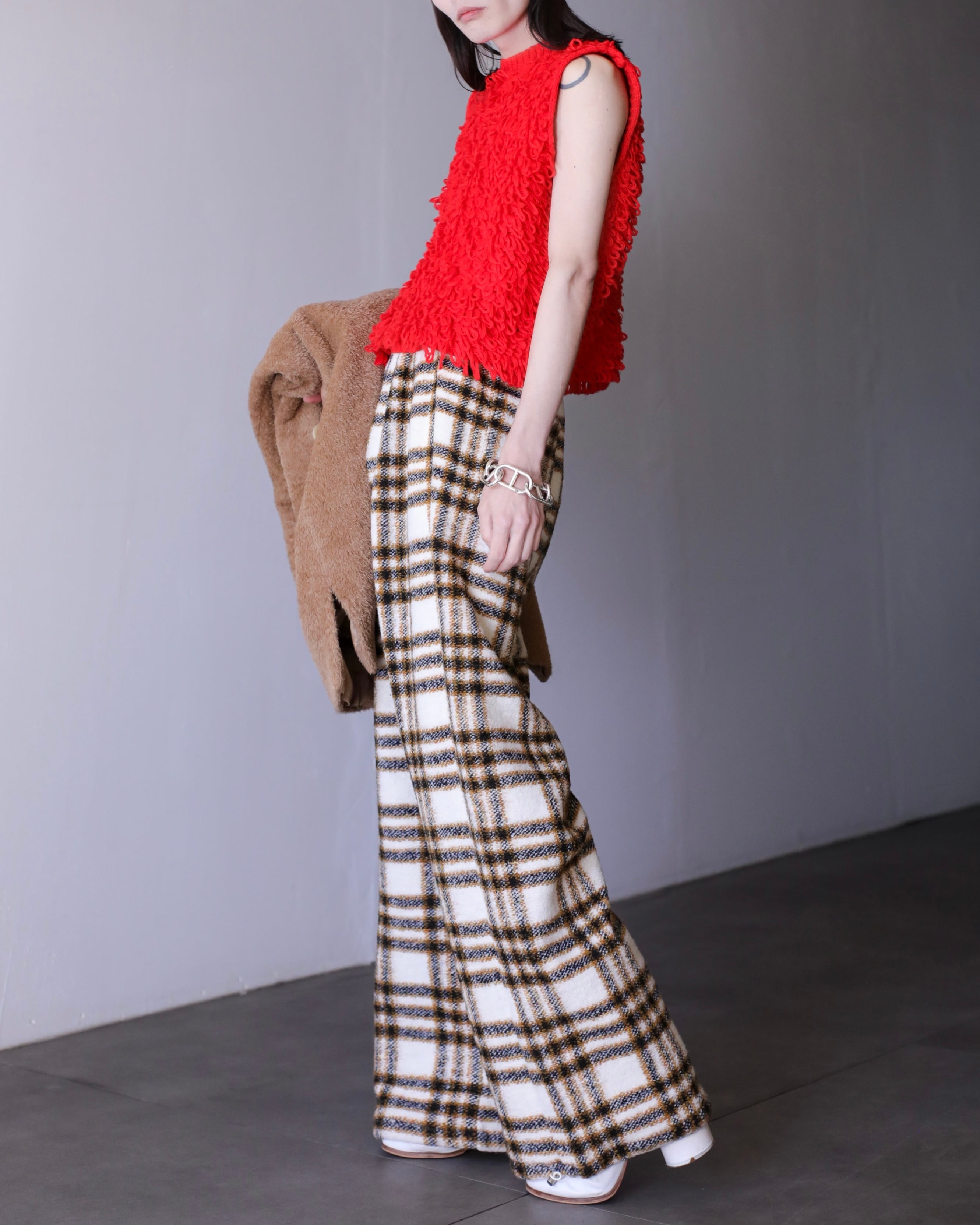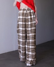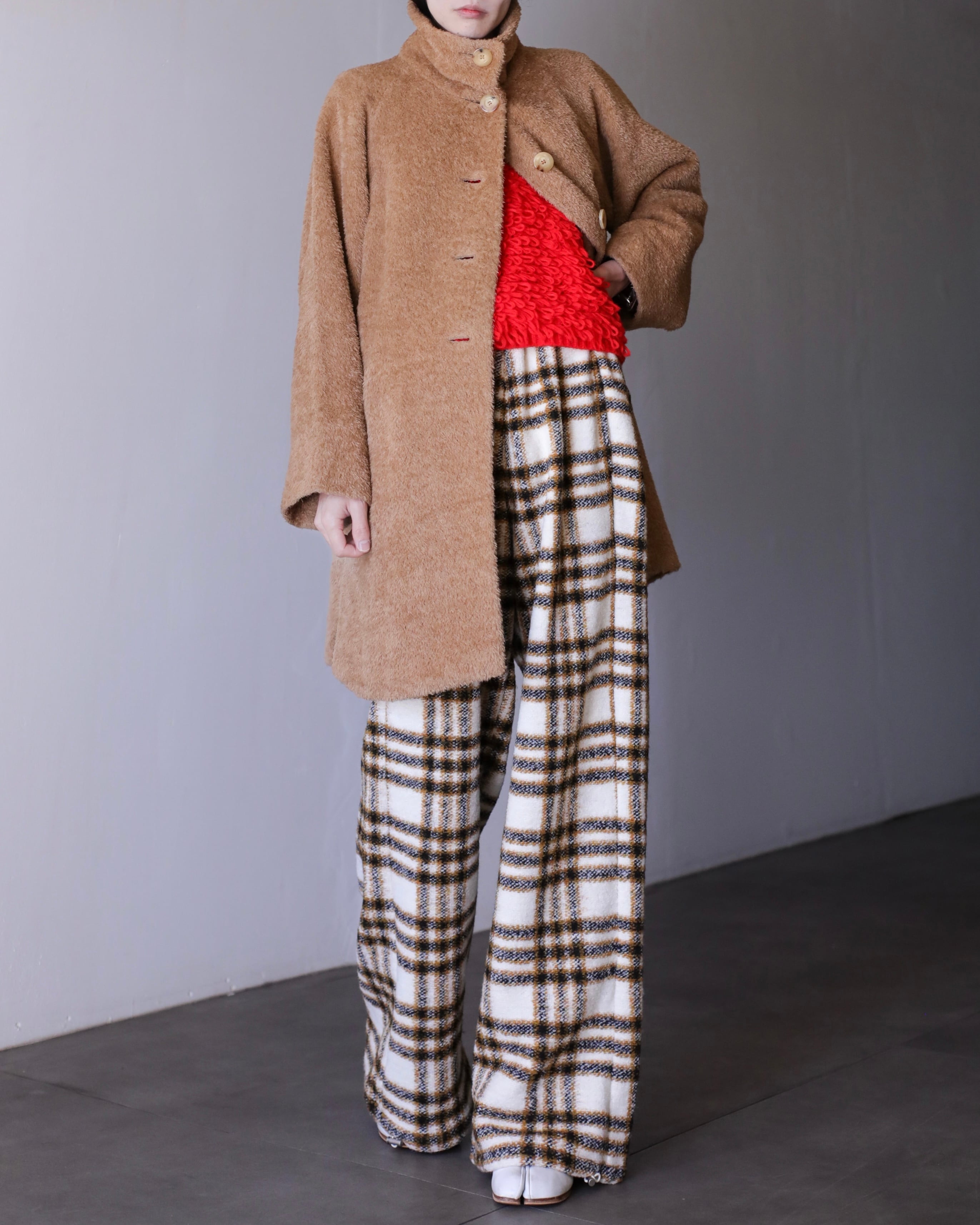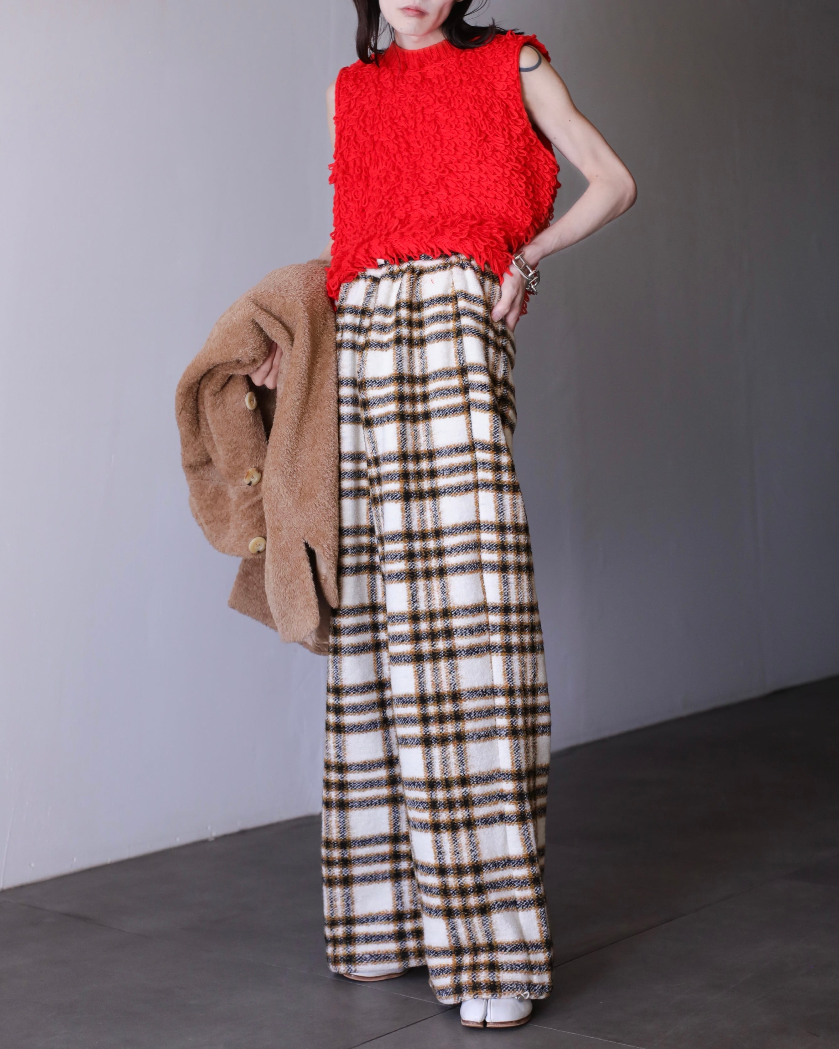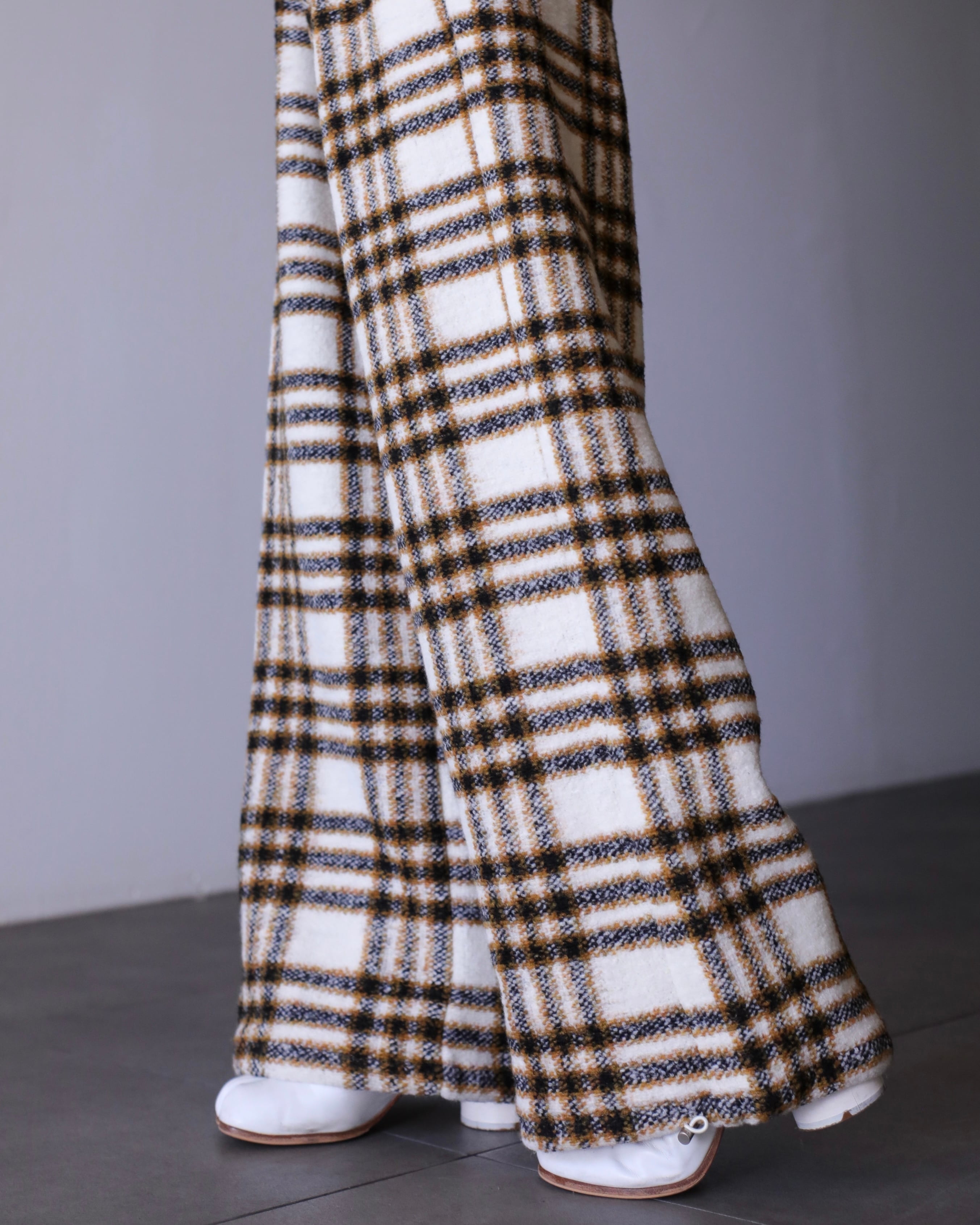 vintage handmade volume wide straight check pattern drawstrings design wool pants