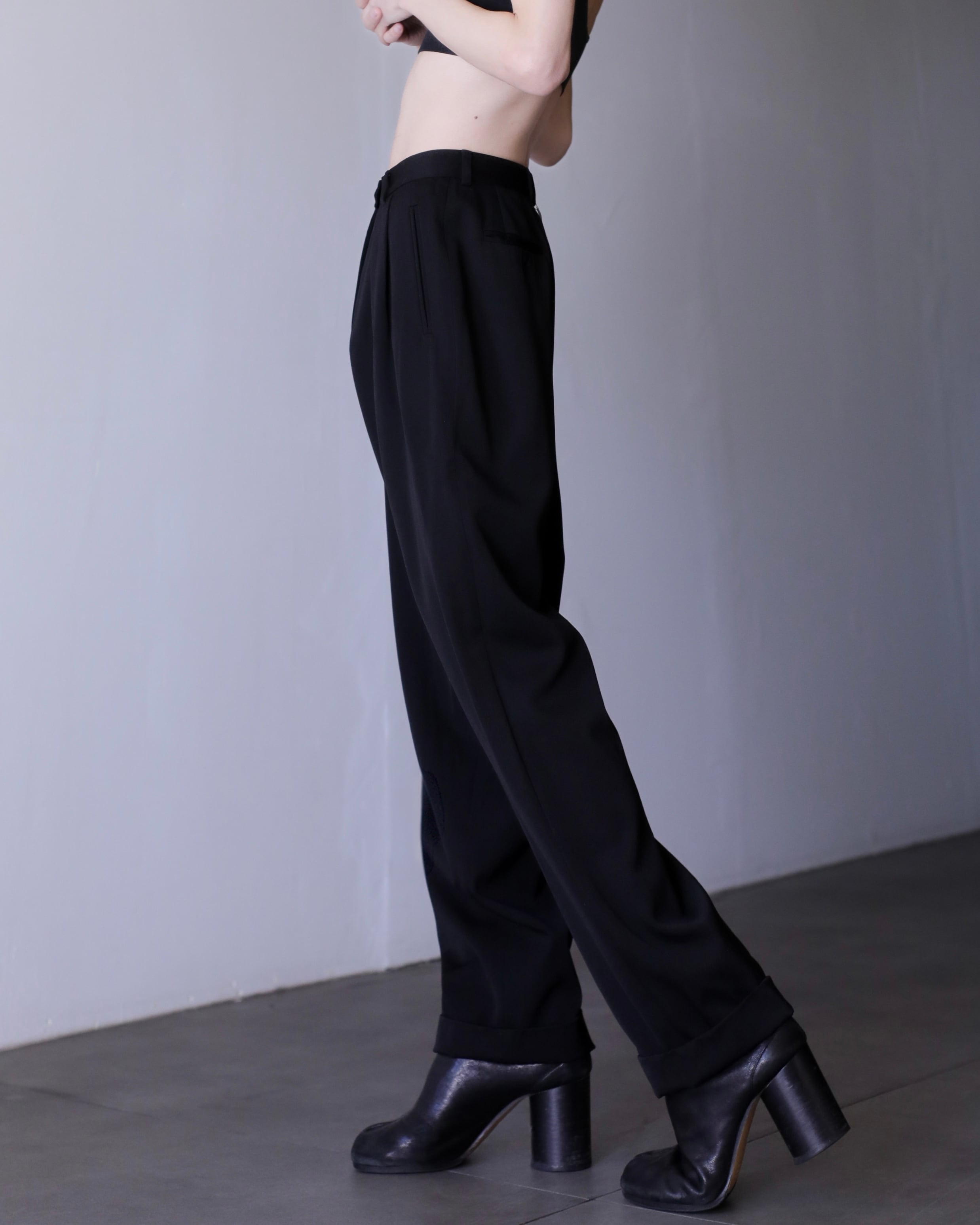 1980s GIORGIO ARMANI "kurotagu" wool gabardine 2tuck slacks Made In Italy