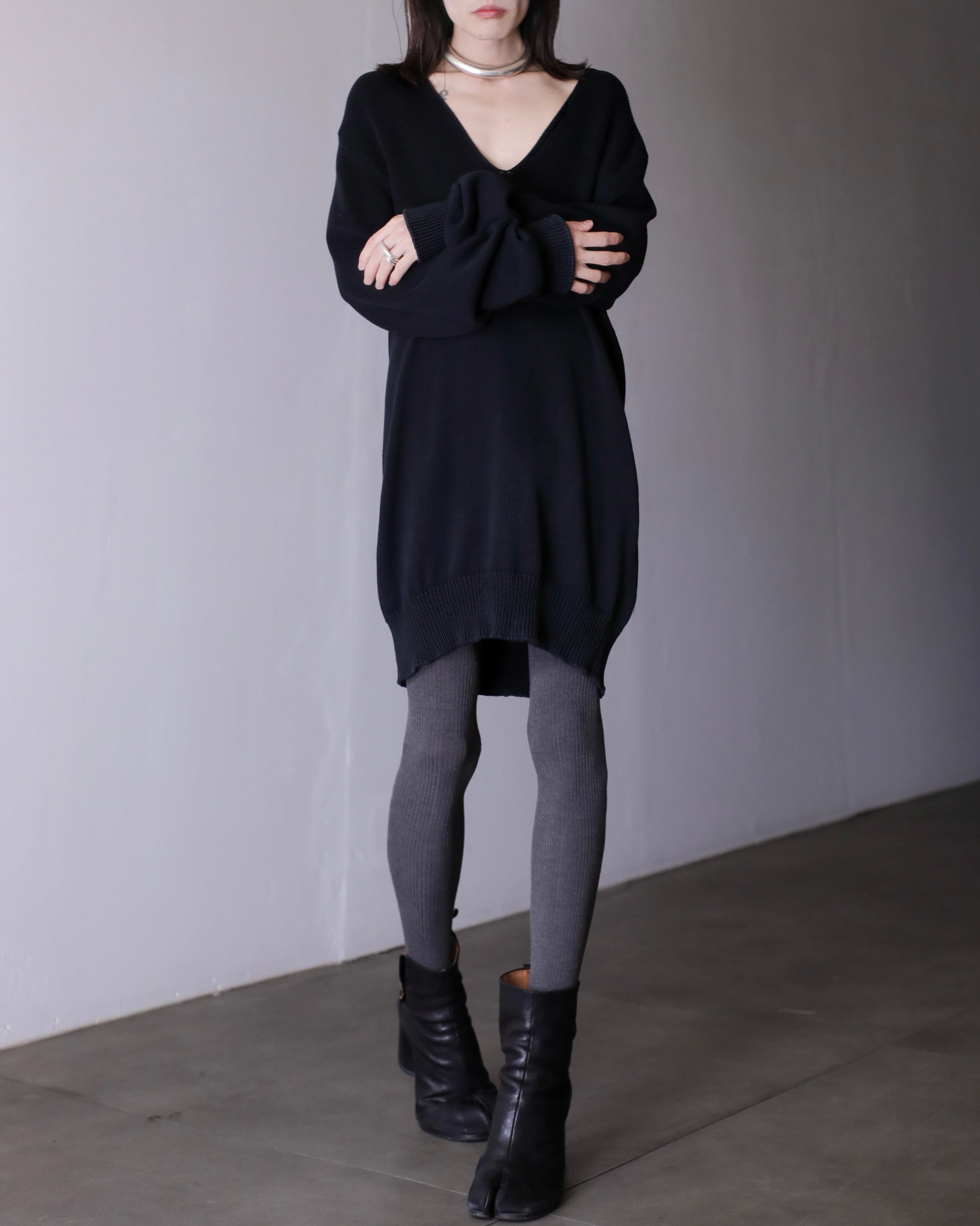 Maison Martin Margiela 14 deep v-neck multidirectional rib design cotton knit oversized Made In Italy