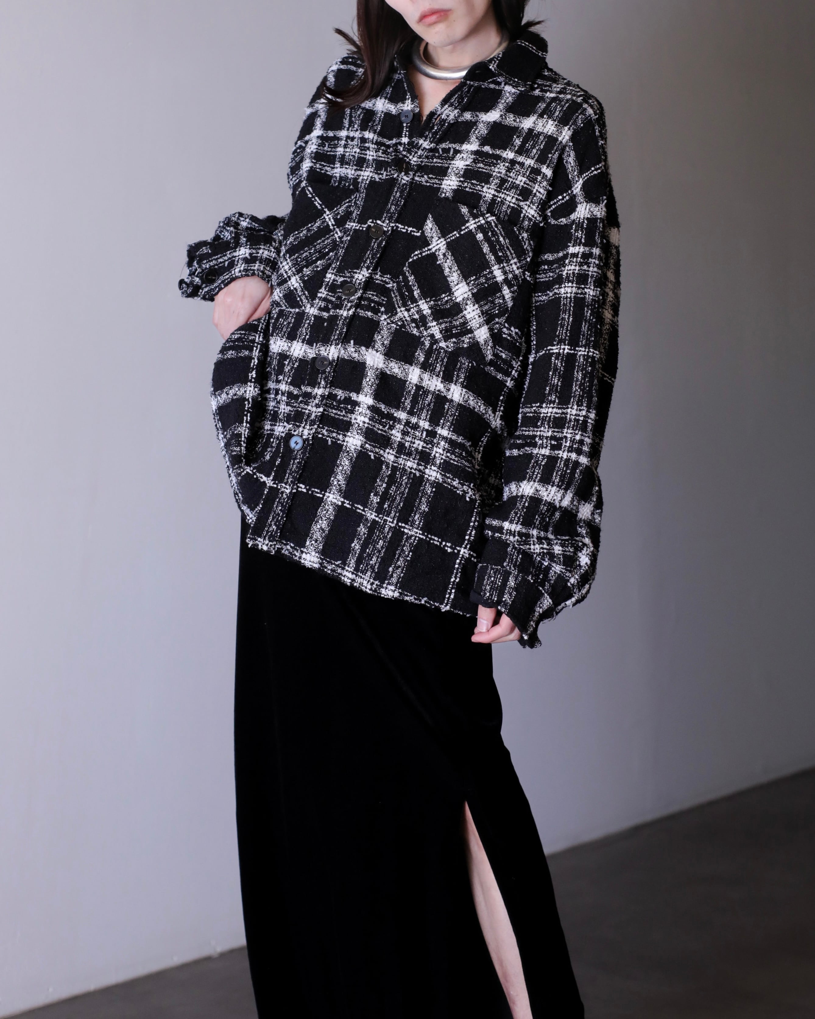 lamé tweed fabric drop shoulder design shirt jacket oversized