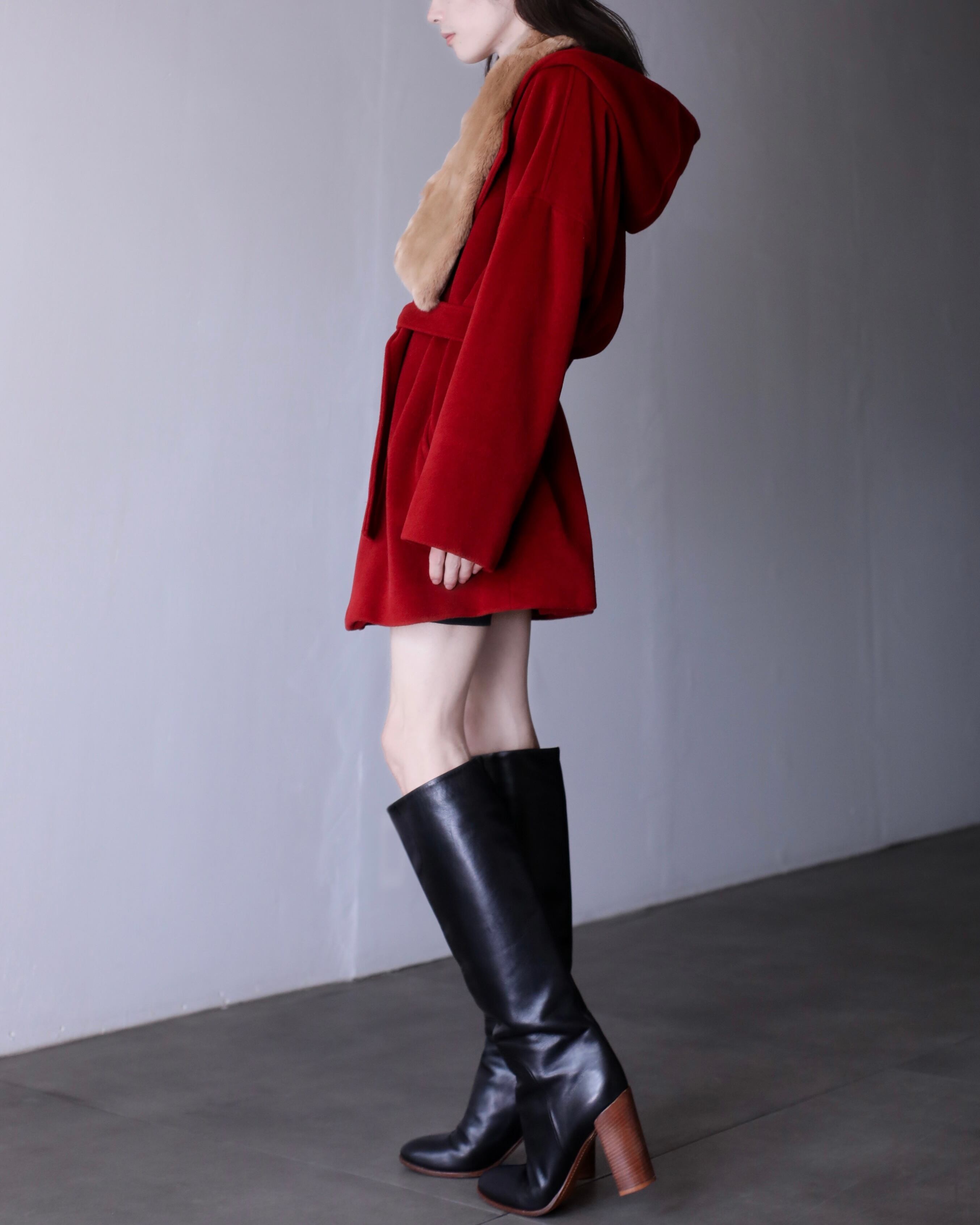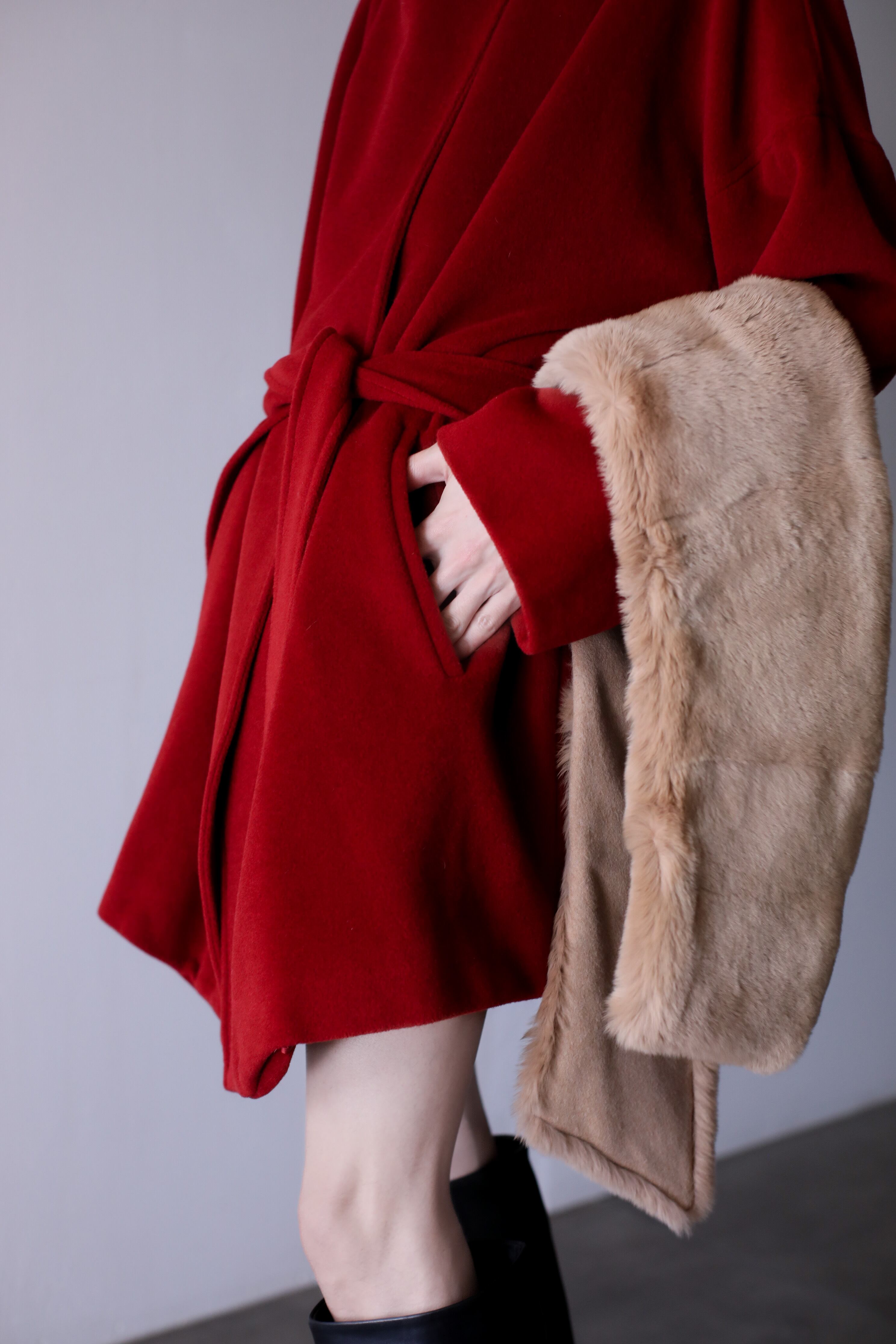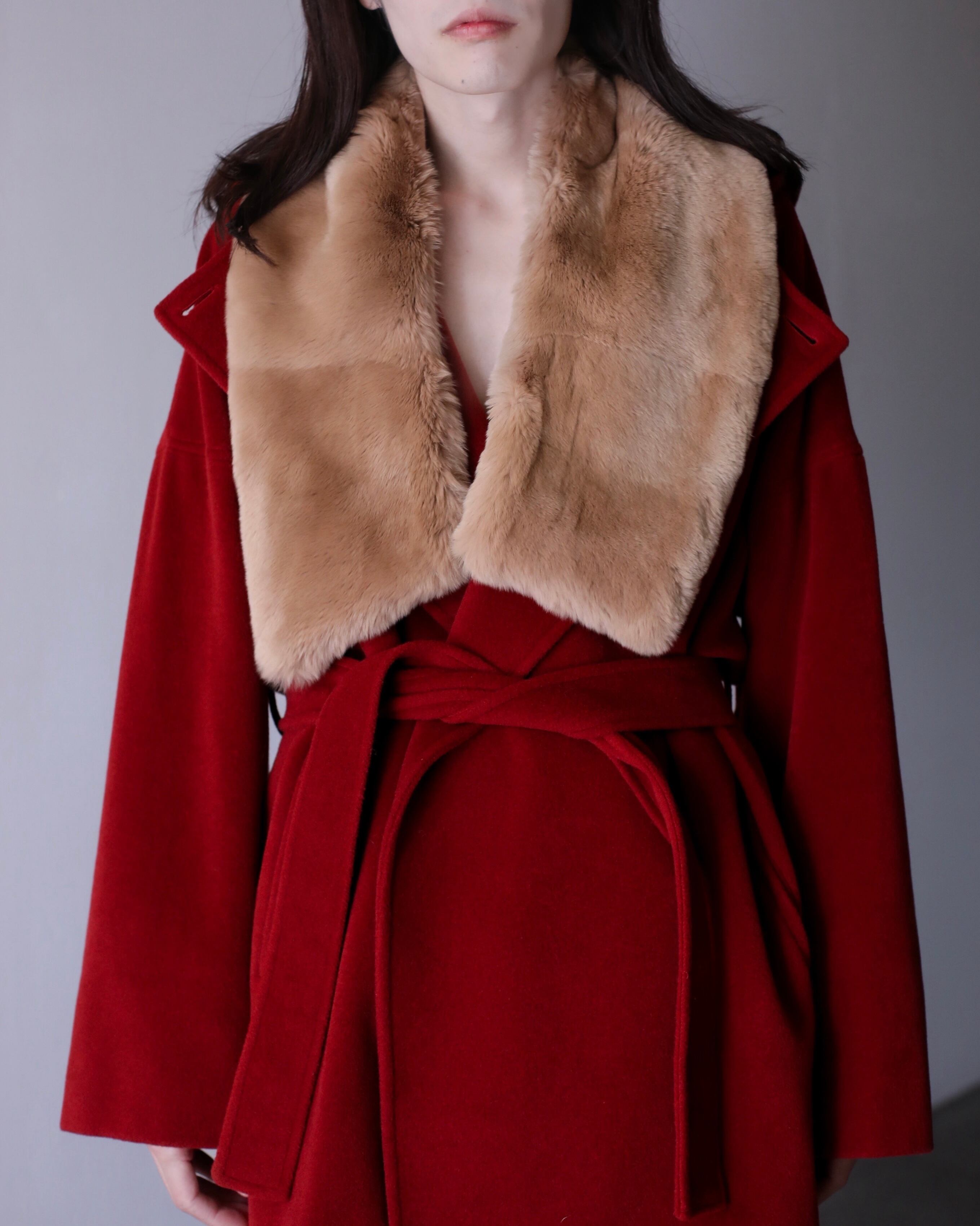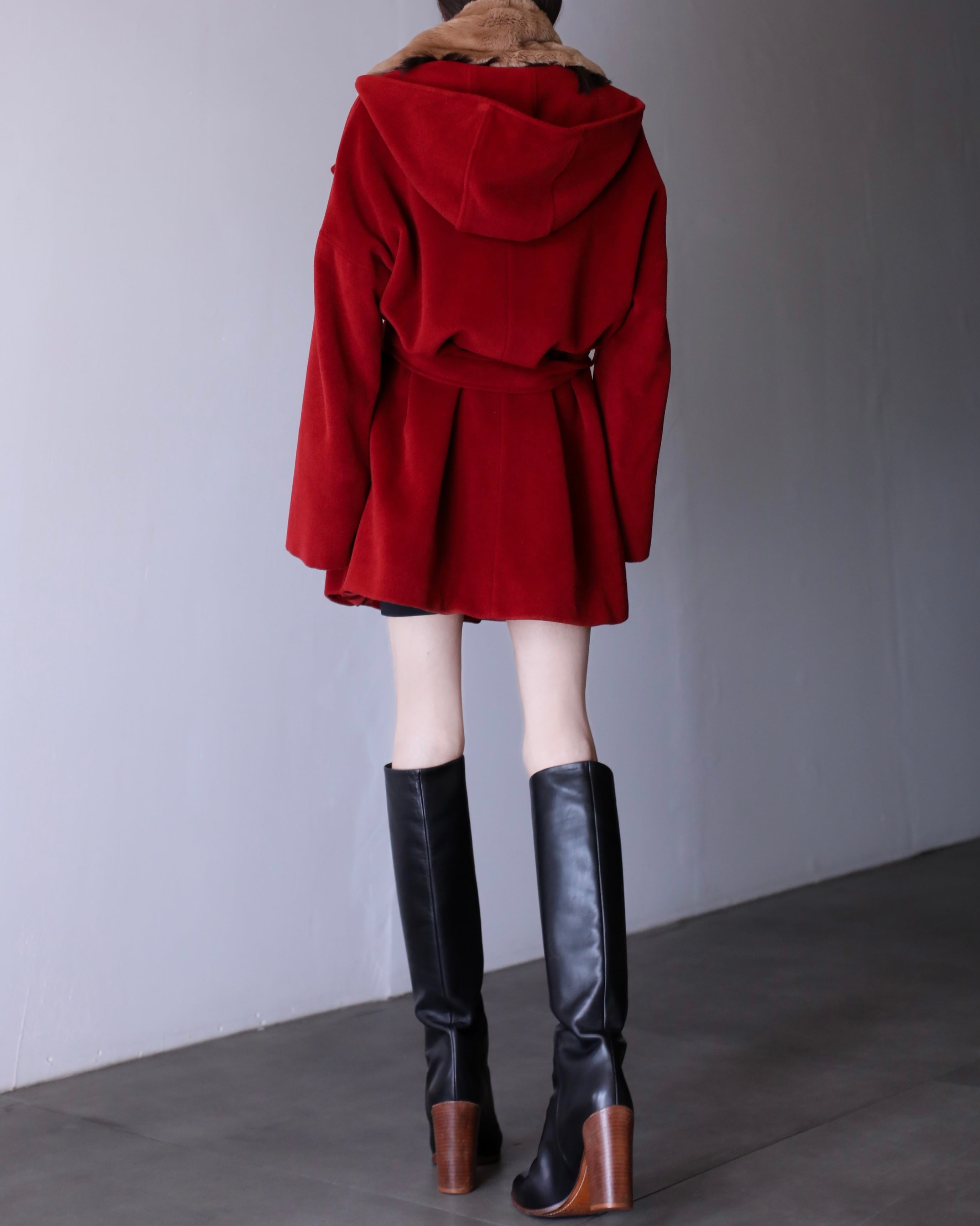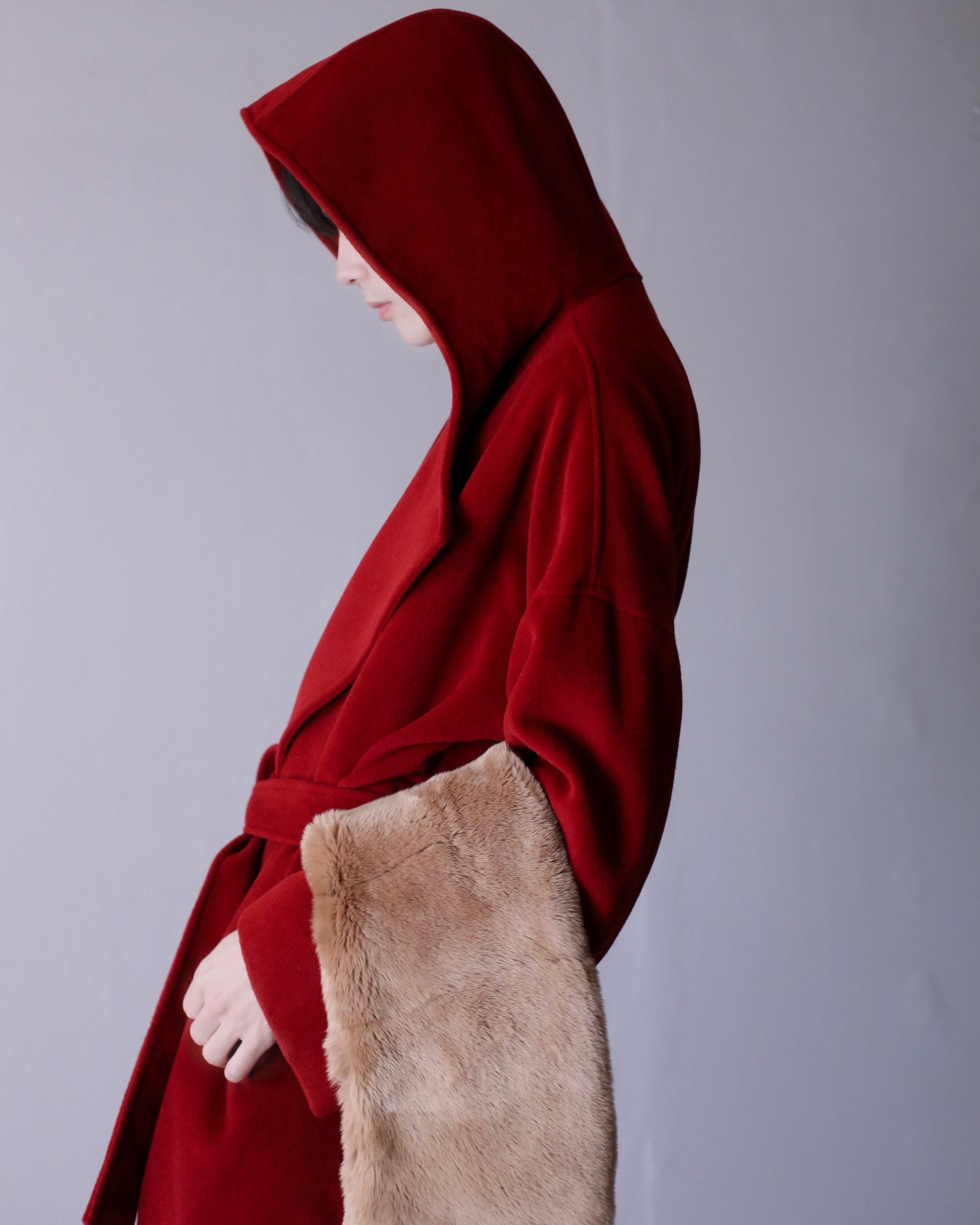 1990s MaxMara angora mix "kimono sleeve" drop shoulder double breasted hoodie belted design coat oversized Made In Italy