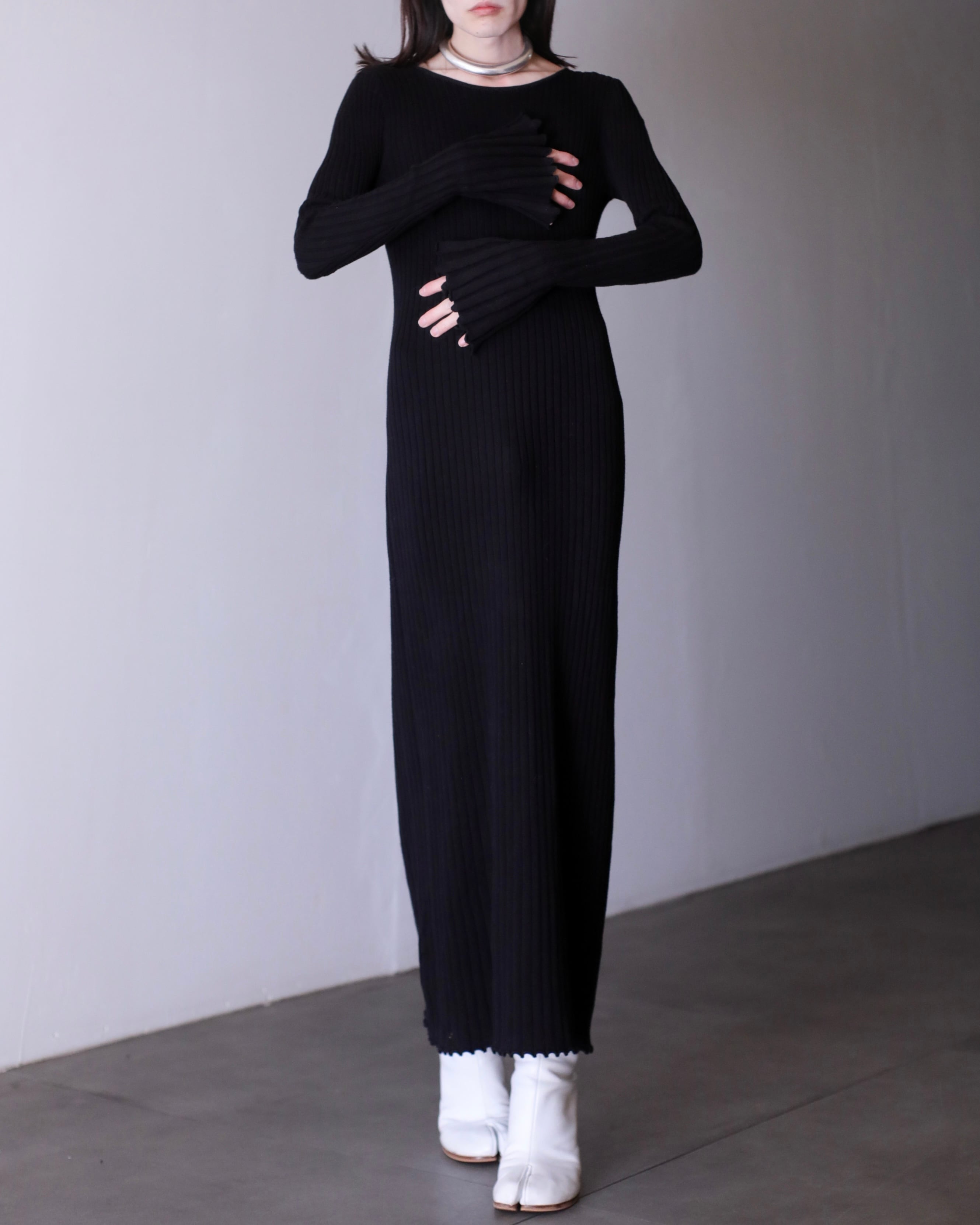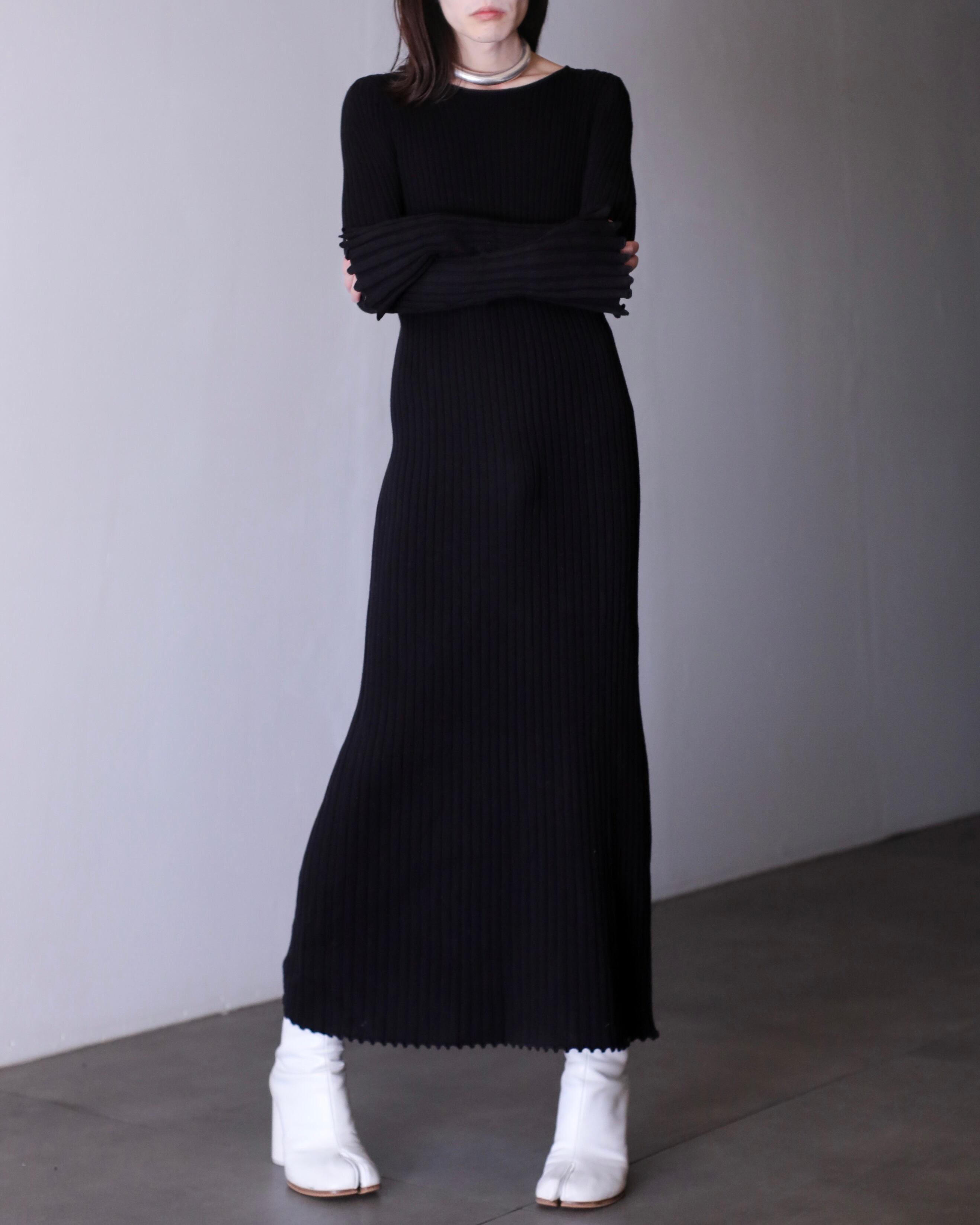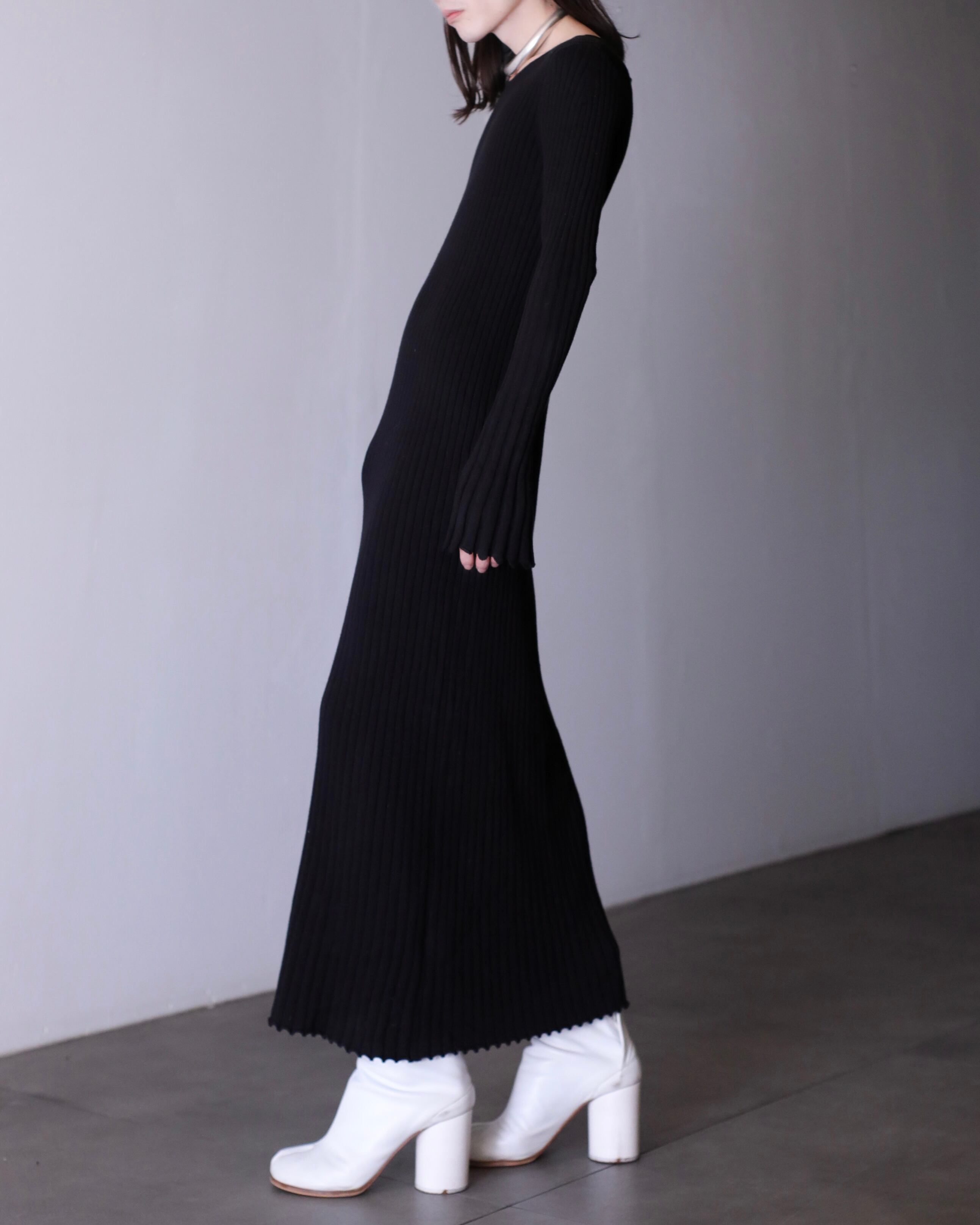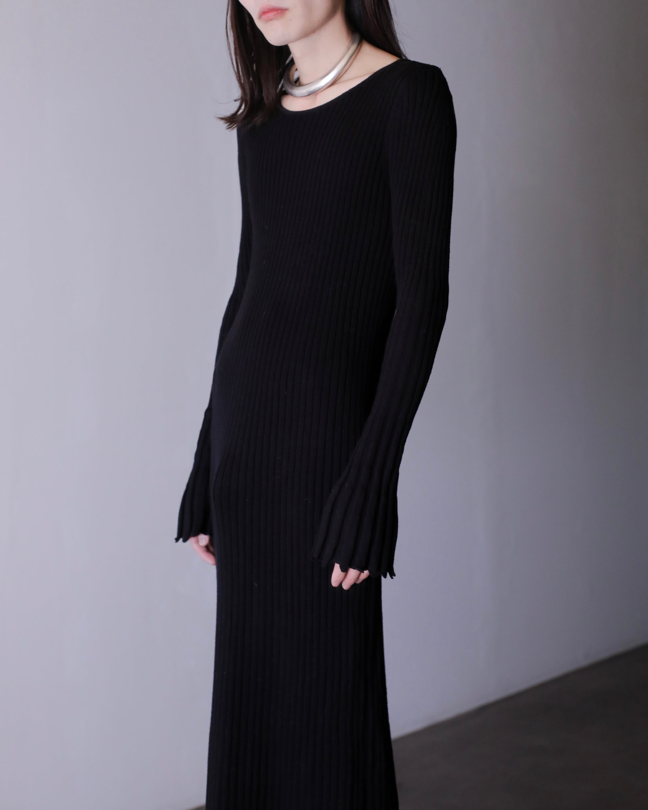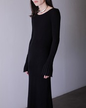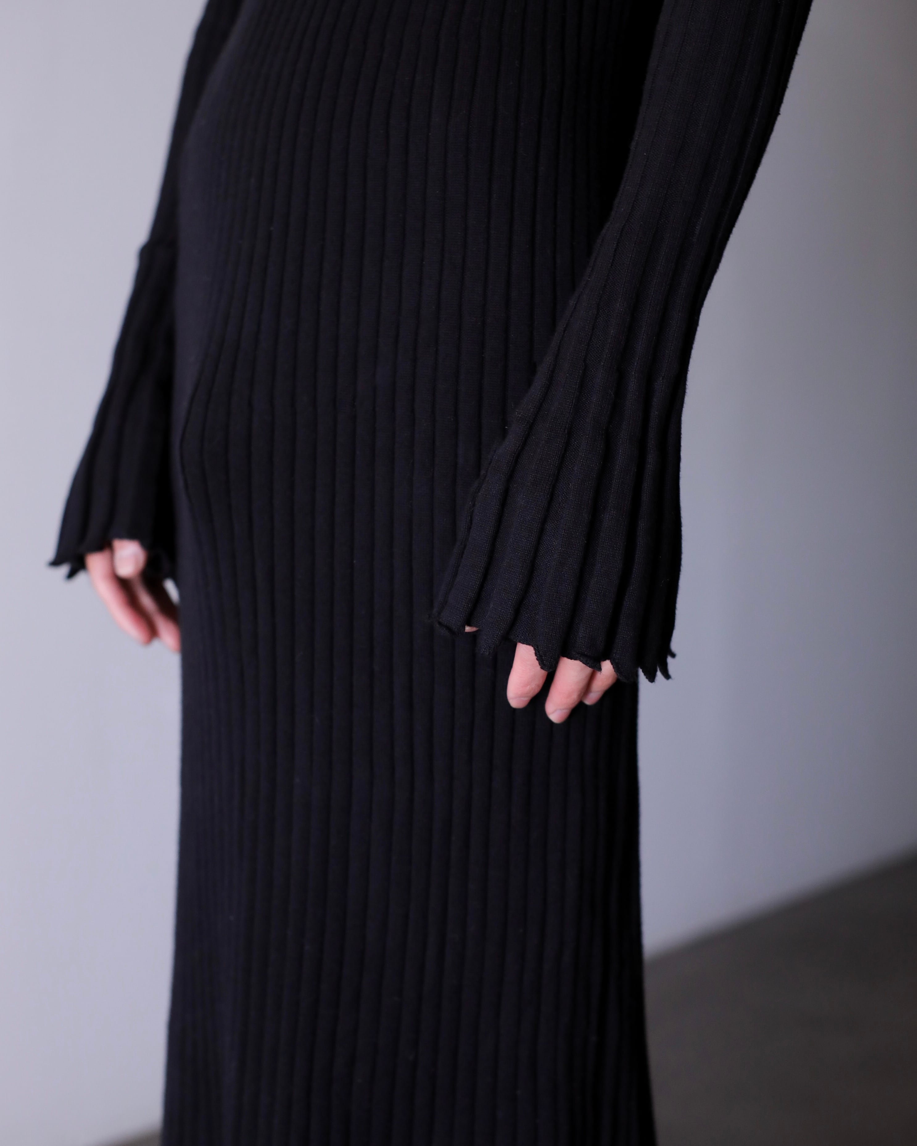 bell-sleeve 3D rib design maxi length knit dress one piece