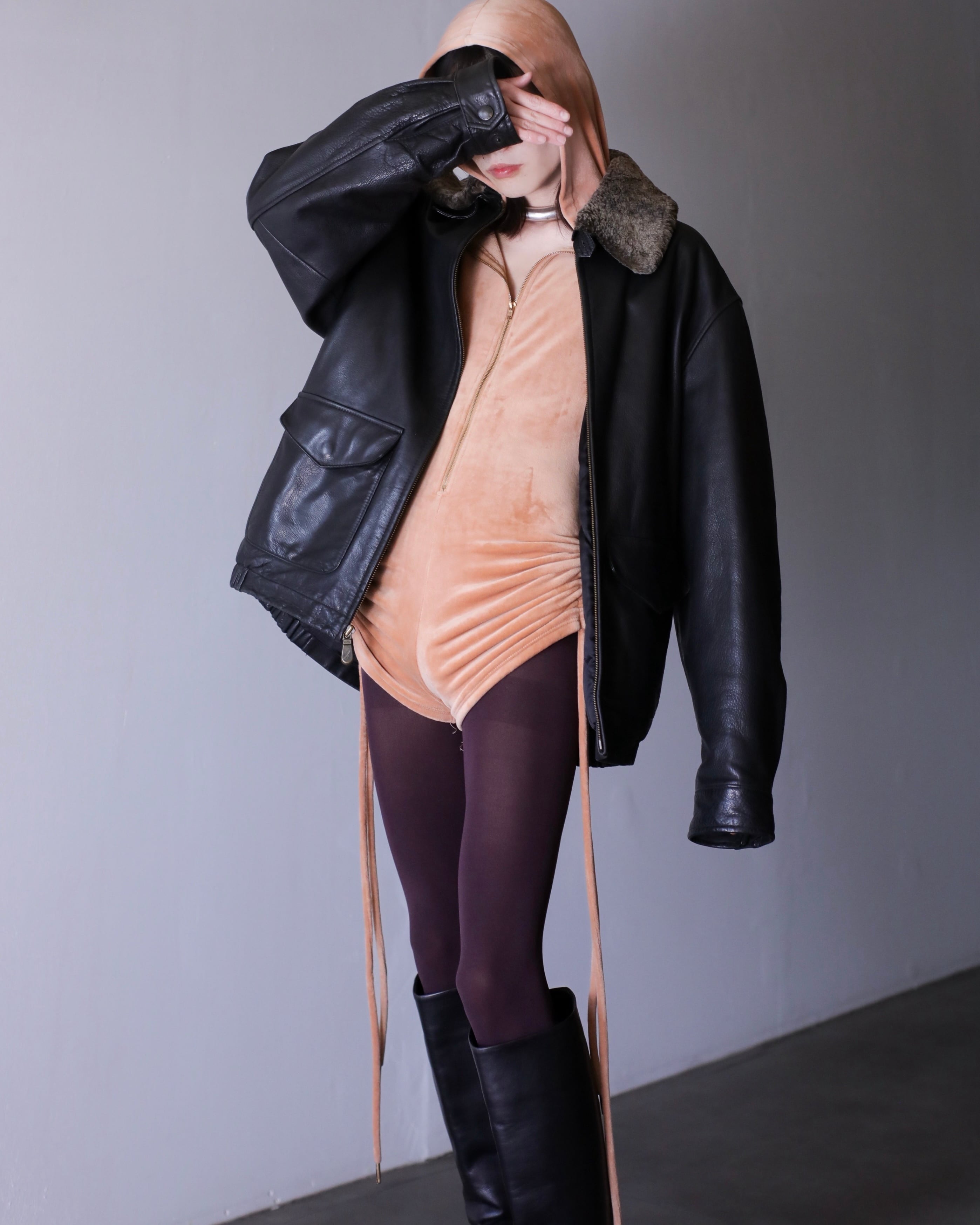 NAUTICA nameraka leather "eri fur" switching design blouson oversized
