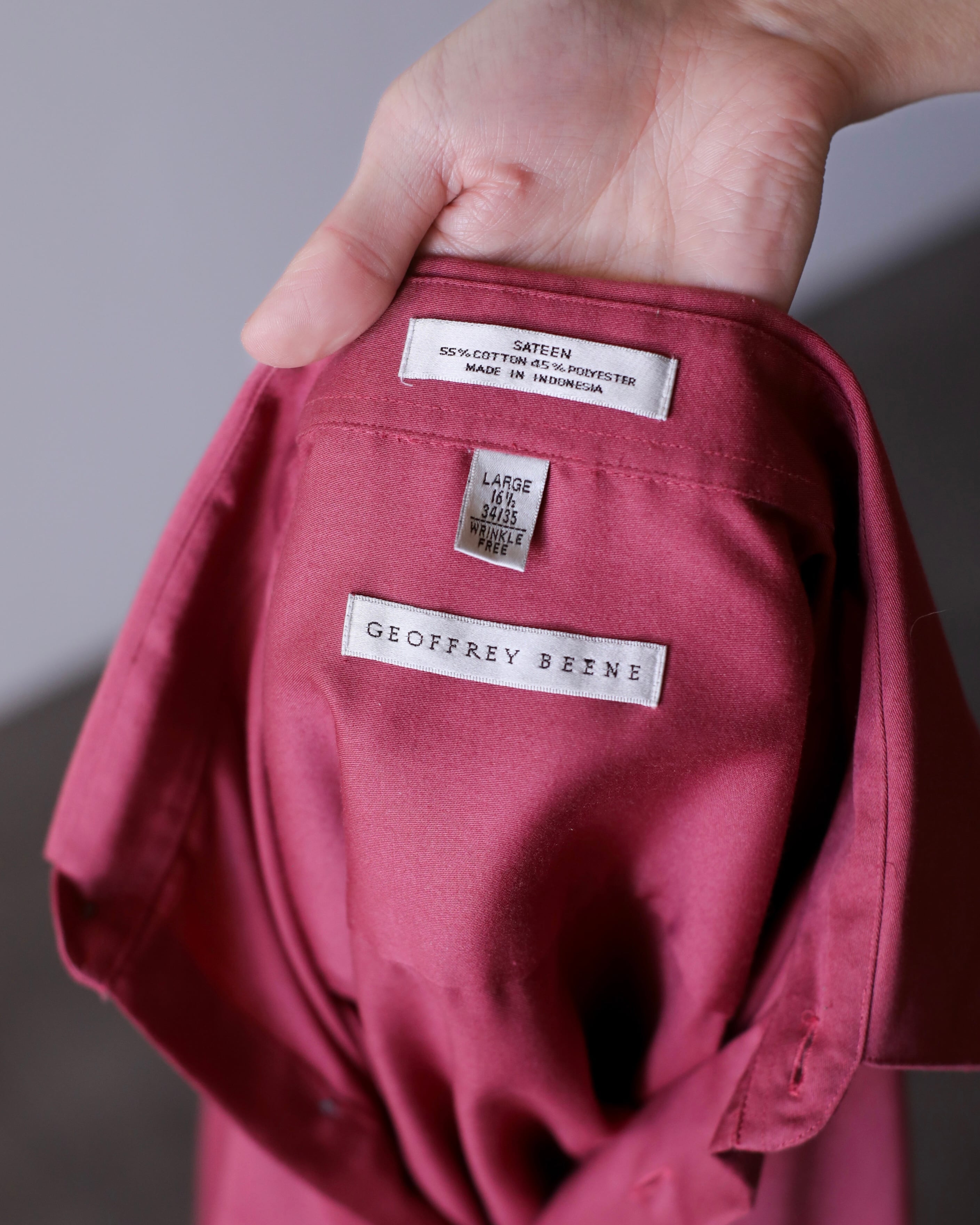 1990s~ cotton satin rose red color dress shirt oversized