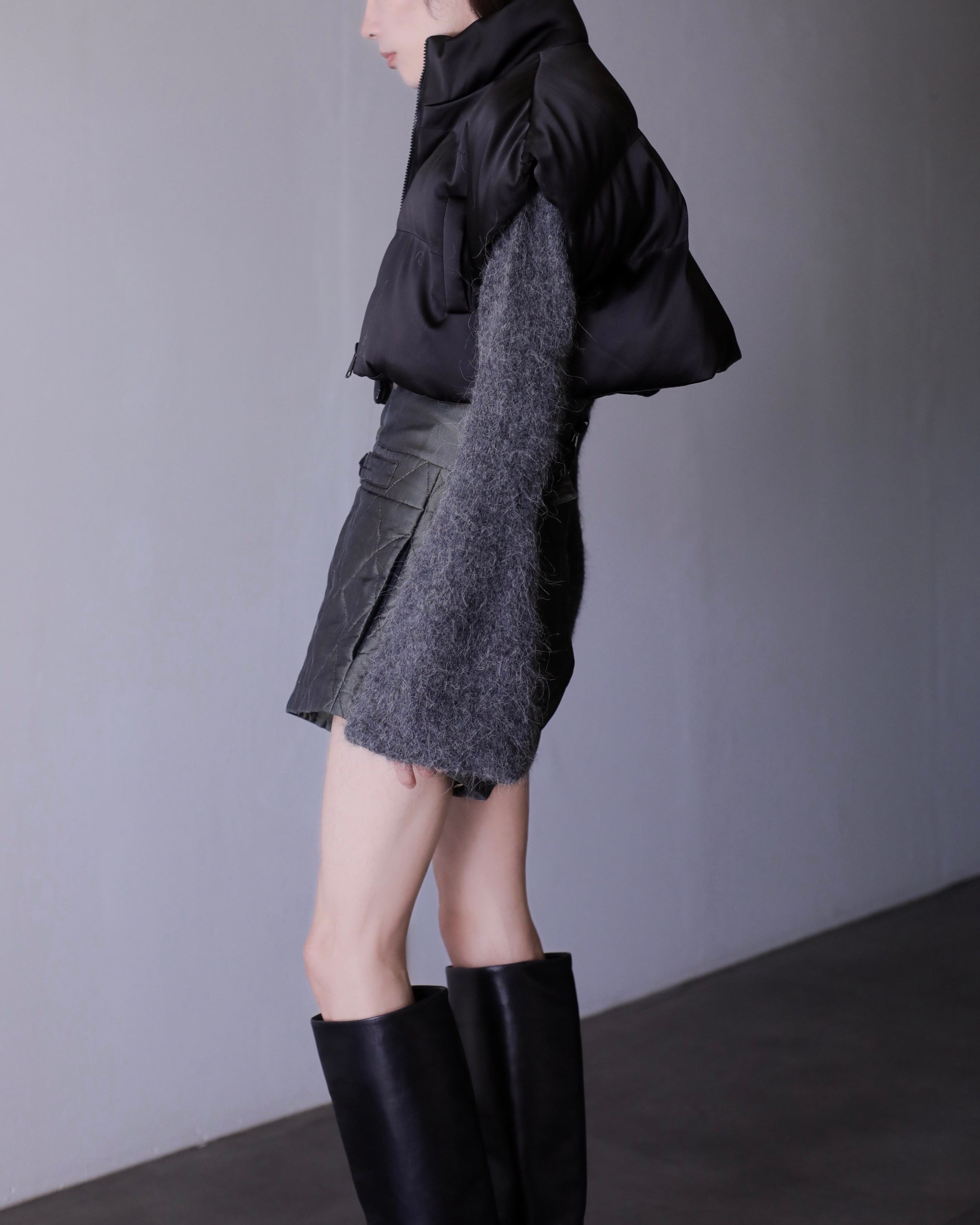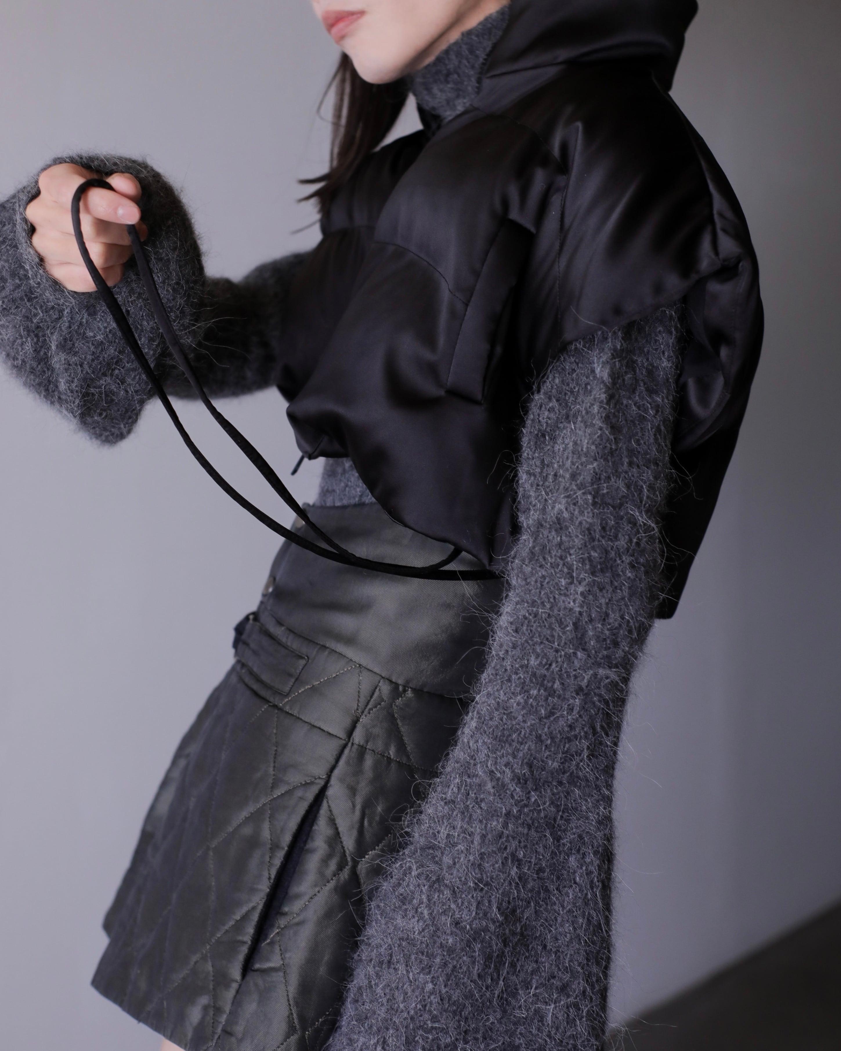 極短丈かつ身幅たっぷりのモードな形が魅力的。