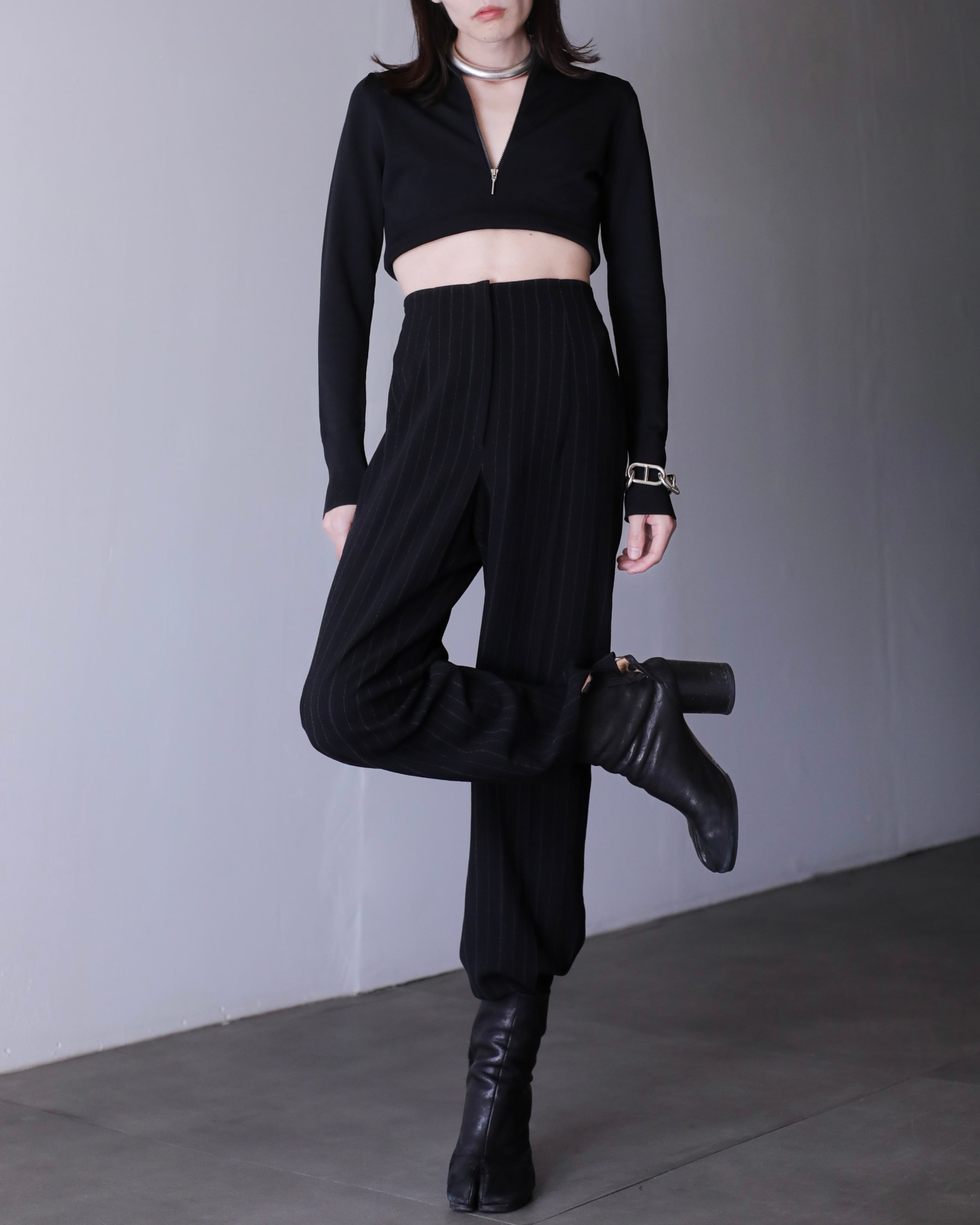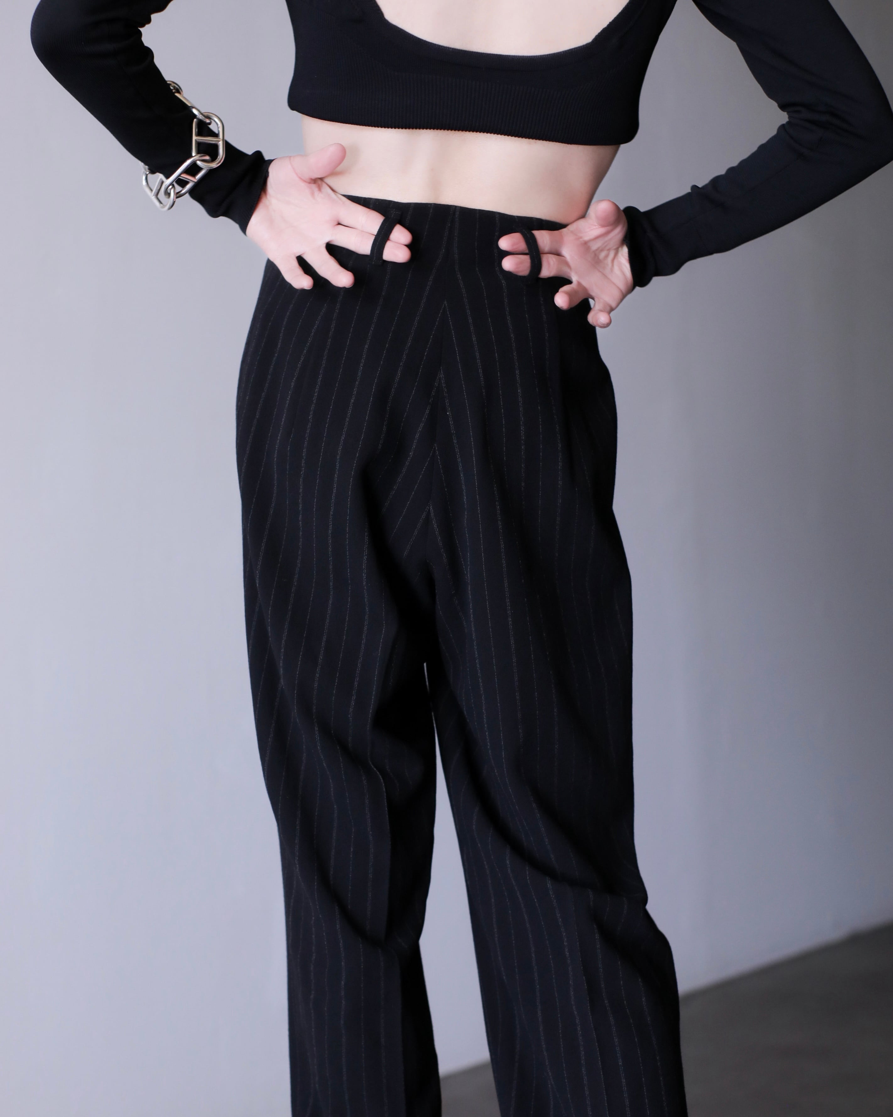 1990s JIL SANDER+ beautiful silhouette inverted pleats tuck design chalk stripes slacks Made In Germany