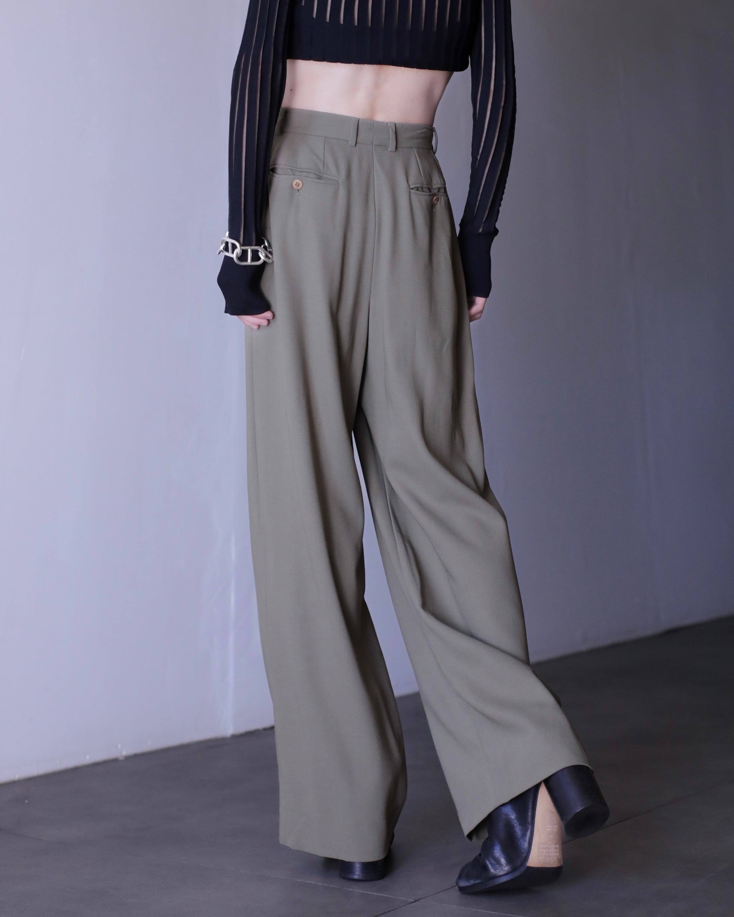 1980s GIORGIO ARMANI hi-waist 2tuck wide straight slacks toromi fabric made in Italy