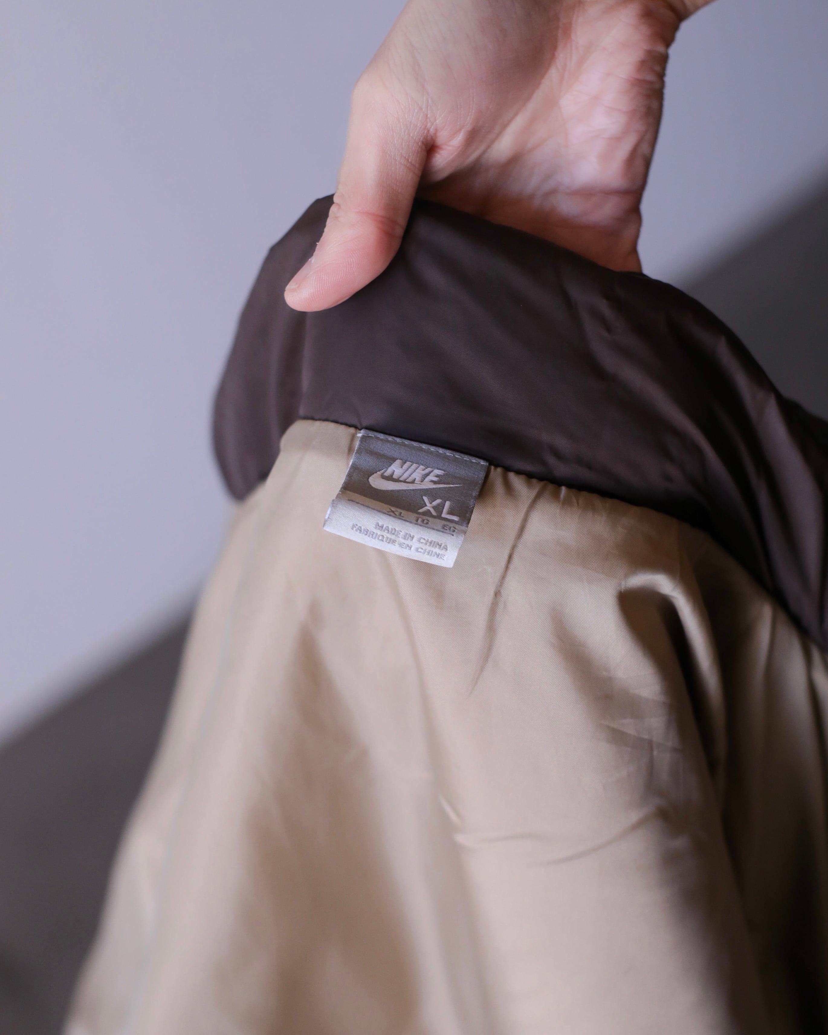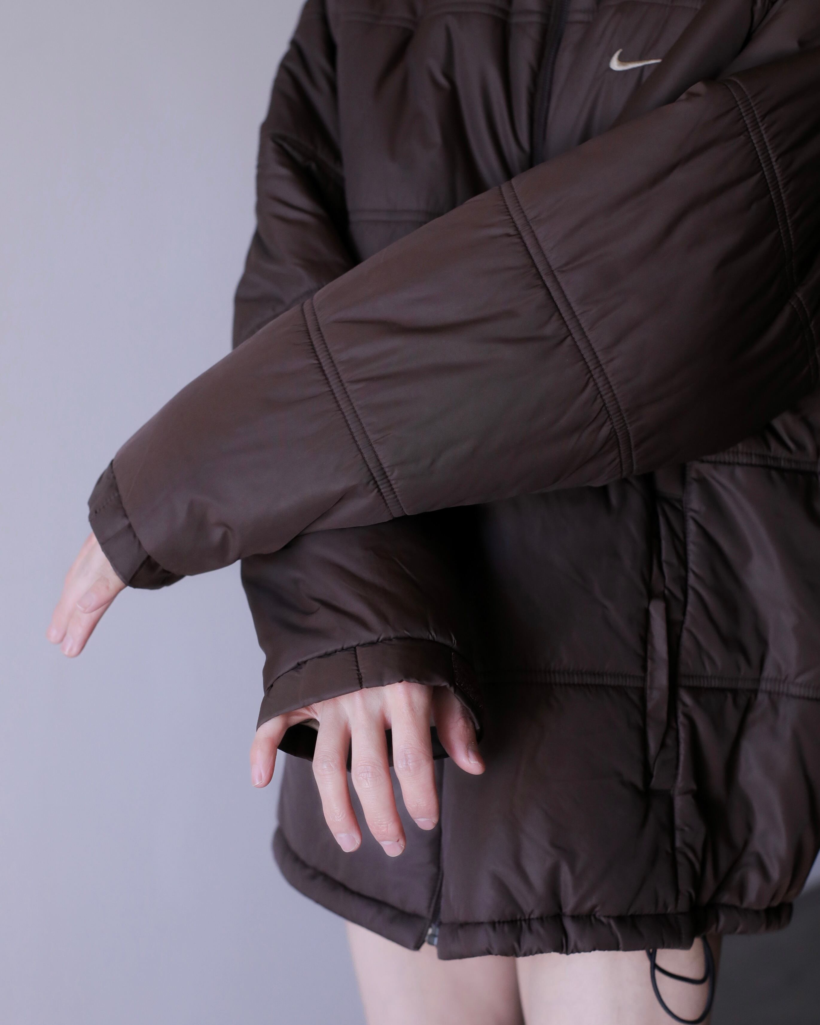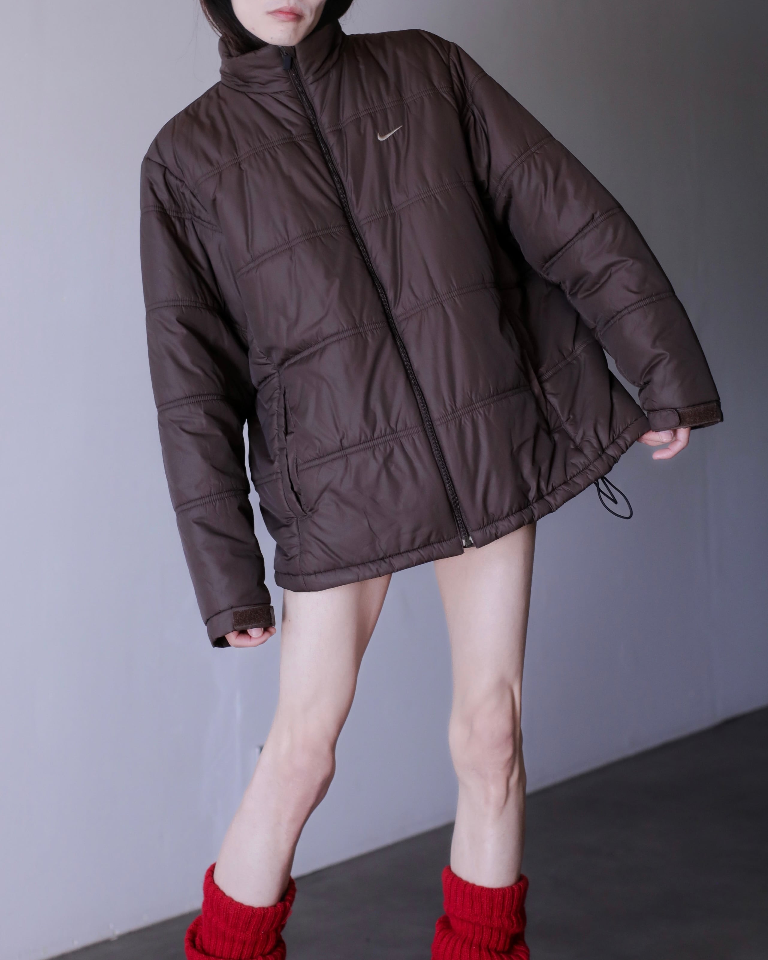 NIKE 2000s padding hi-neck drawstrings design jacket brown color