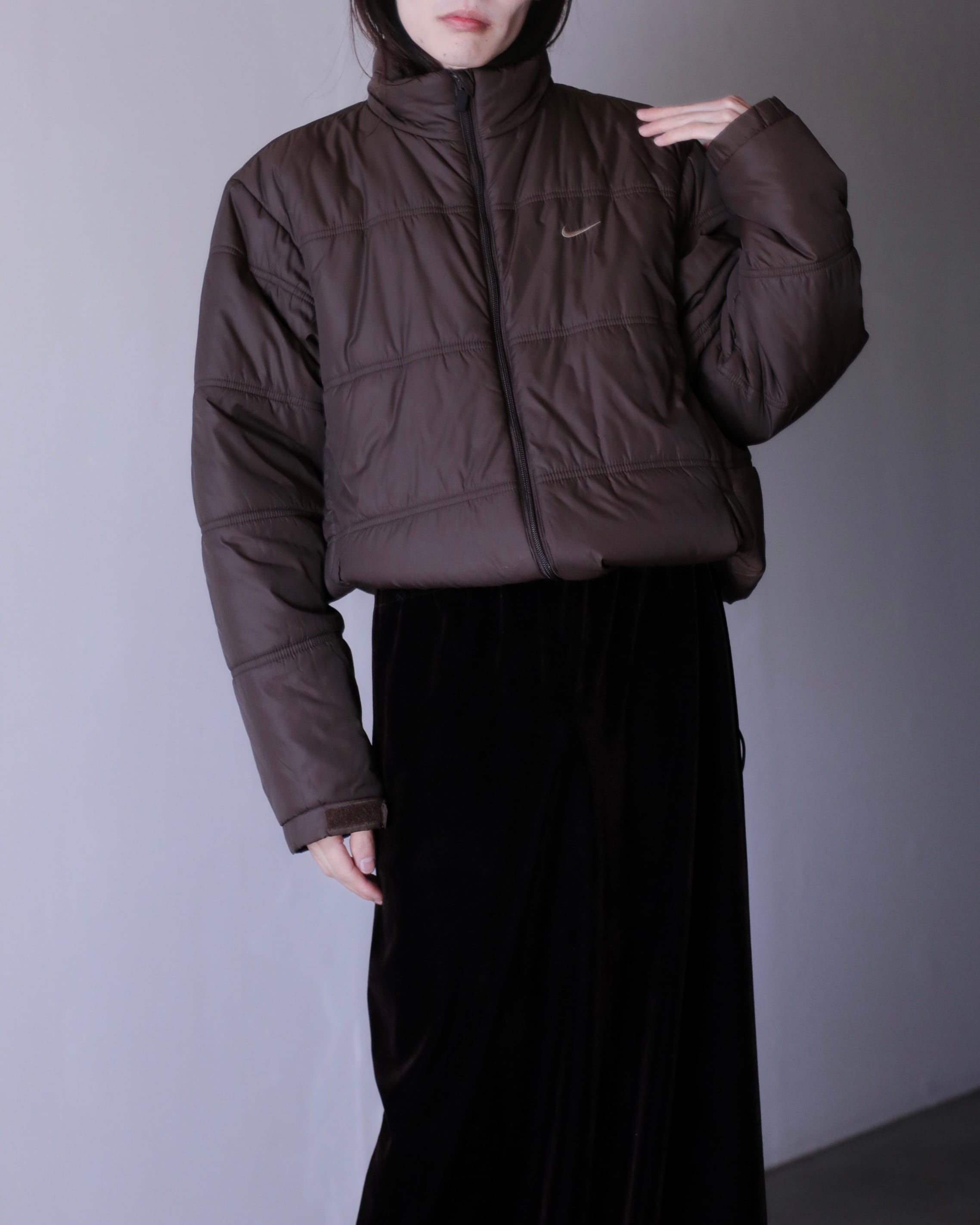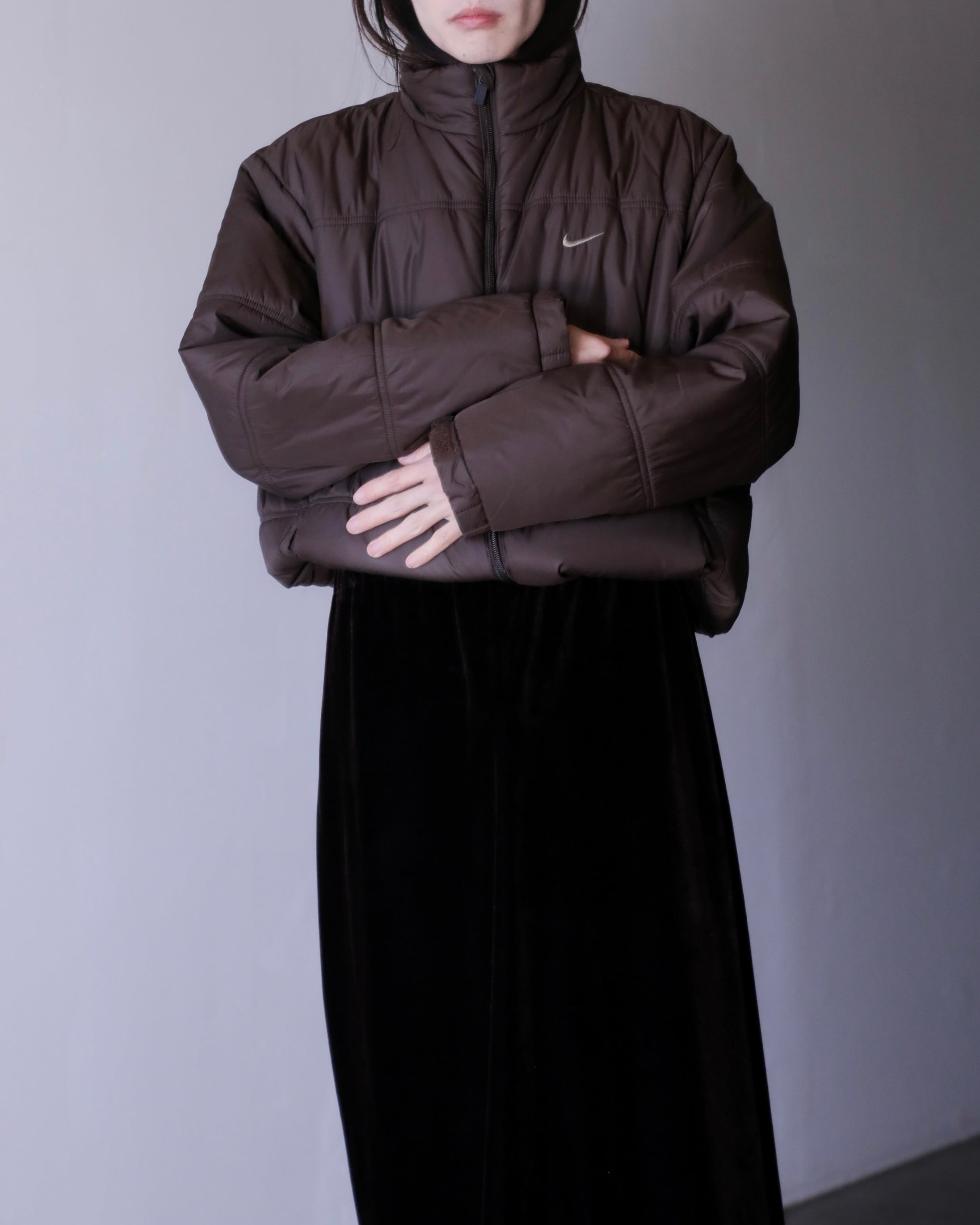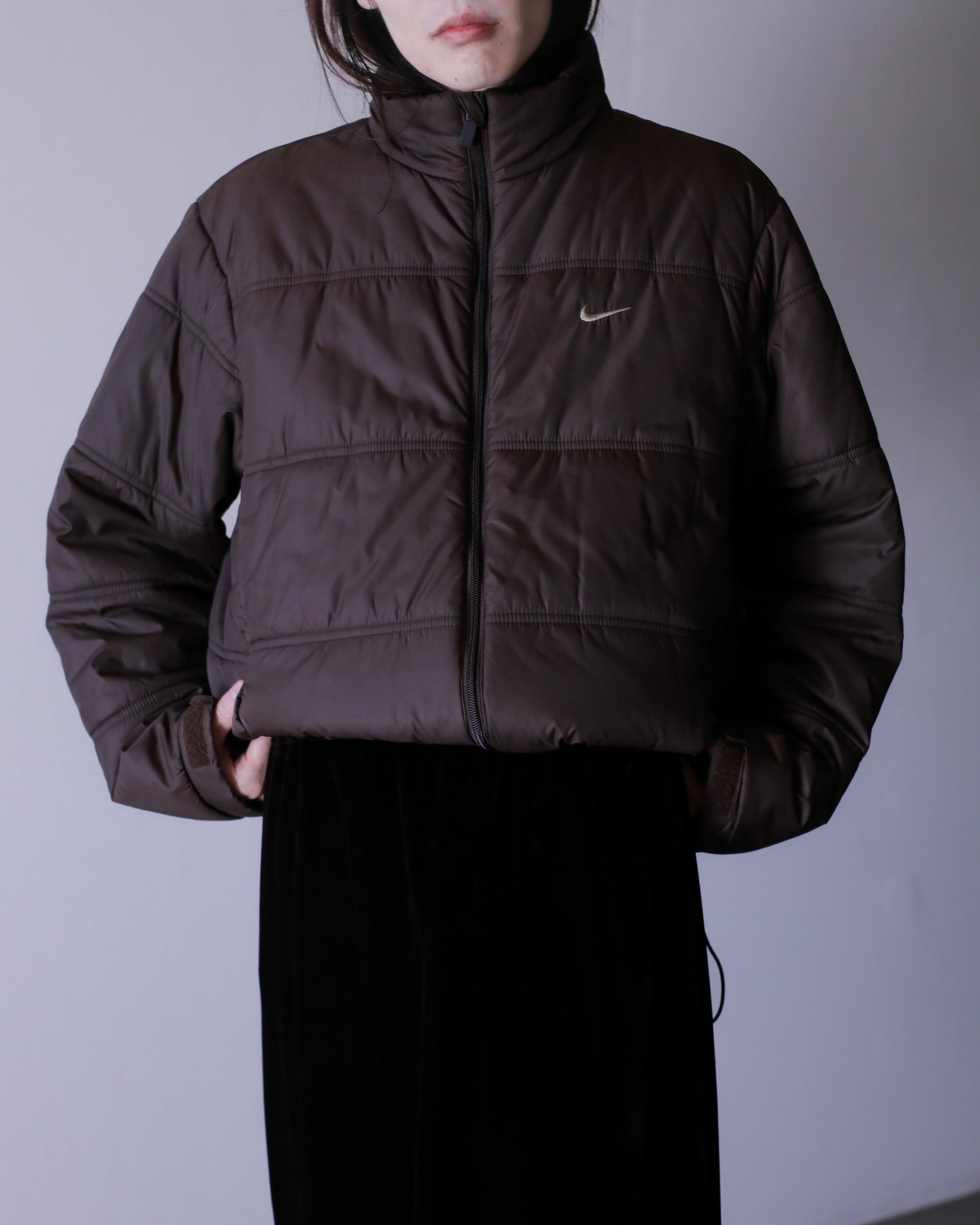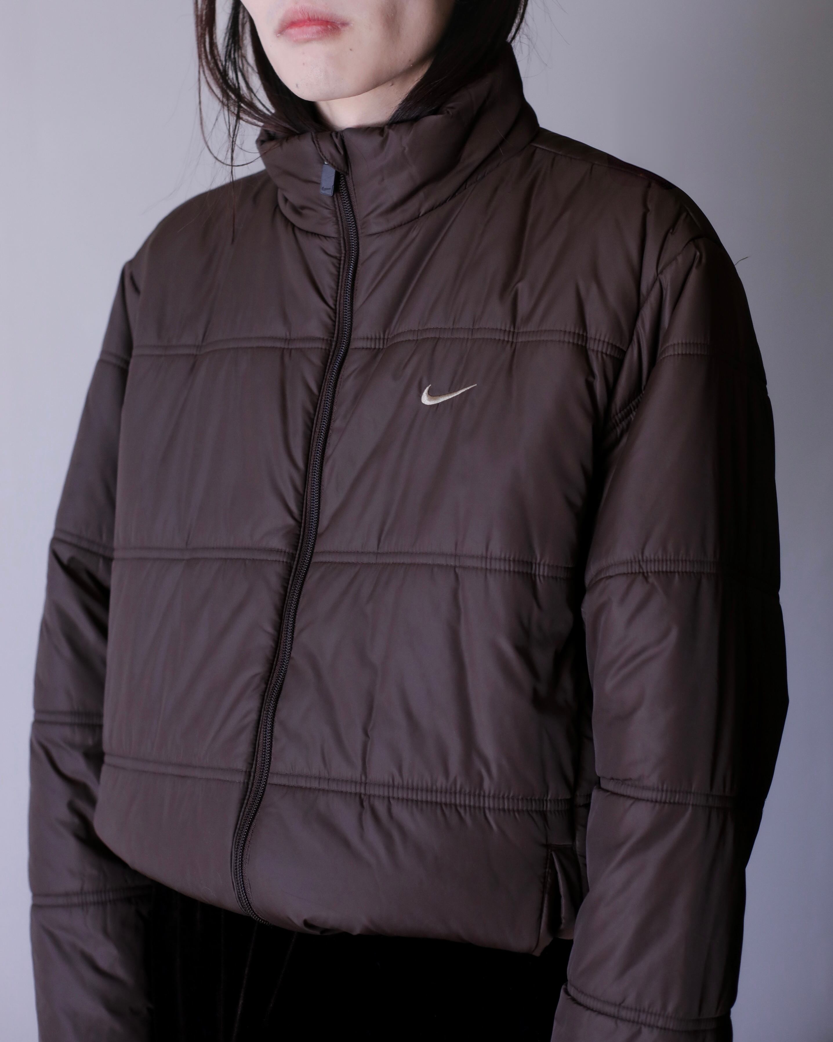 NIKE 2000s padding hi-neck drawstrings design jacket brown color