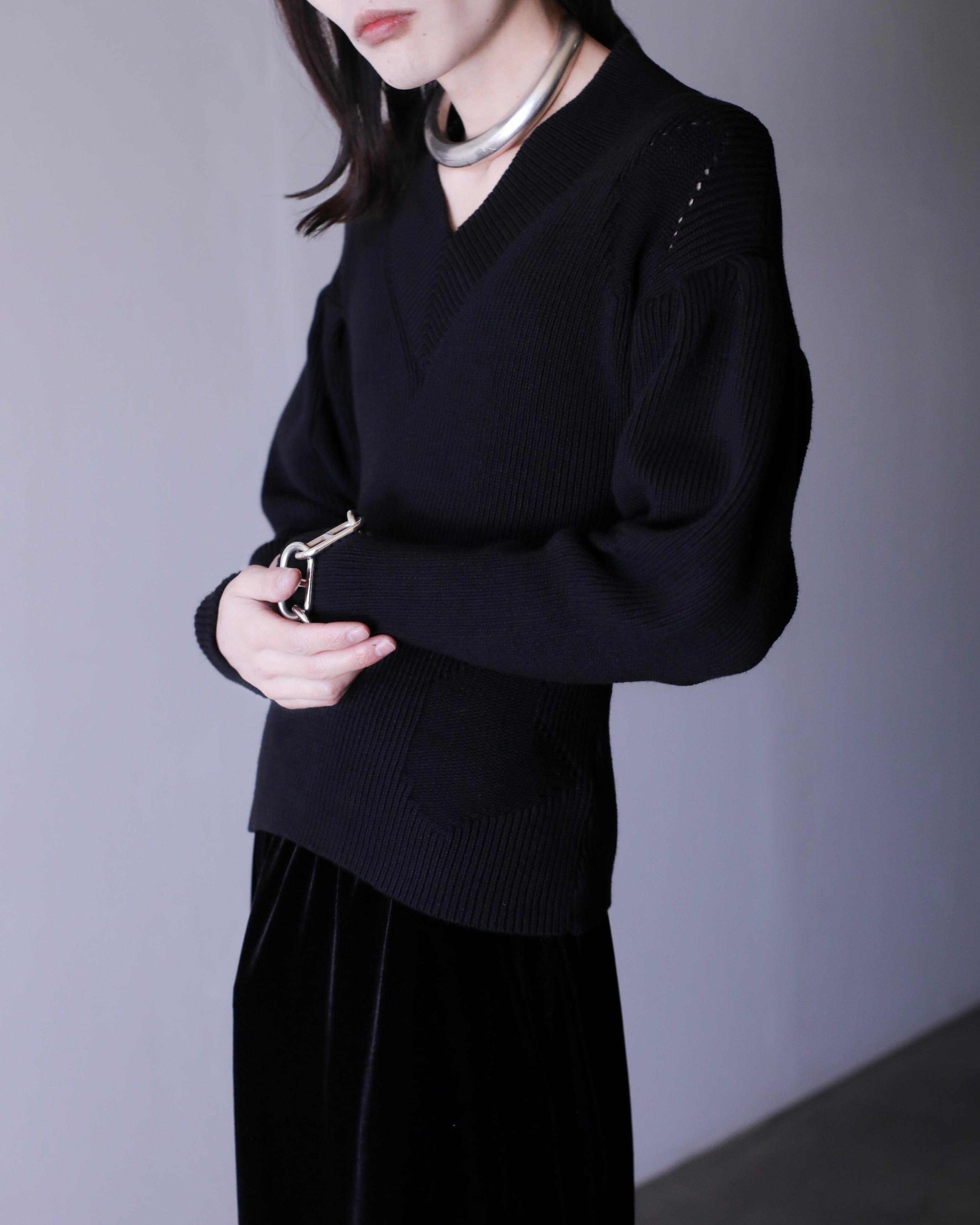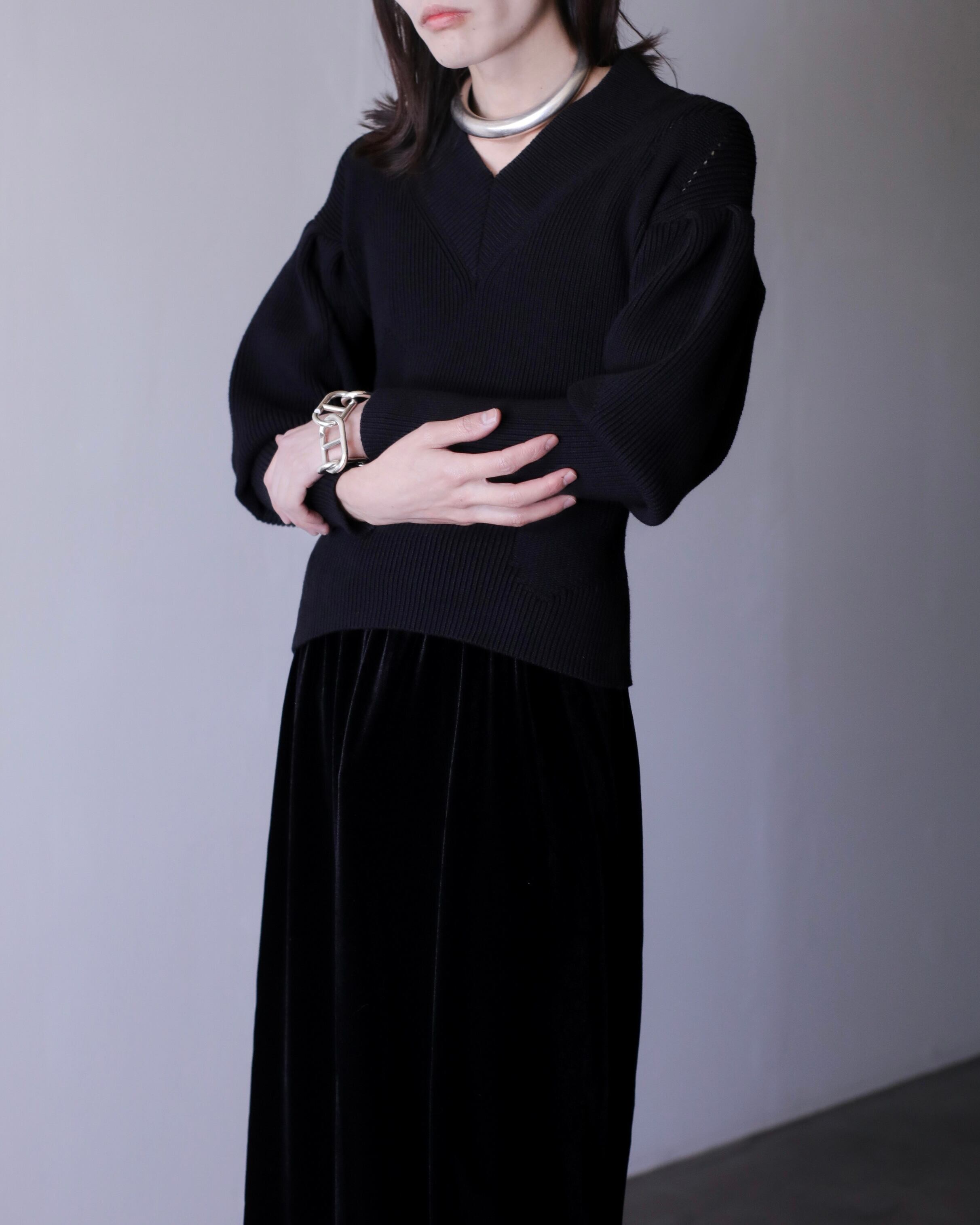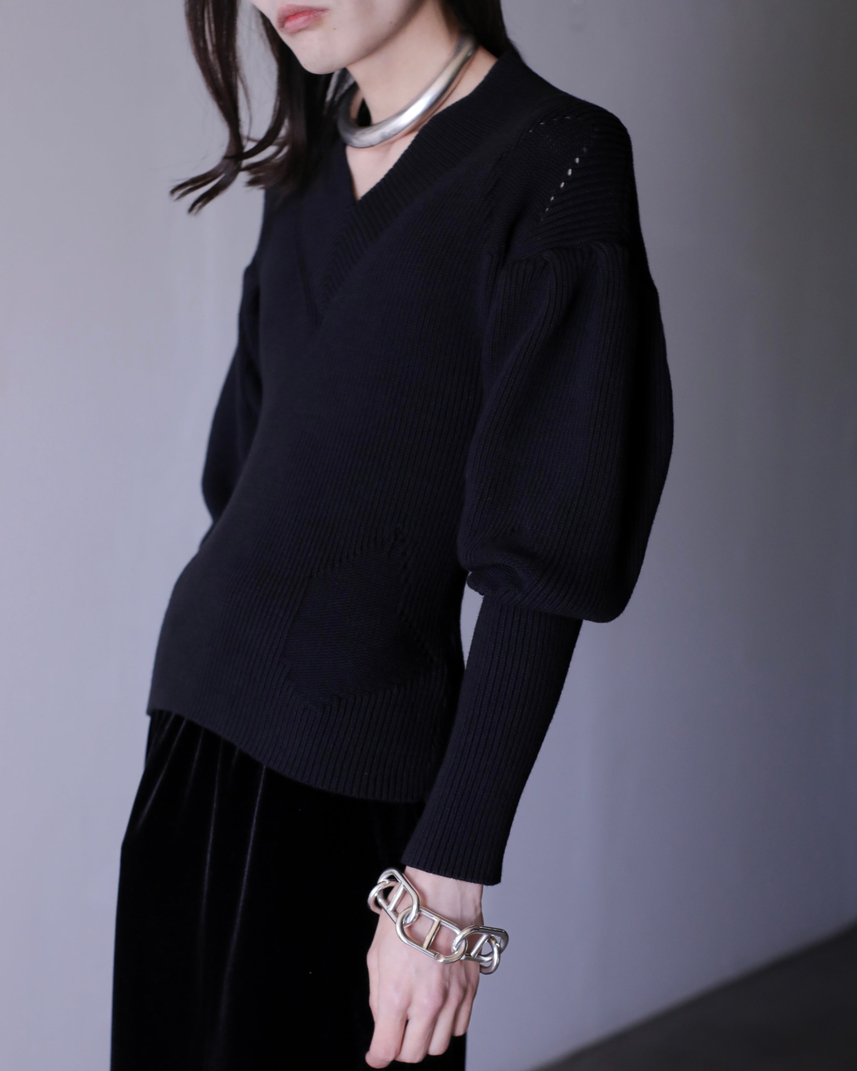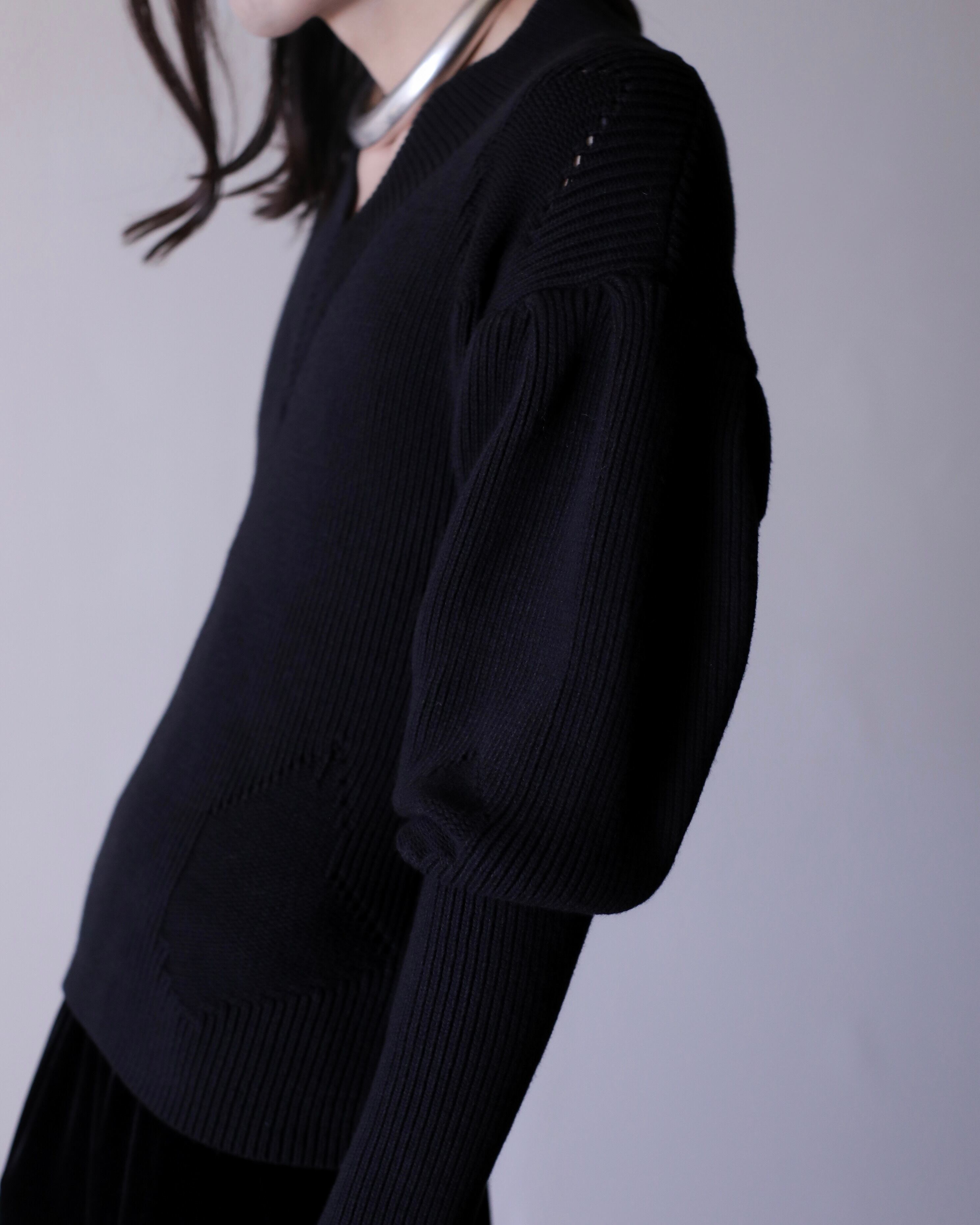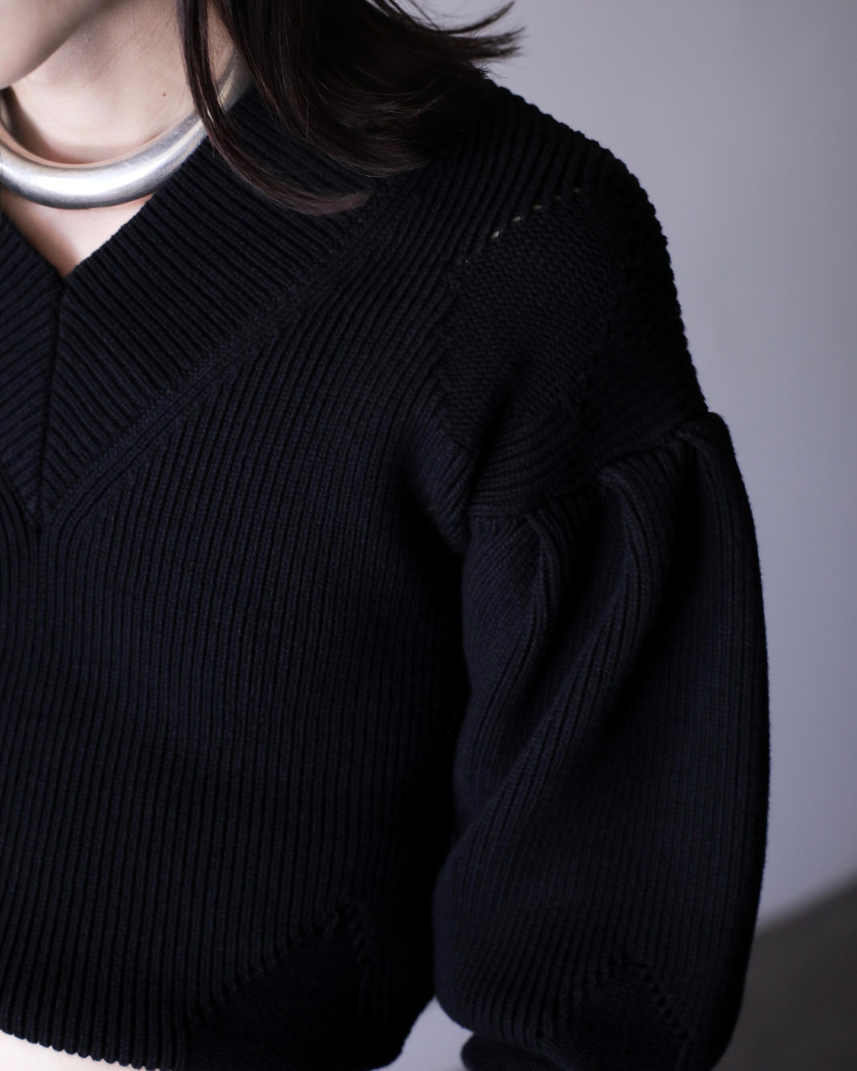 袖は二の腕にボリュームを持たせた立体的なバルーンシルエット。