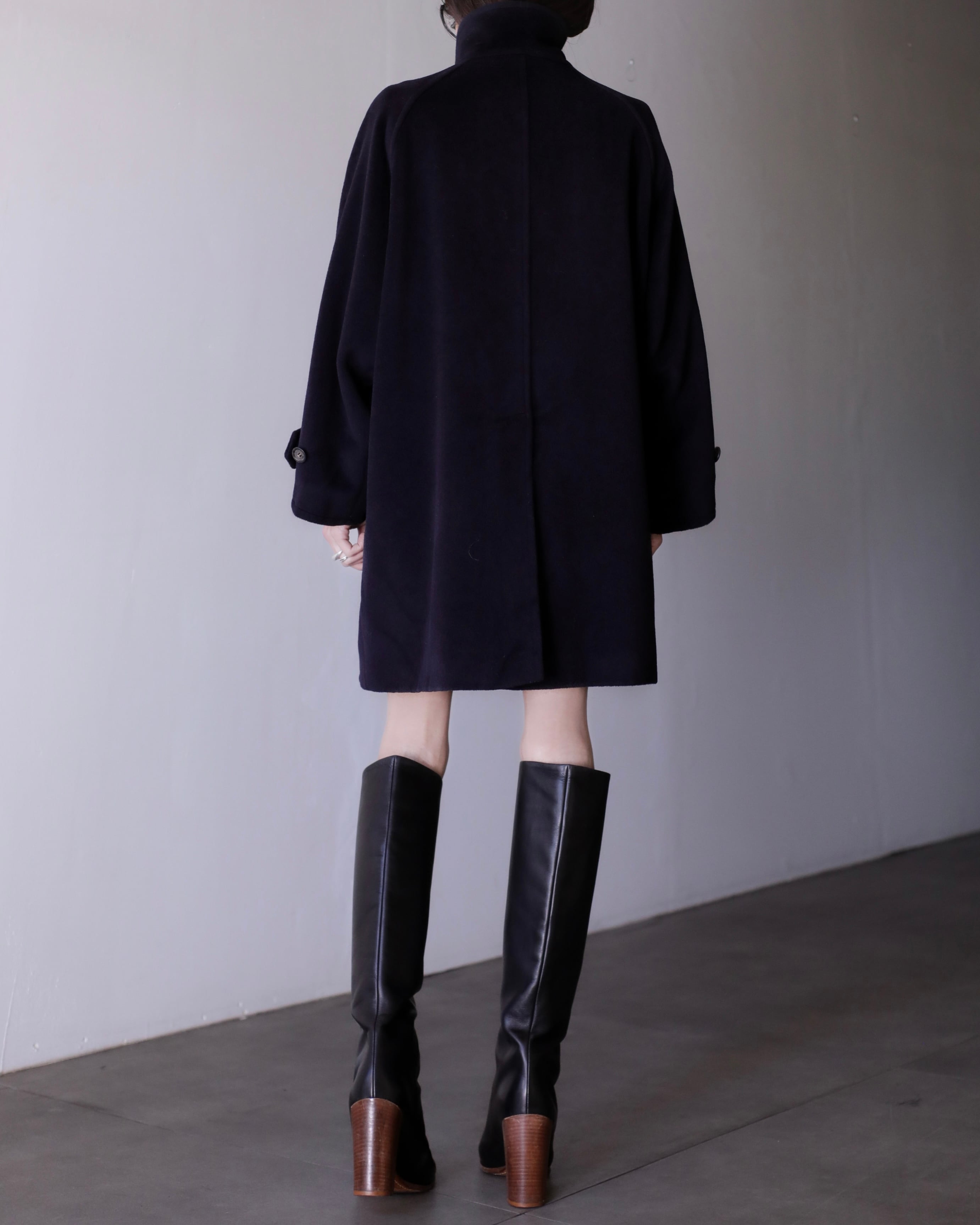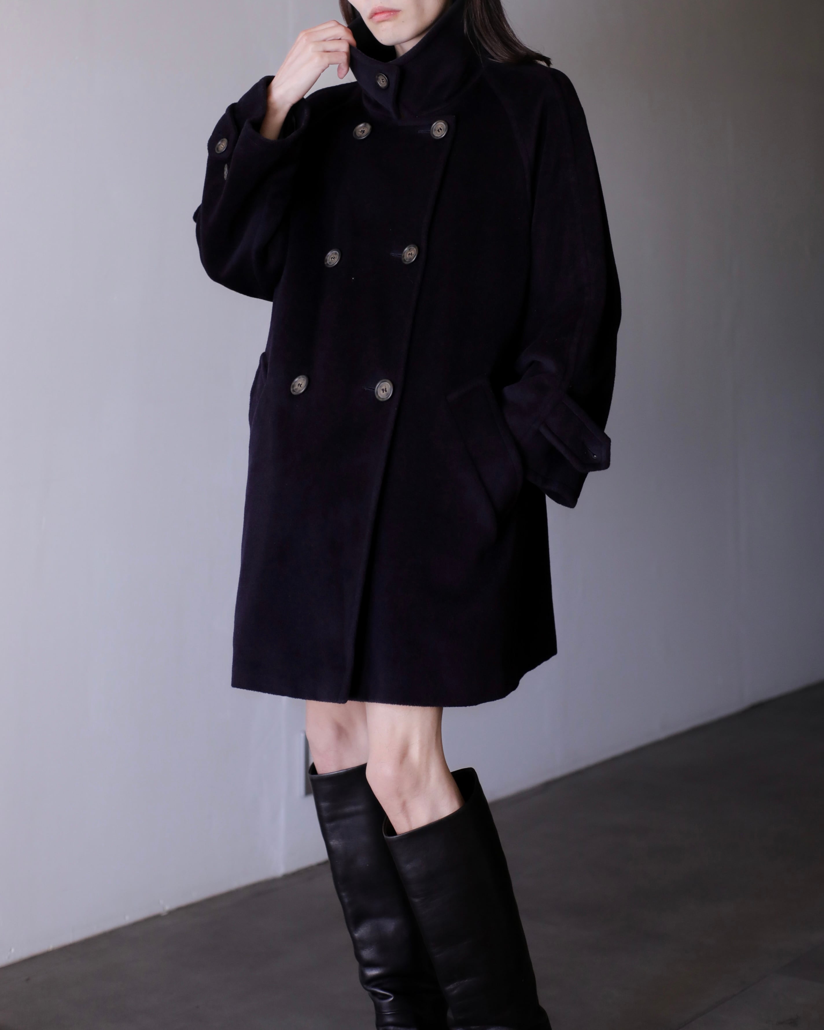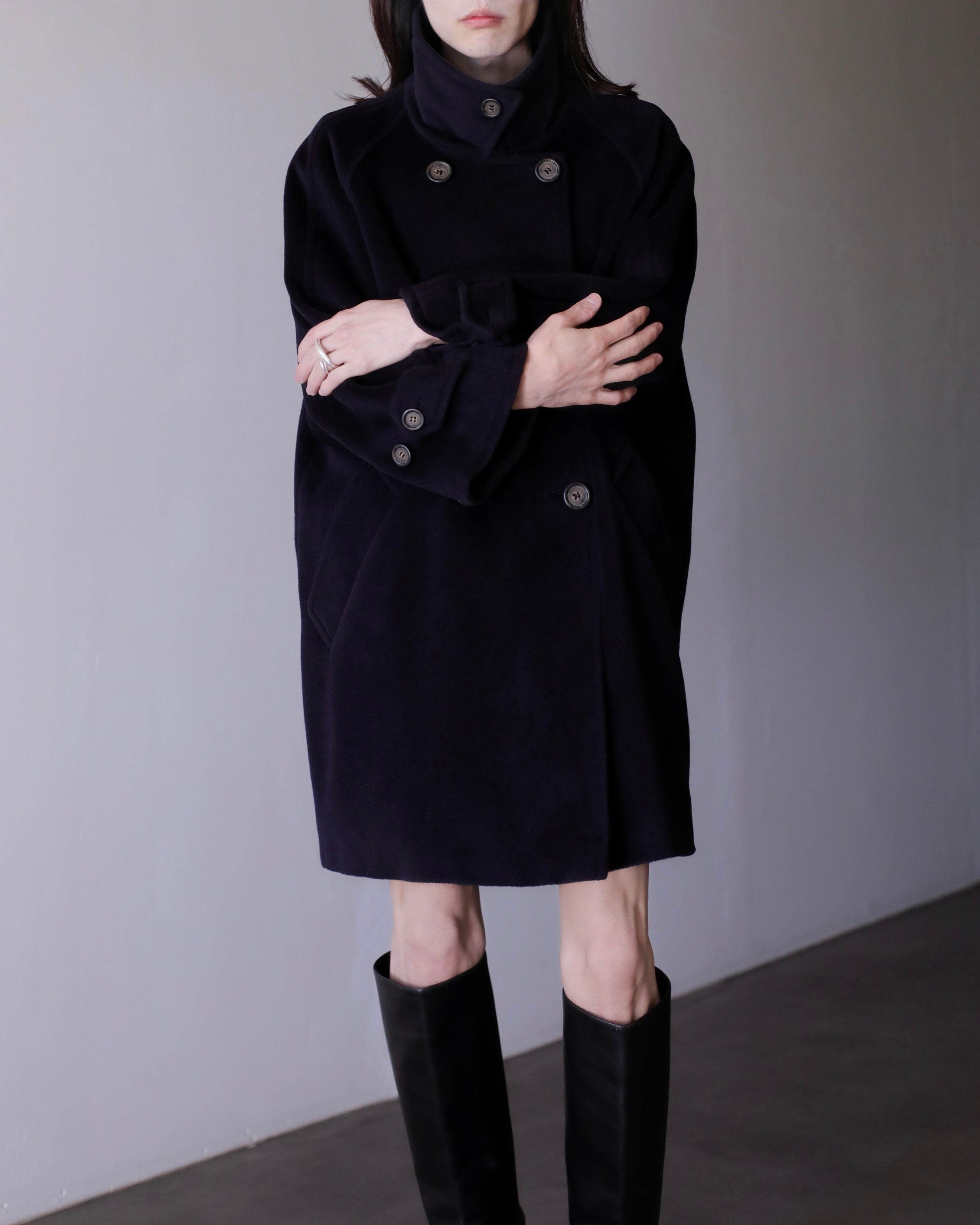 1990s Max Mara virgin wool fabric stand collar double breasted wide sleeve coat Made In Italy