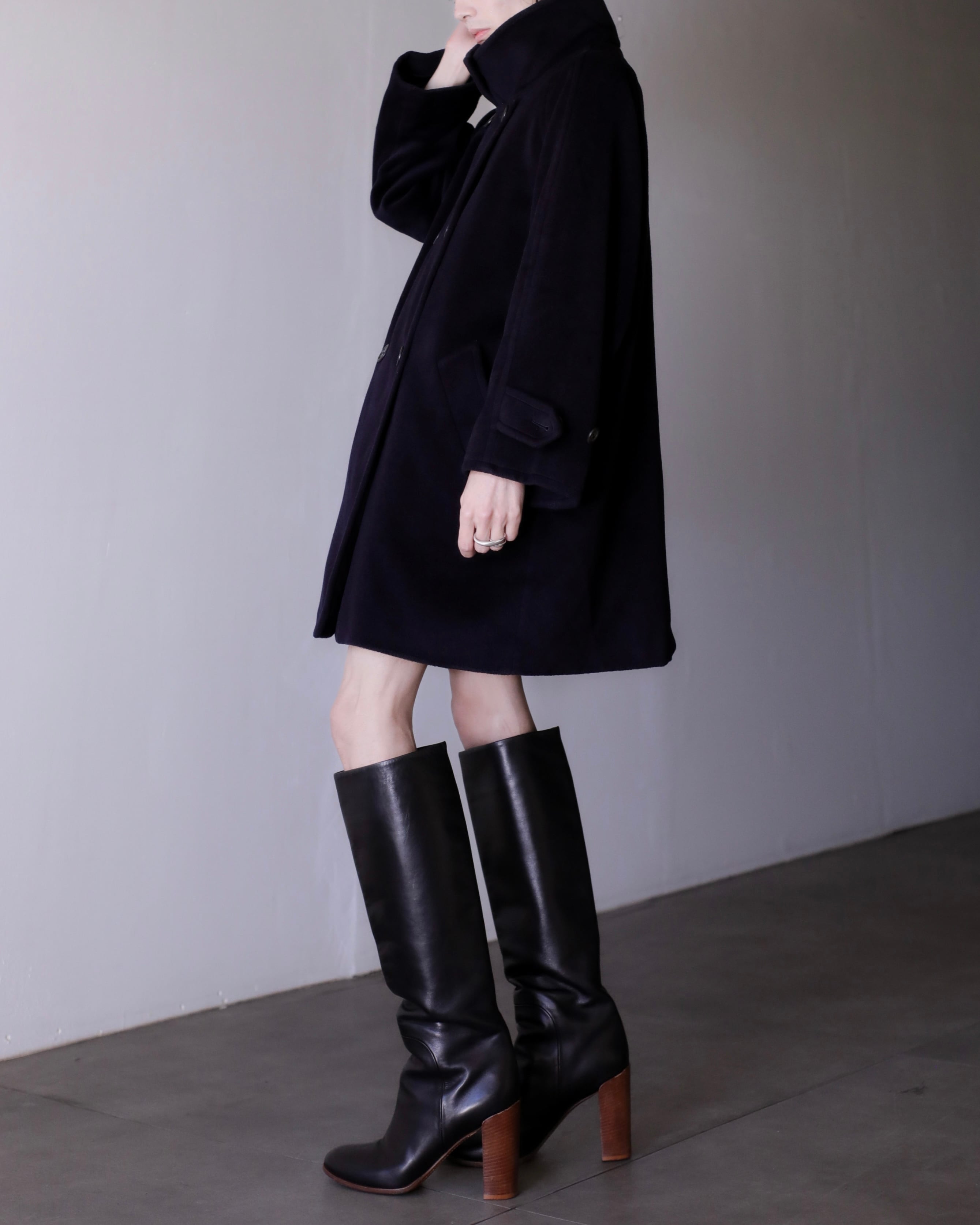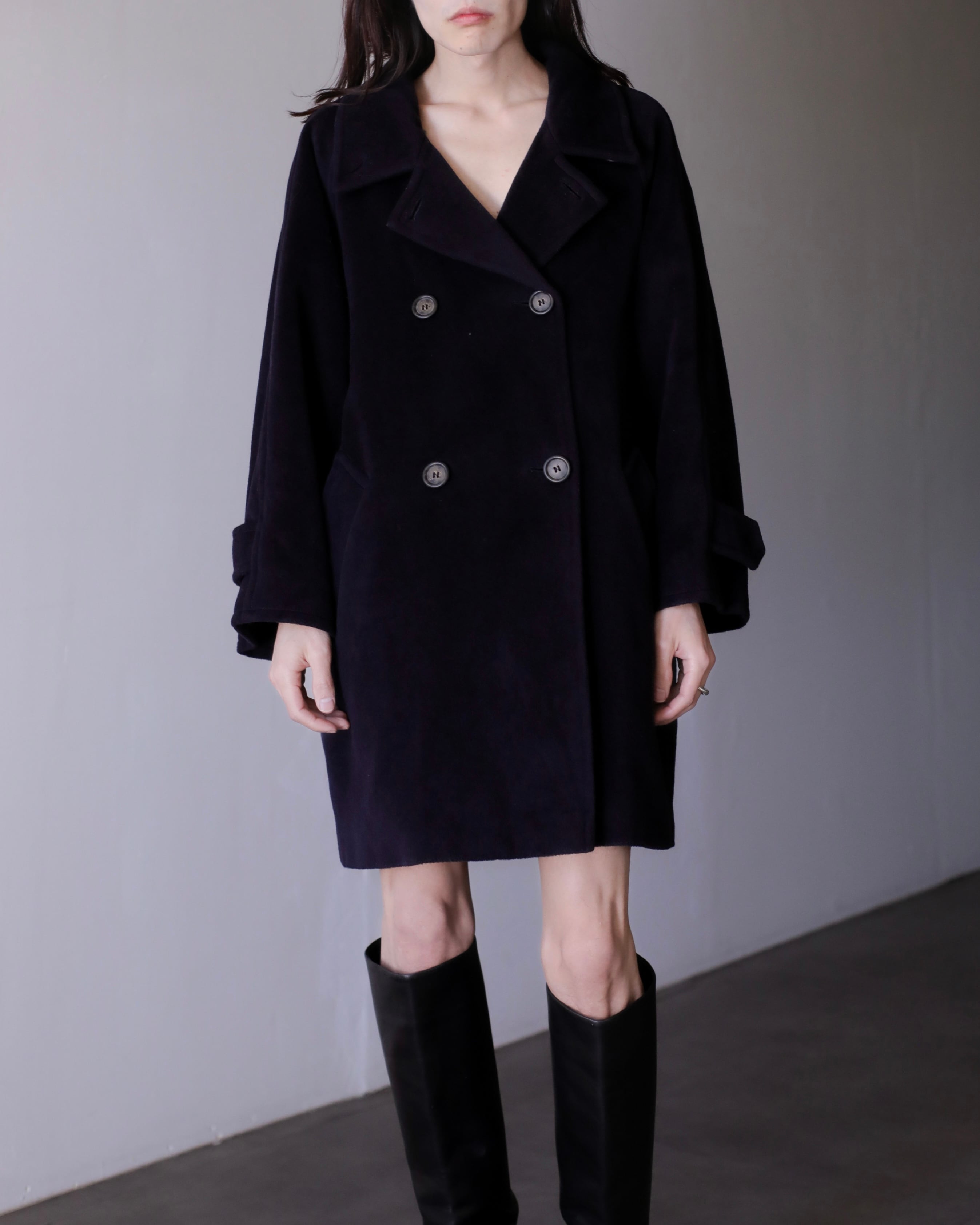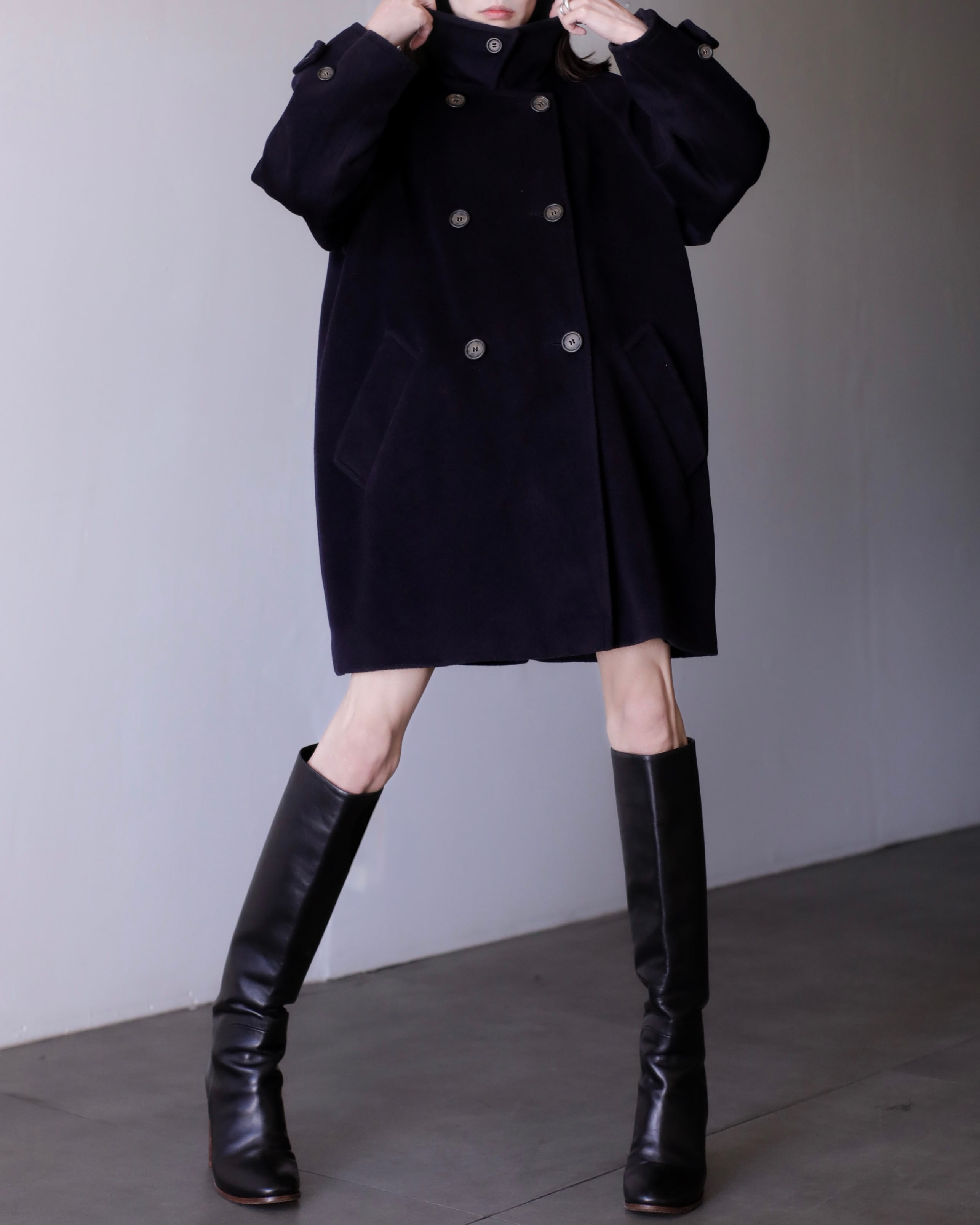 1990s Max Mara virgin wool fabric stand collar double breasted wide sleeve coat Made In Italy