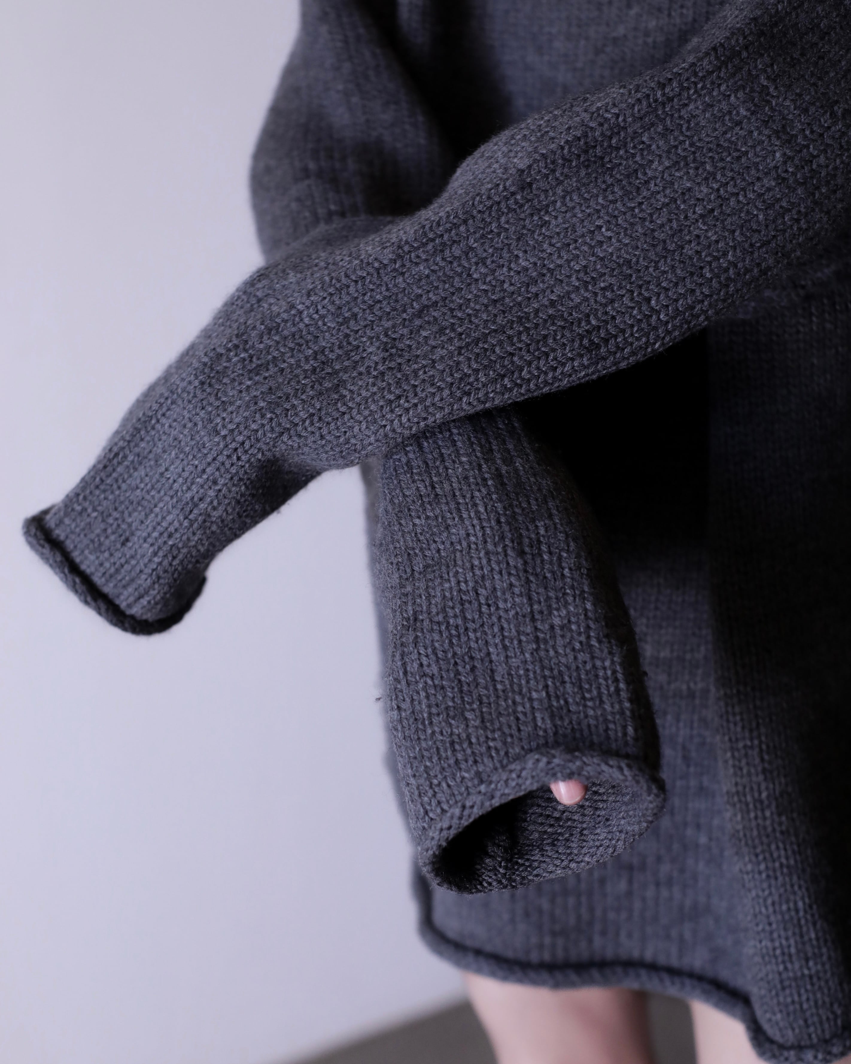 その高めのネックからくるんとロールするネックが本当に可愛いです。ネックだけでなく此方は袖口や裾もロールしていてもう完璧です。。。