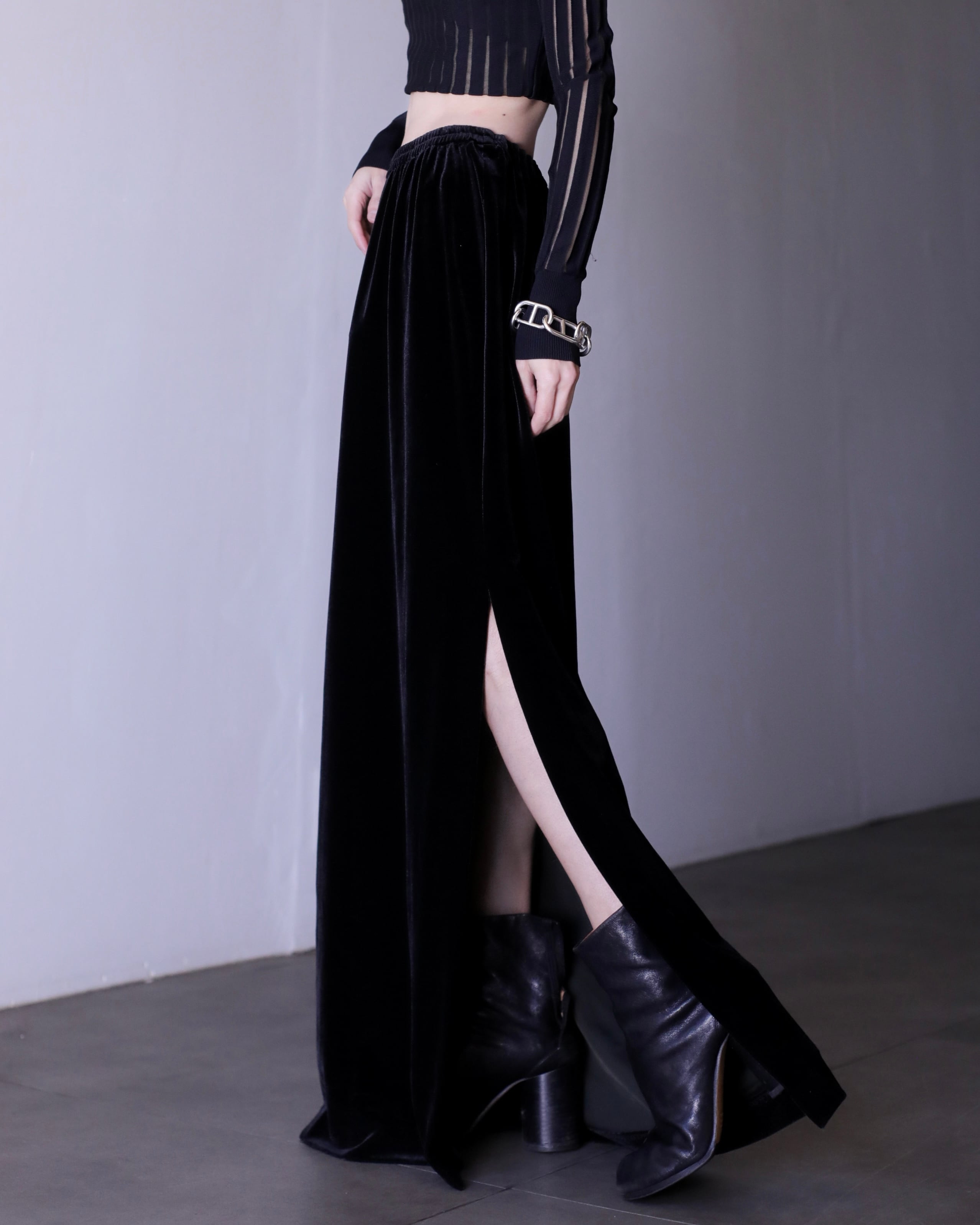 1980s velours side slit design maxi length skirt Made In USA
