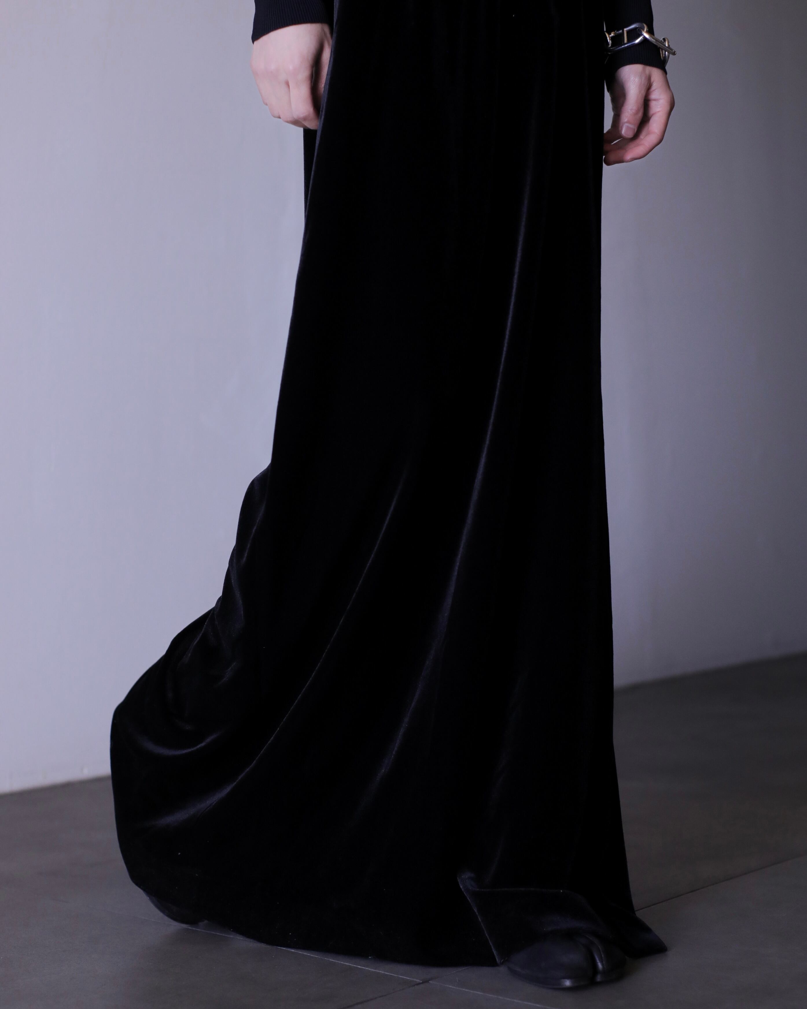 光沢感のある深いブラックカラーがベロアらしいです。ベロアの黒って他の黒とは別物だと思っていてこの感じの黒がモードで昔から好きなのです。
