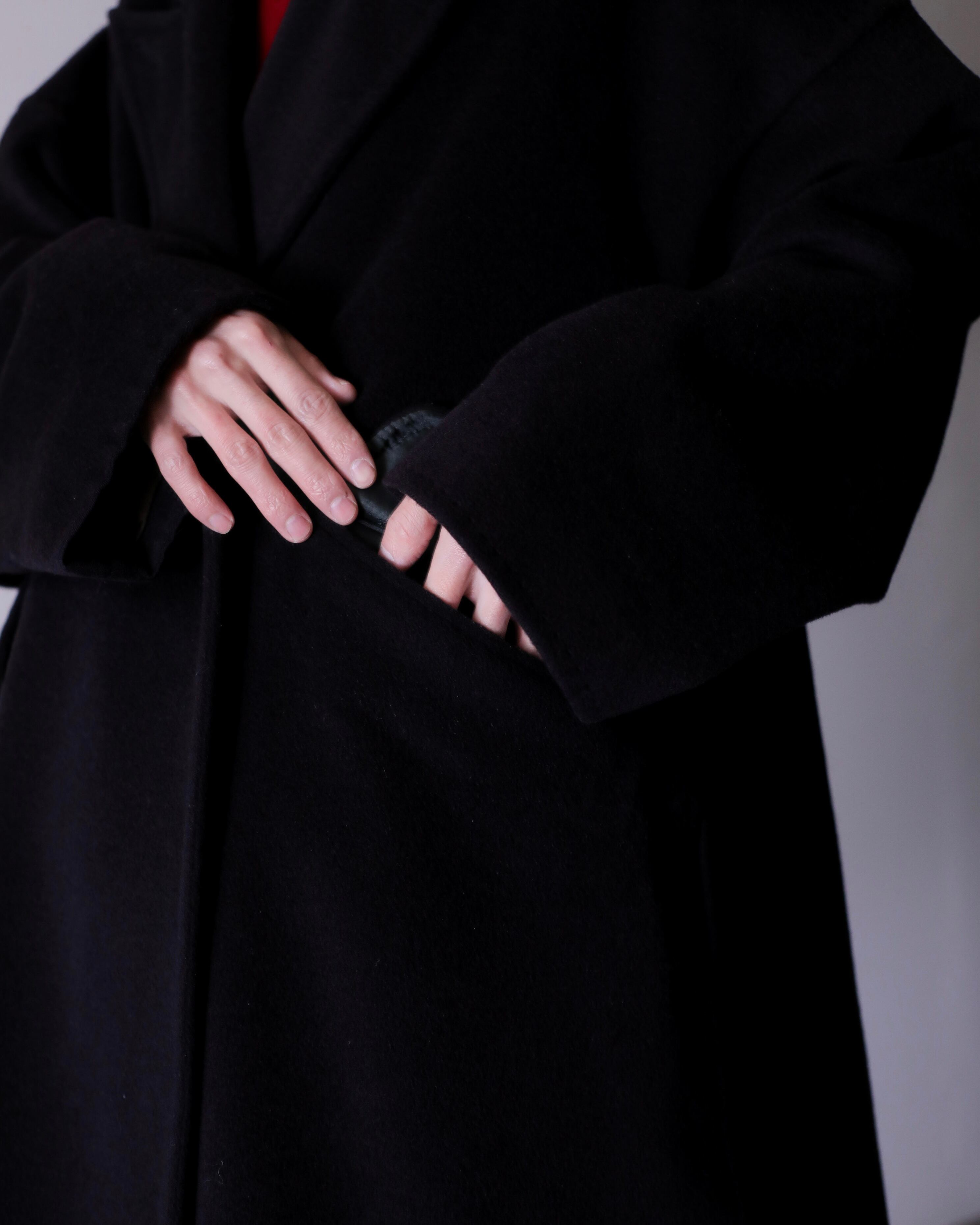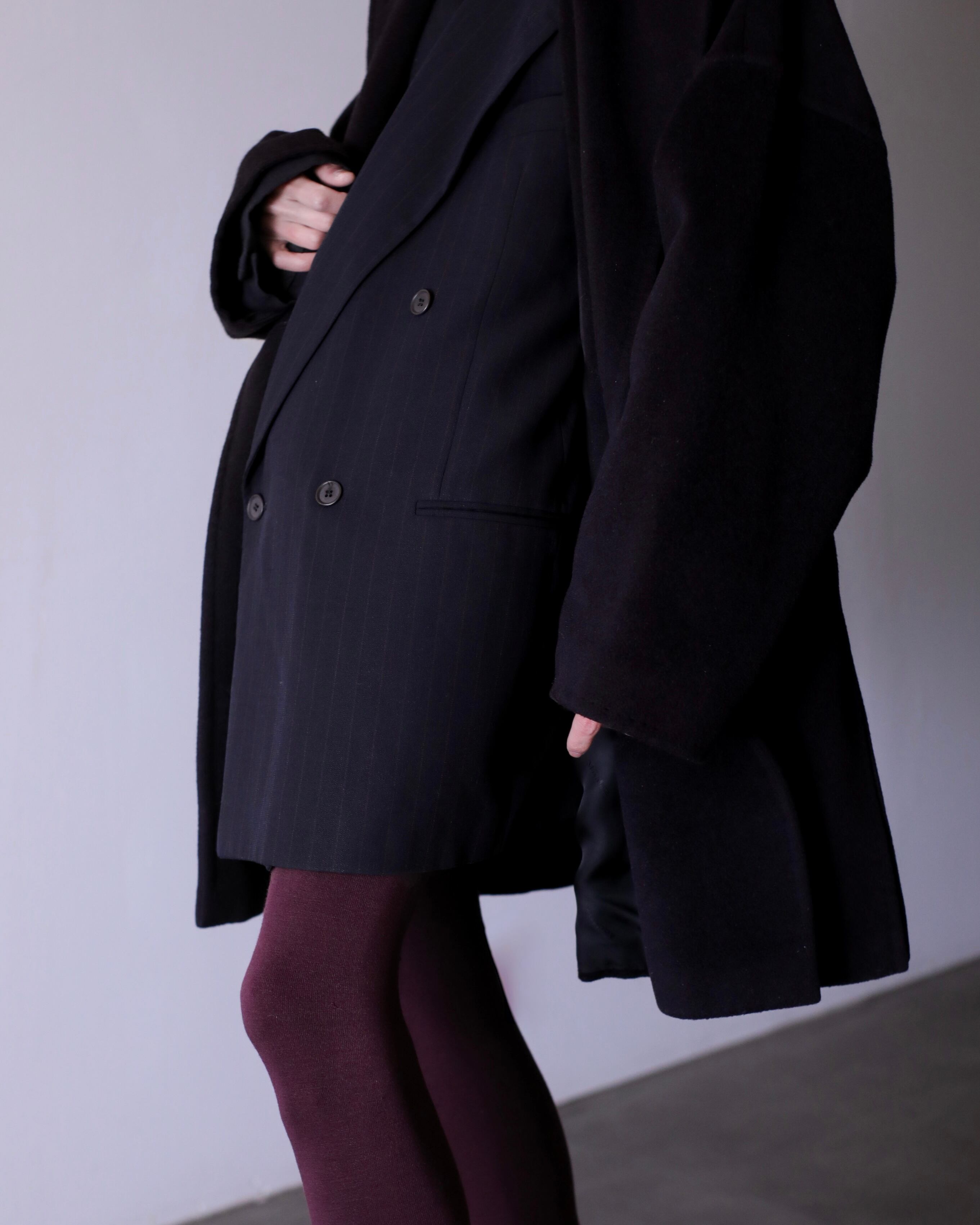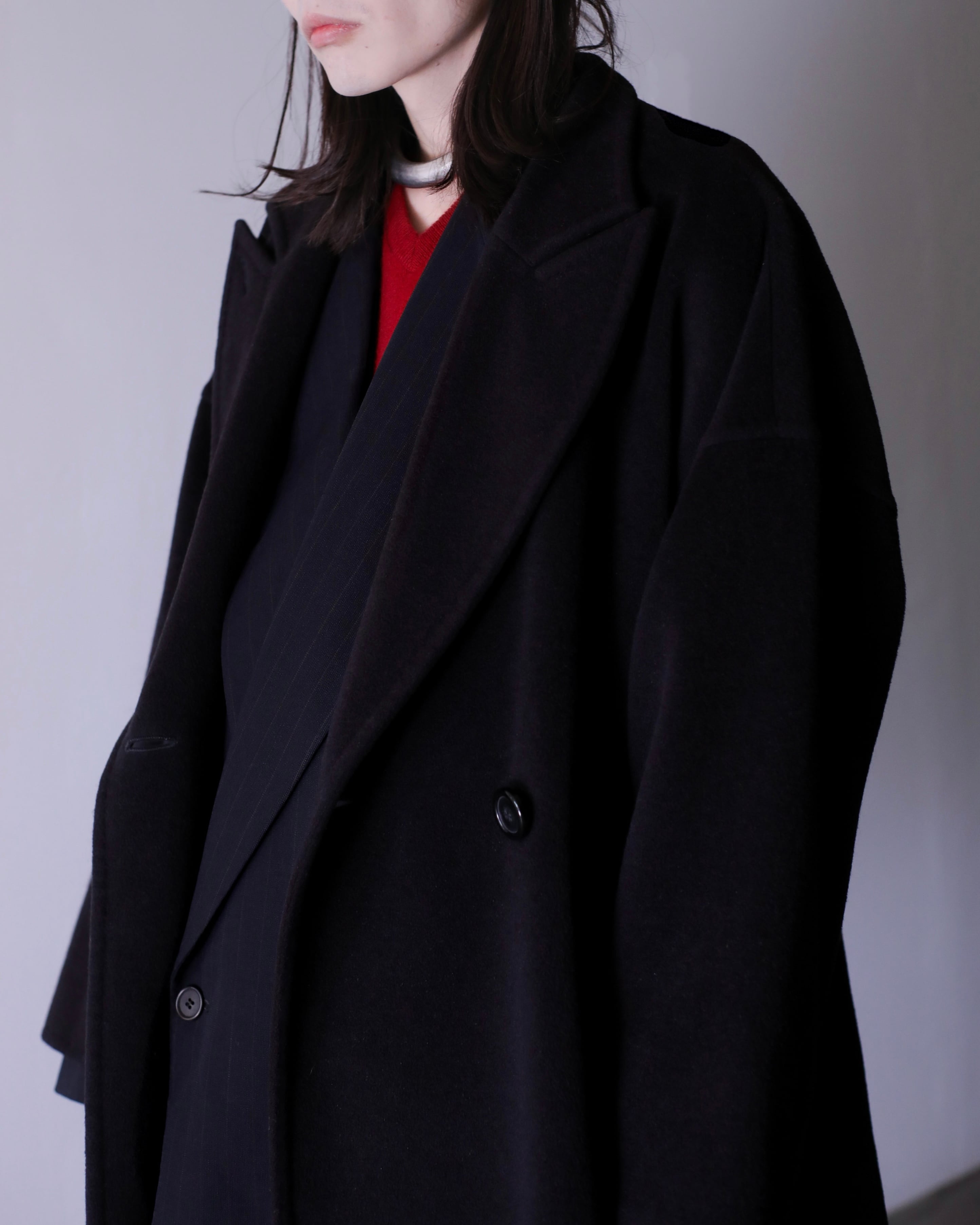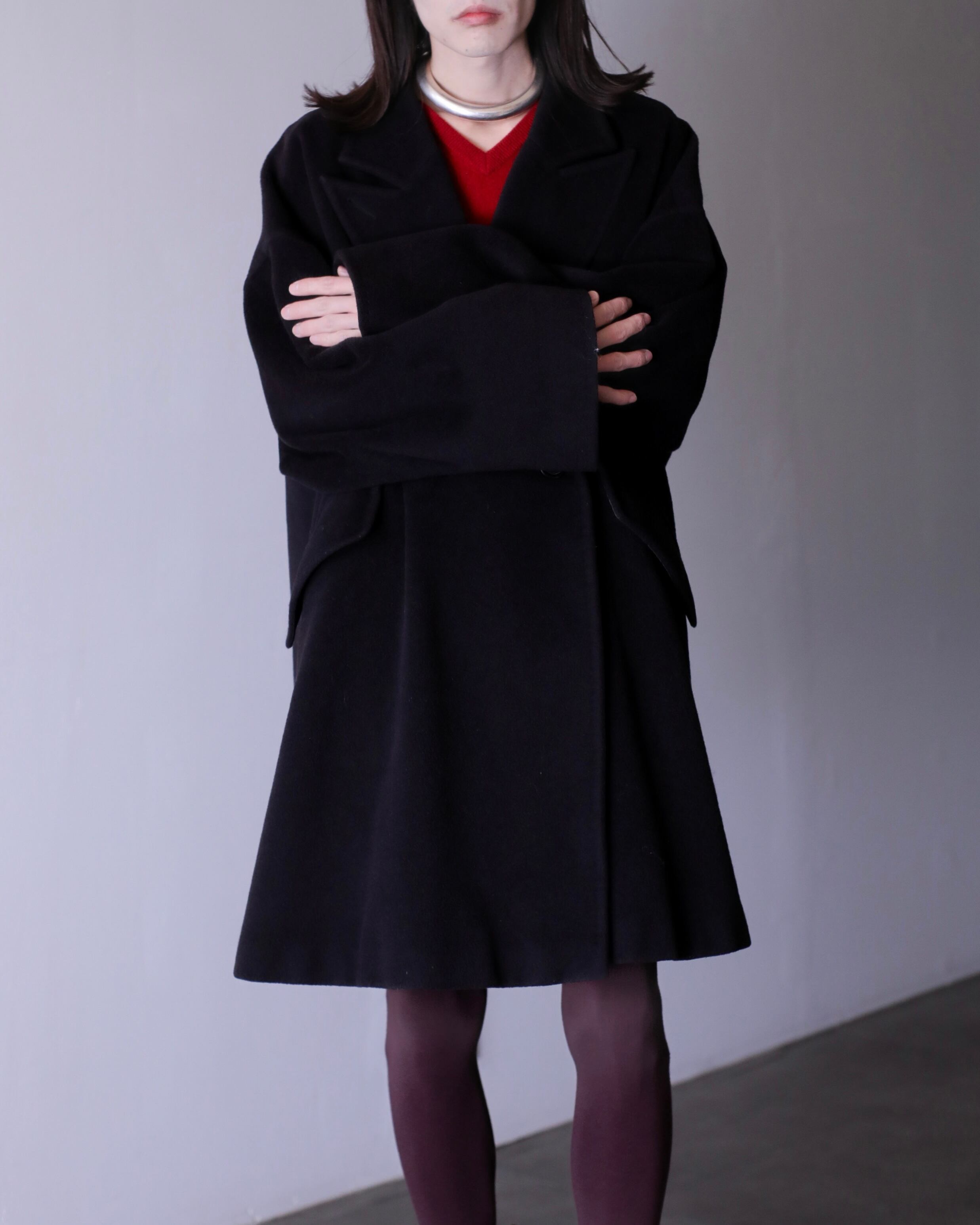 写真のように大きなジャケットを中に仕込んでも全く着膨れない思いつく限りの一番美しいと思えるオーバーシルエットだと思います。