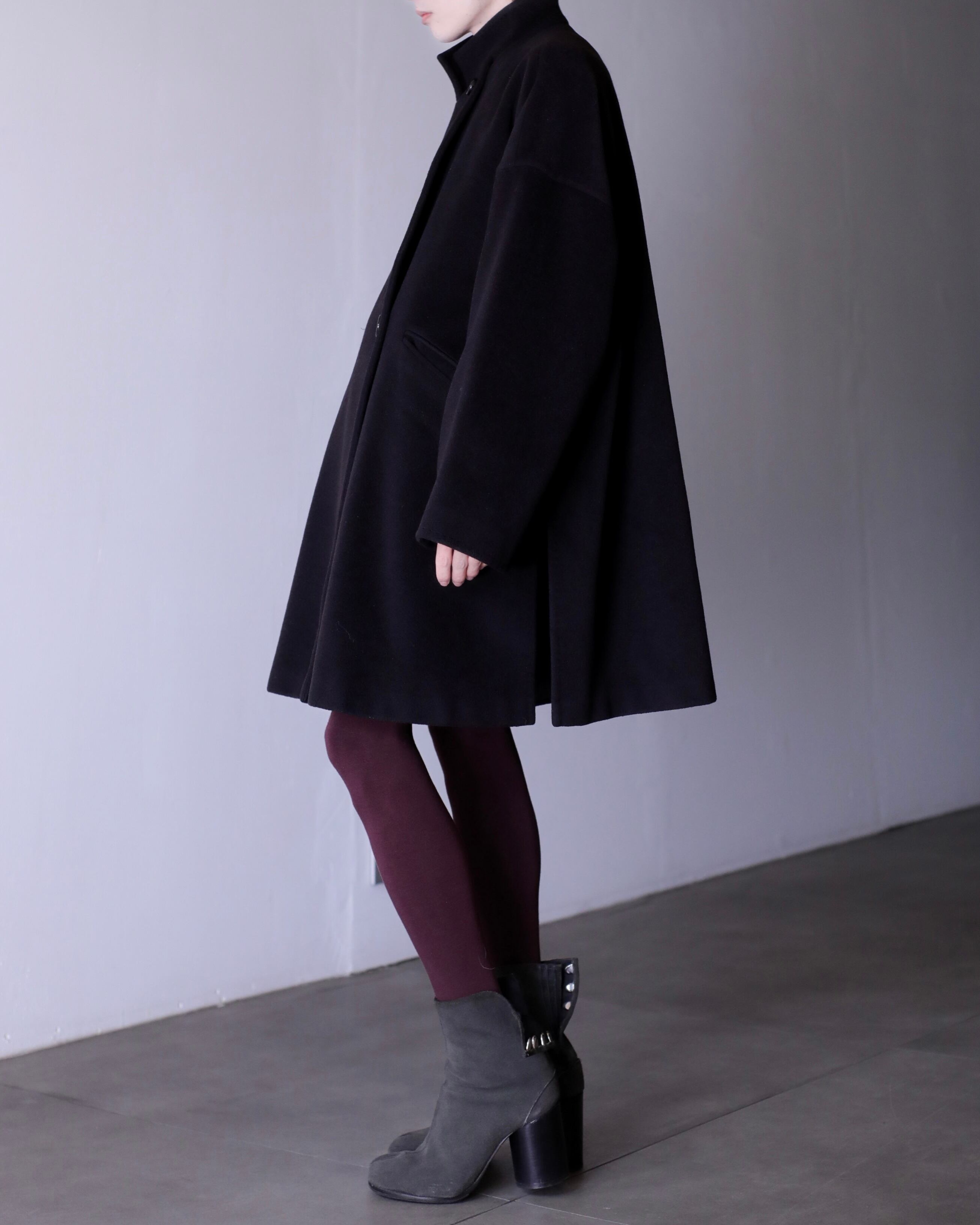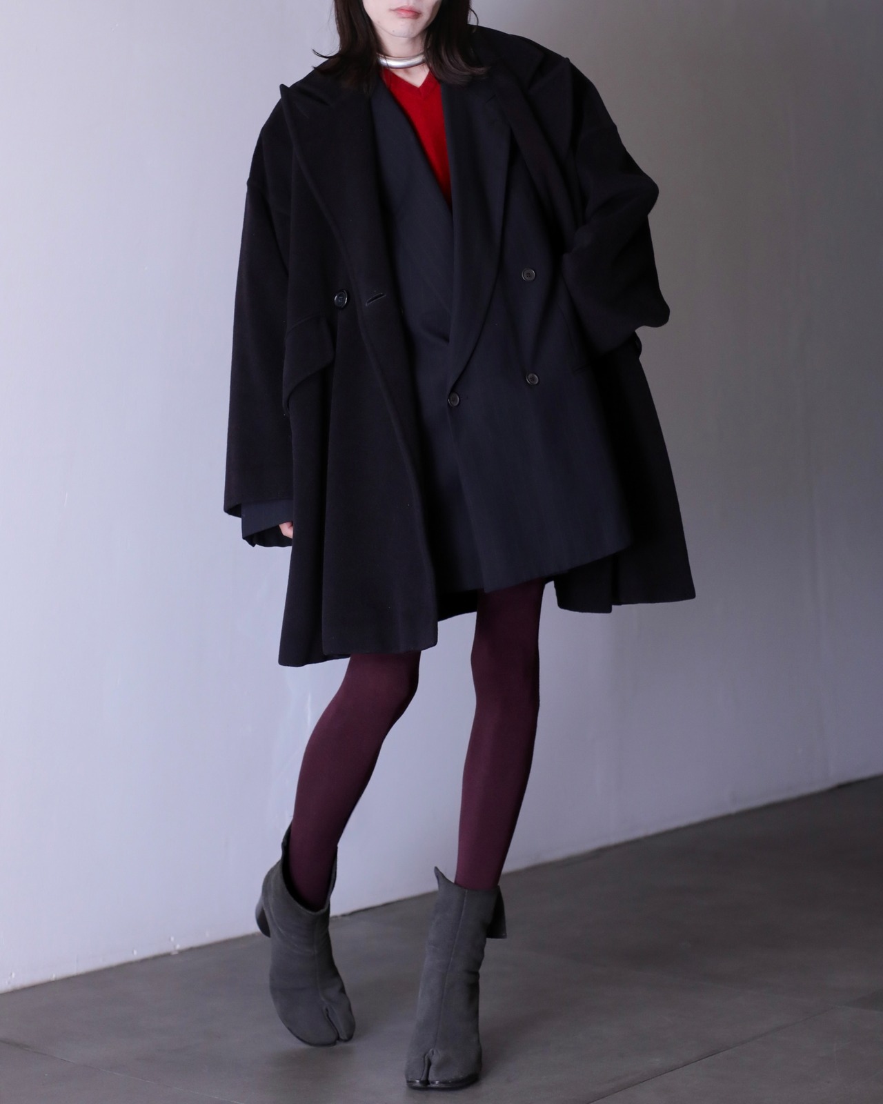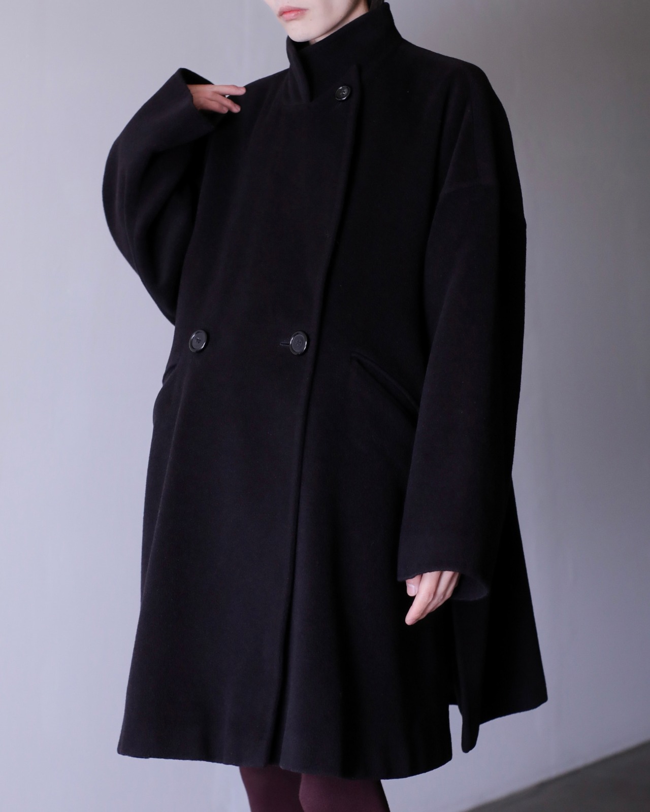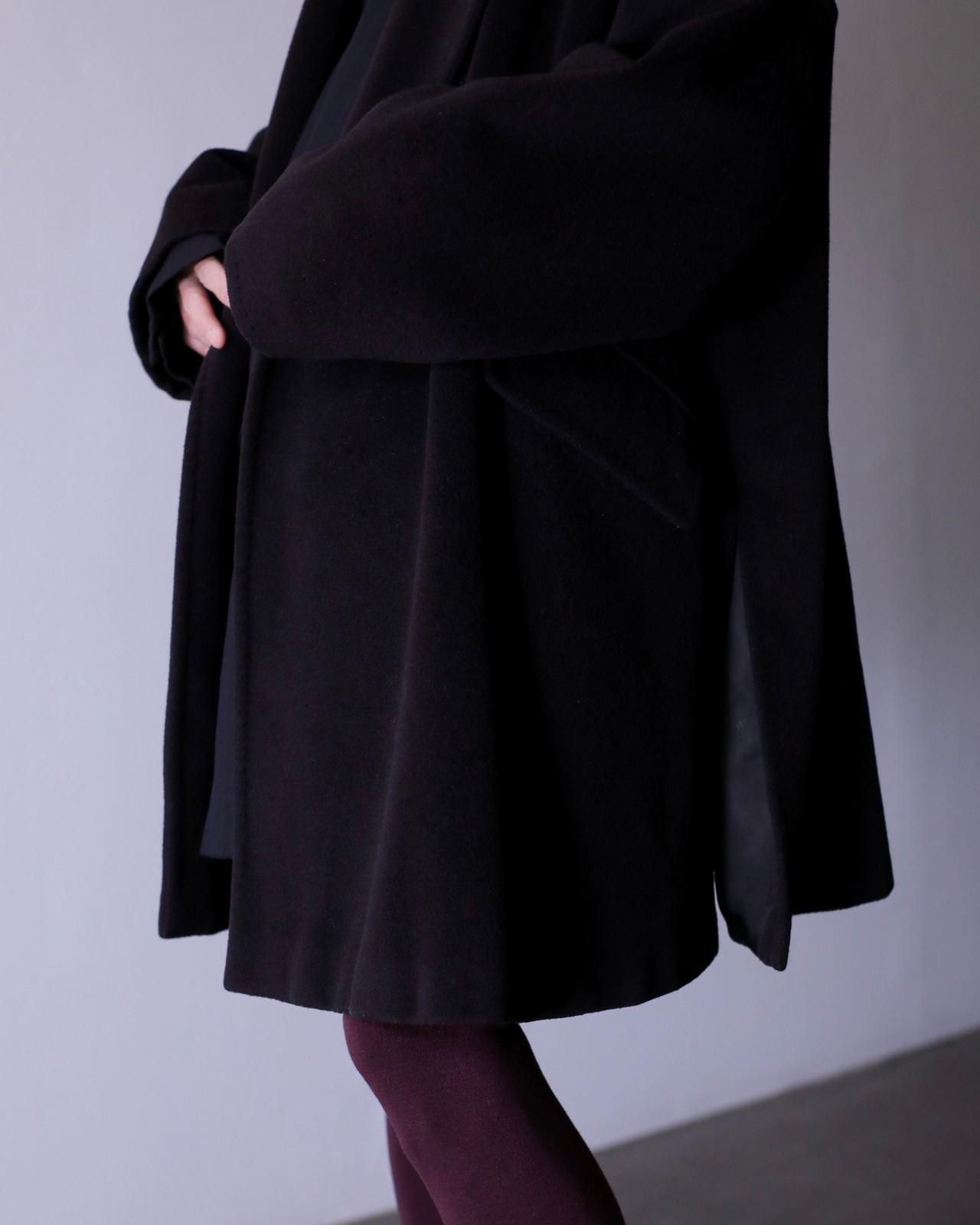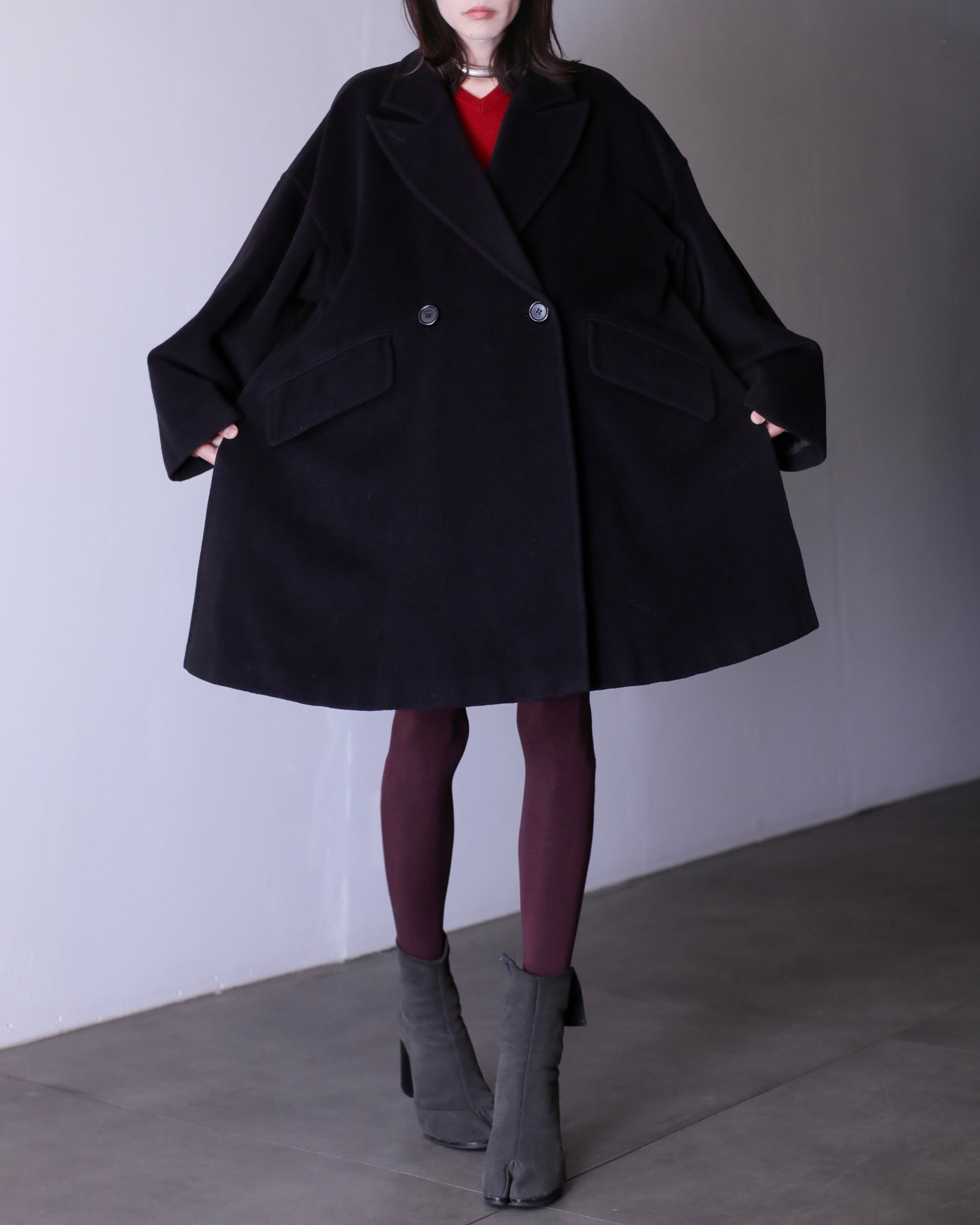 写真のように大きなジャケットを中に仕込んでも全く着膨れない思いつく限りの一番美しいと思えるオーバーシルエットだと思います。