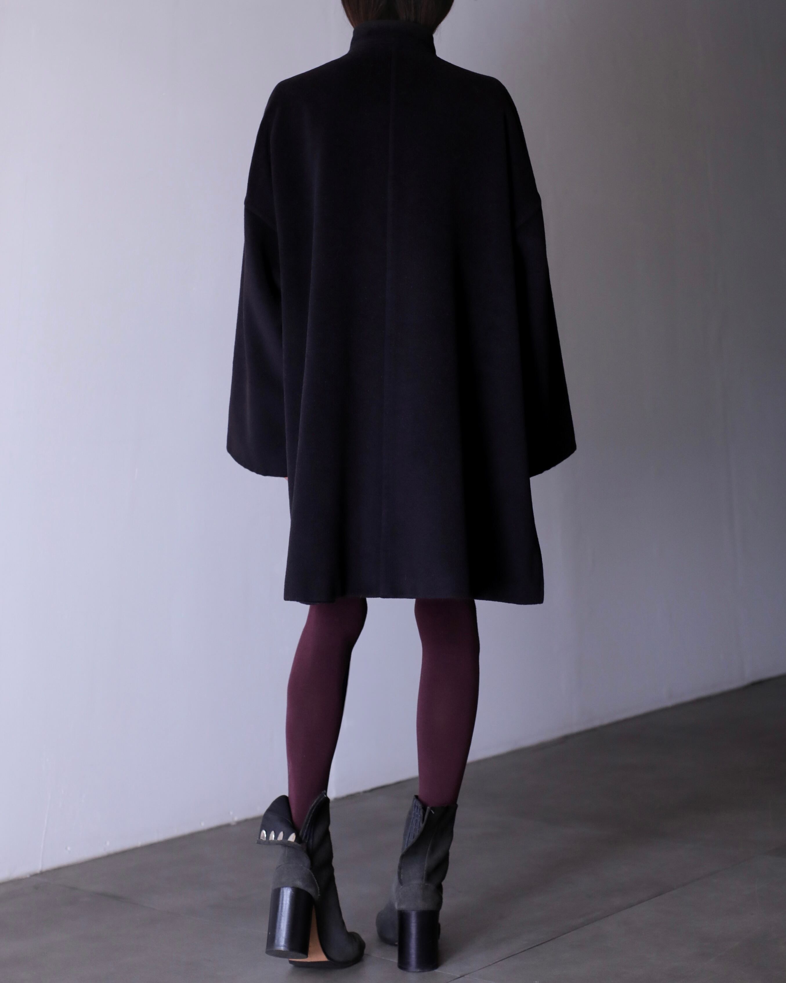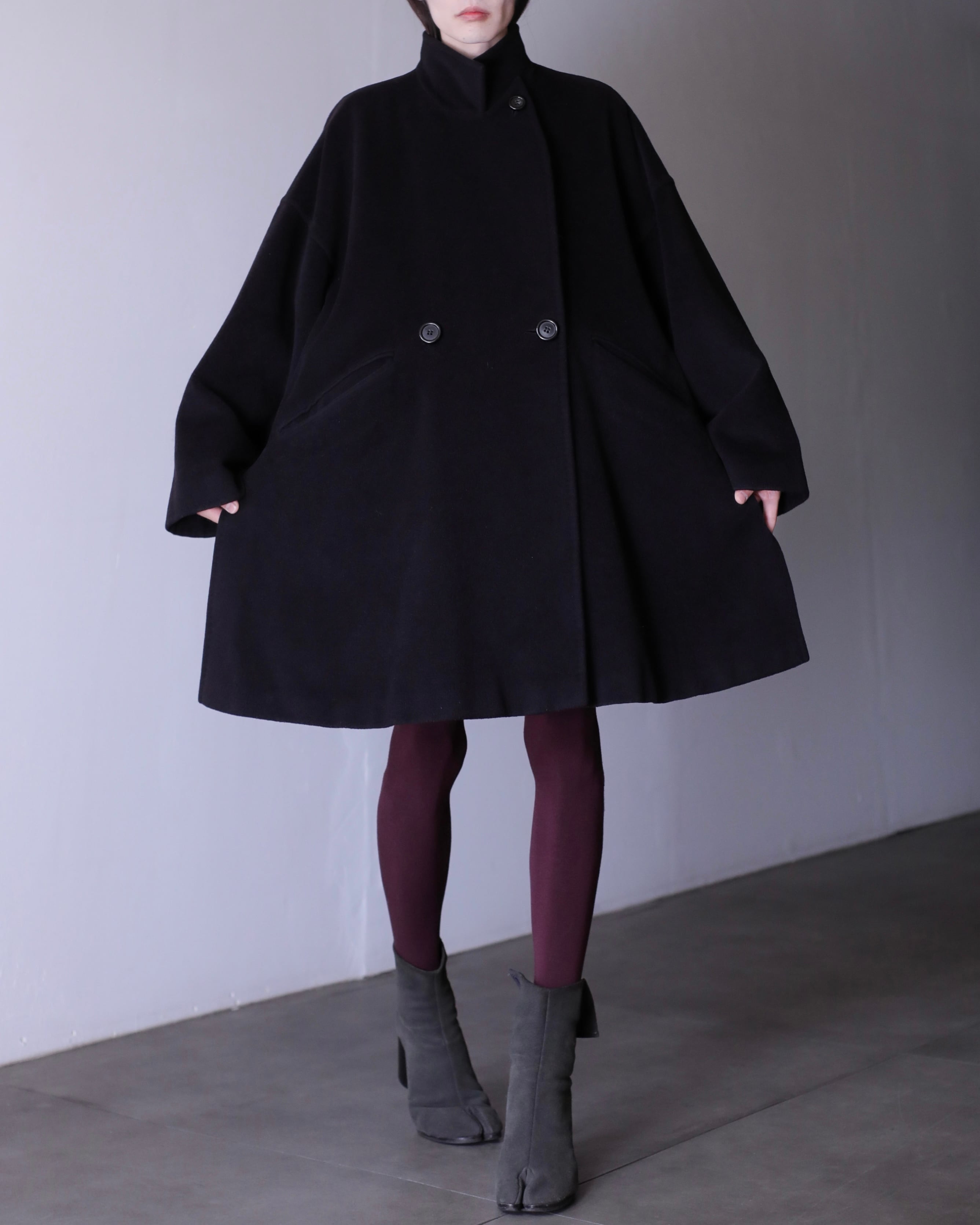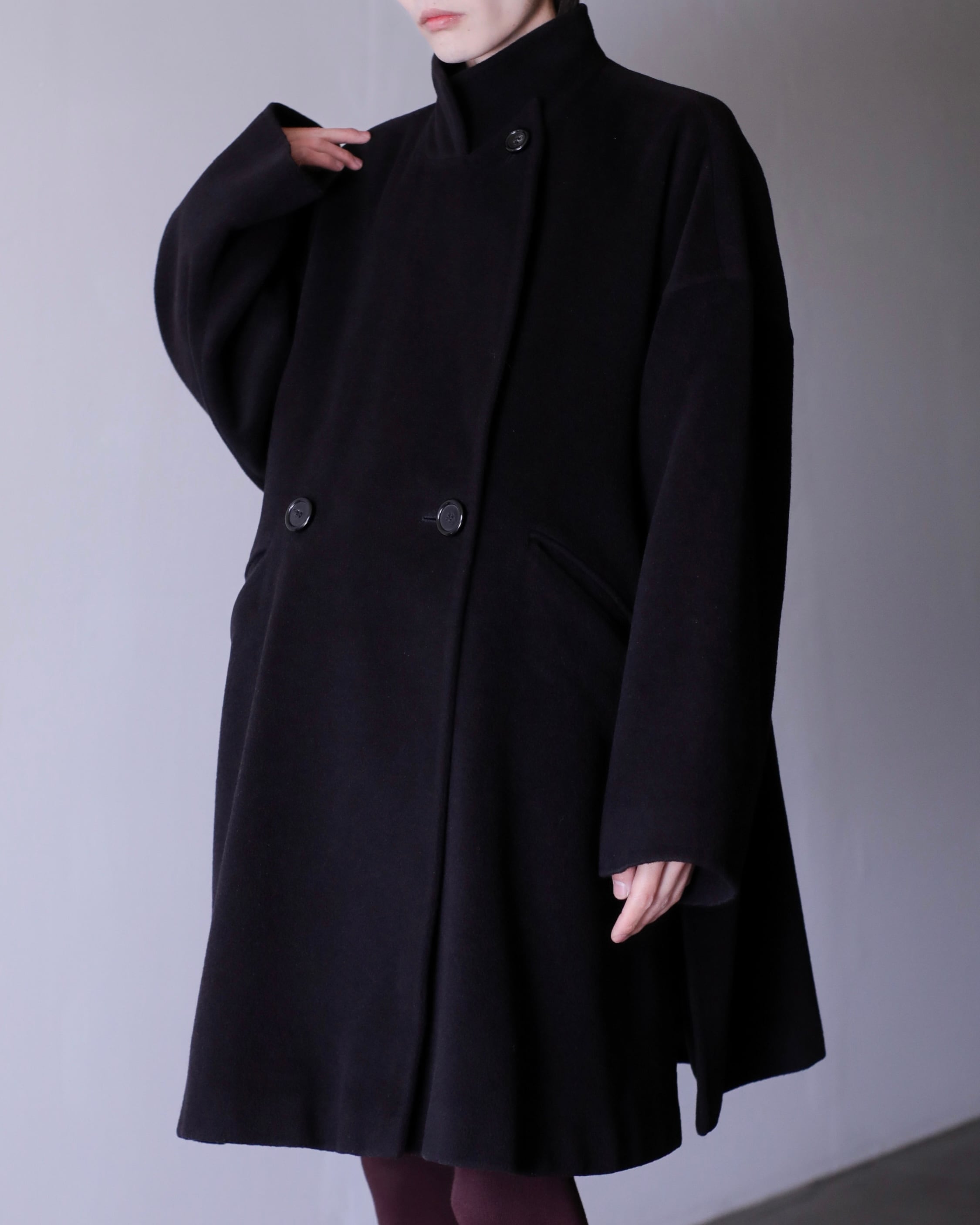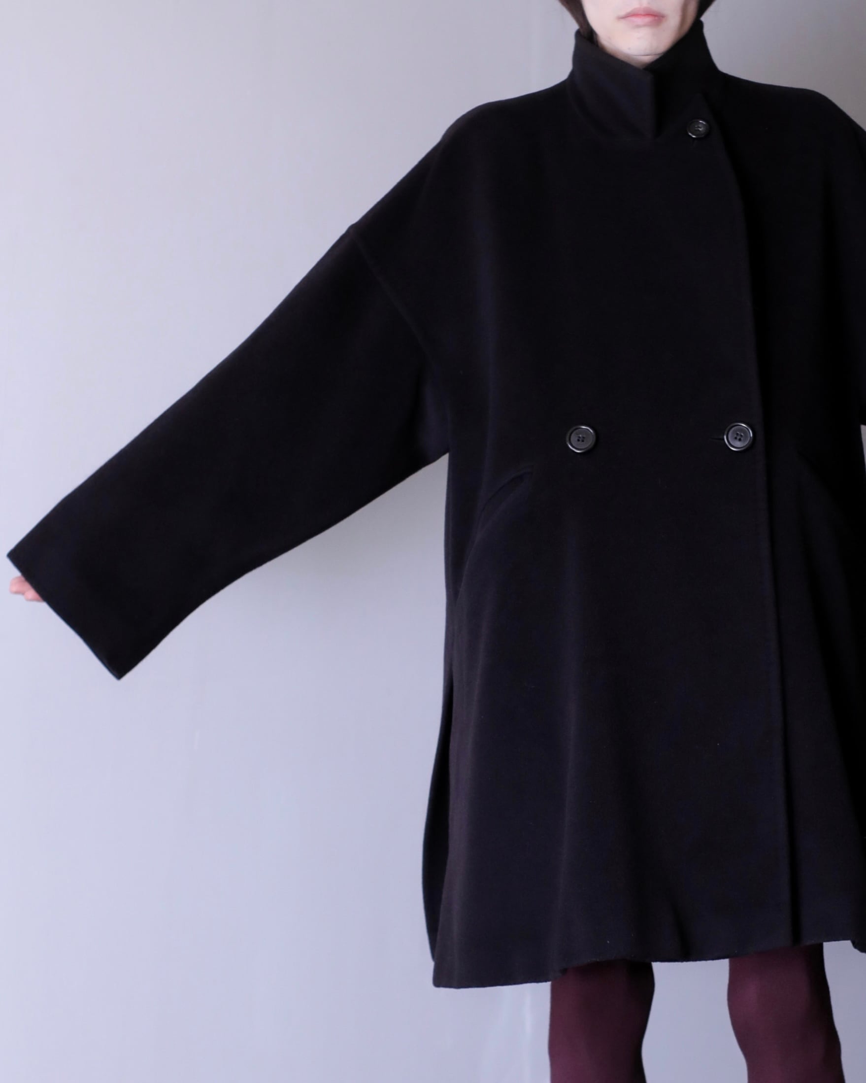 1990s Max Mara "shirotag" cashmere mix stand collar kimono sleeve double breasted over coat Made In Italy