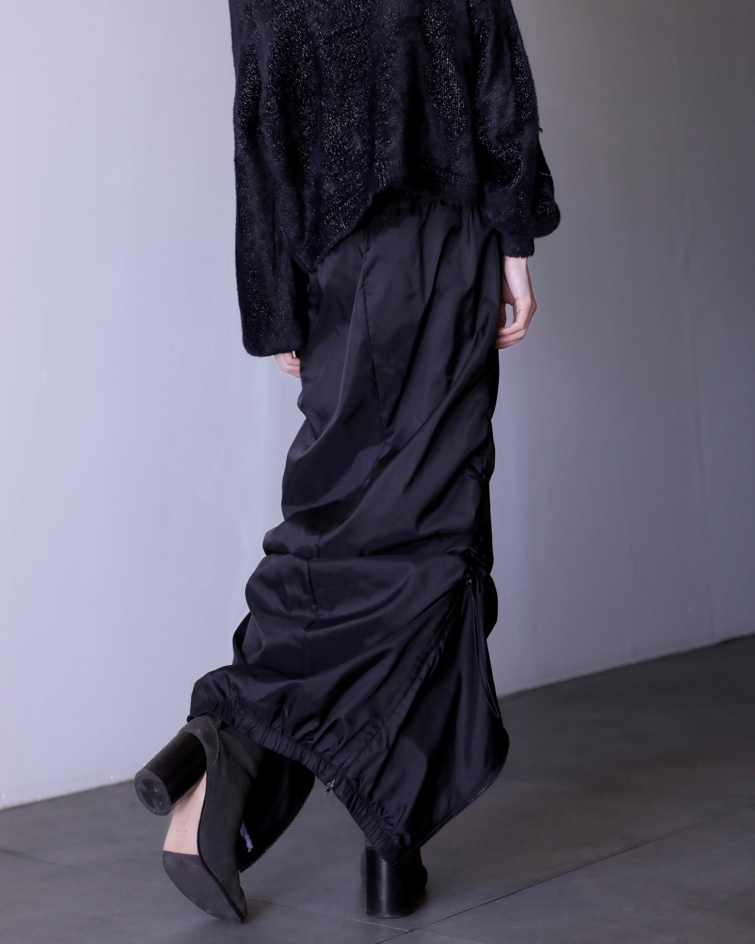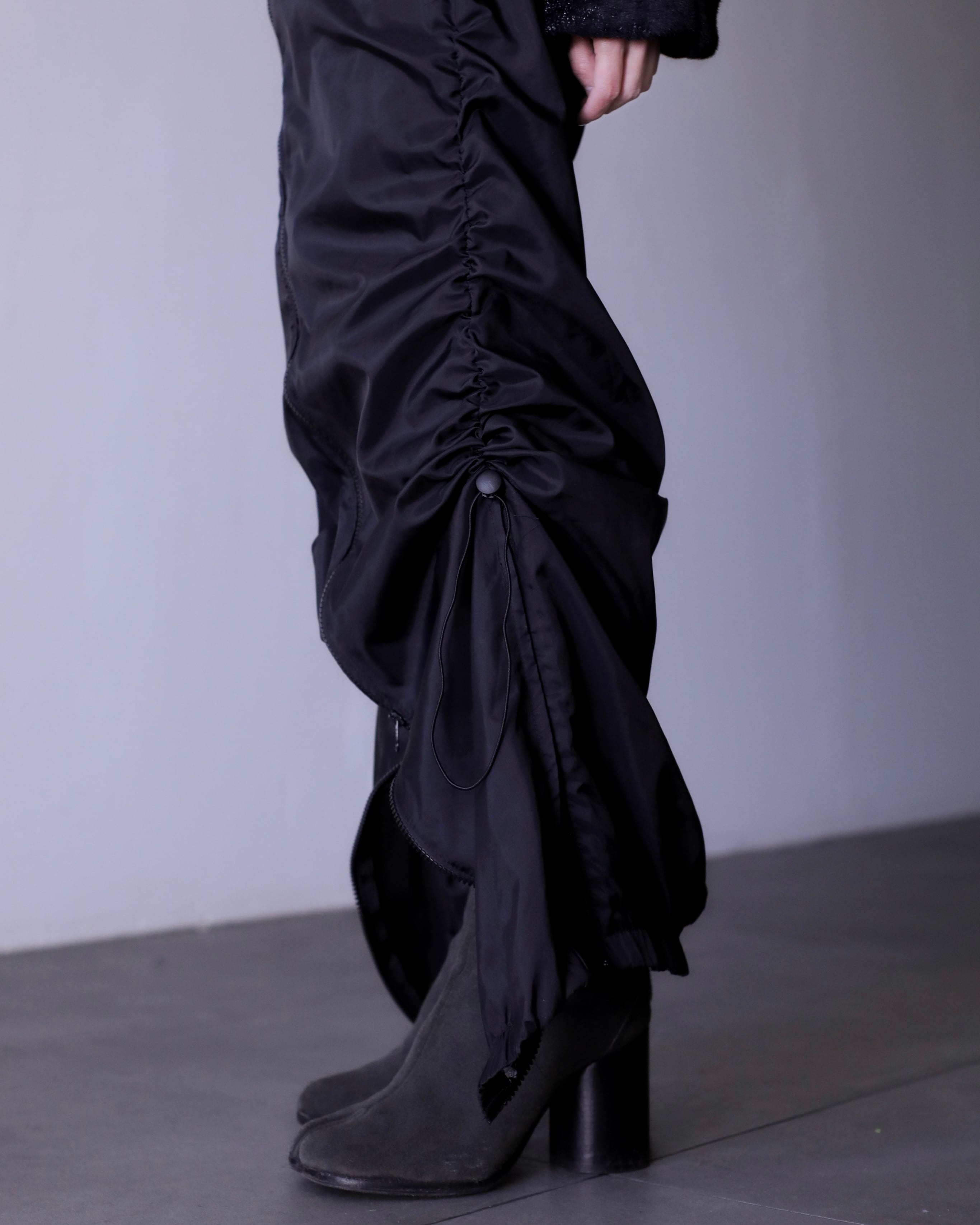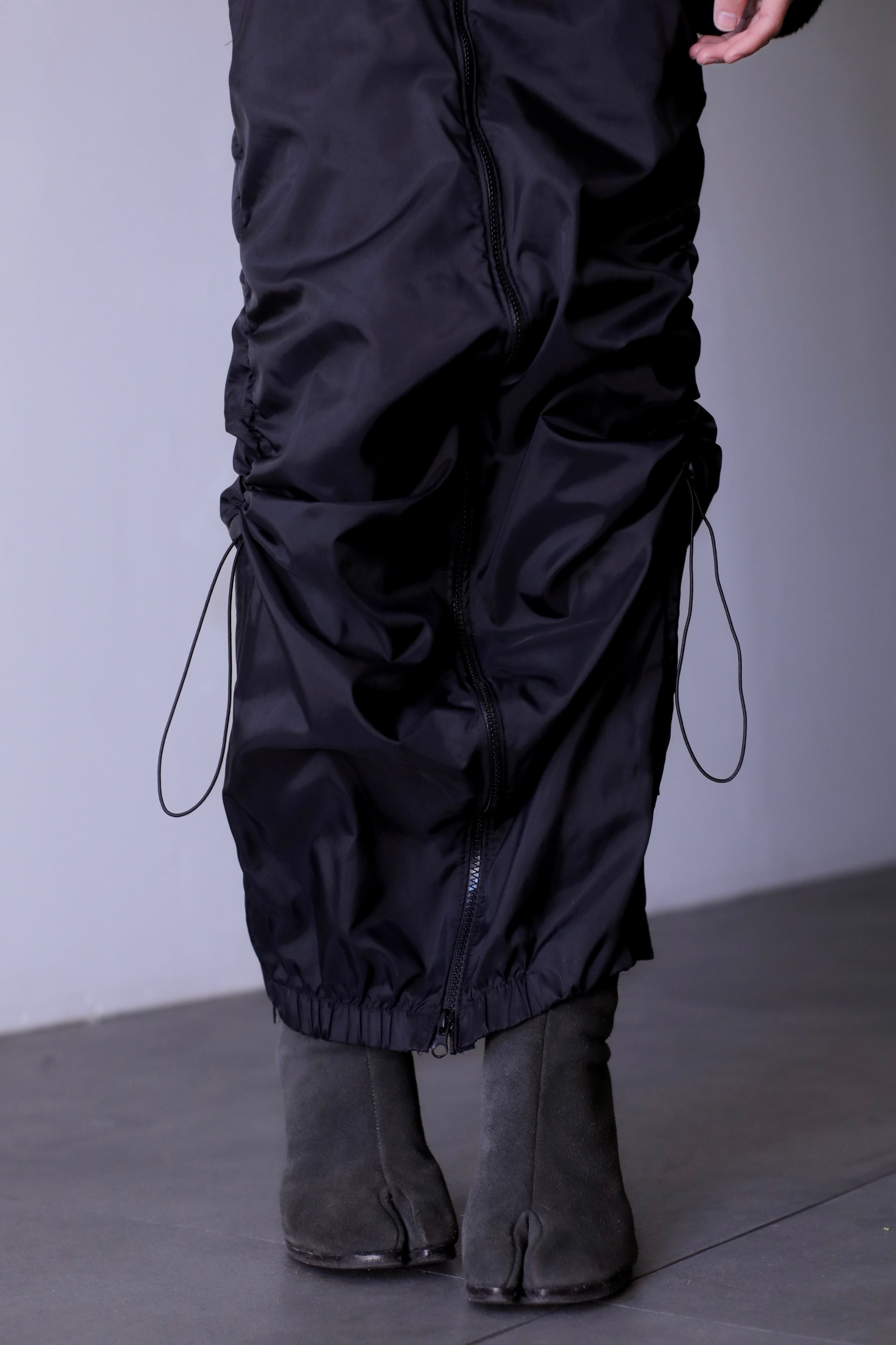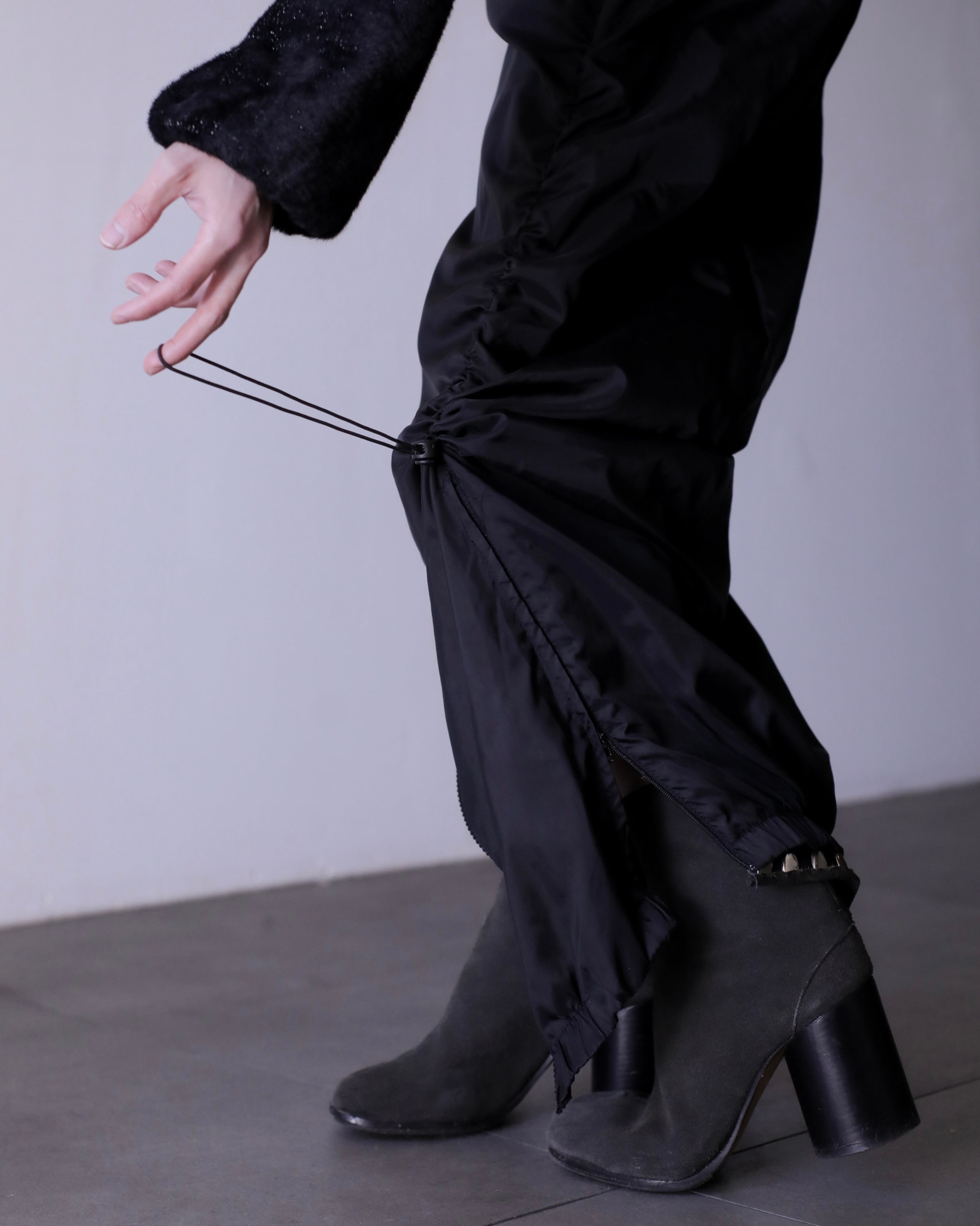 両サイド裾にドローコードが仕込まれているディテールで裾のドローはしぼると縦にクシュクシュとしてくれてデザイン性もバッチリです。