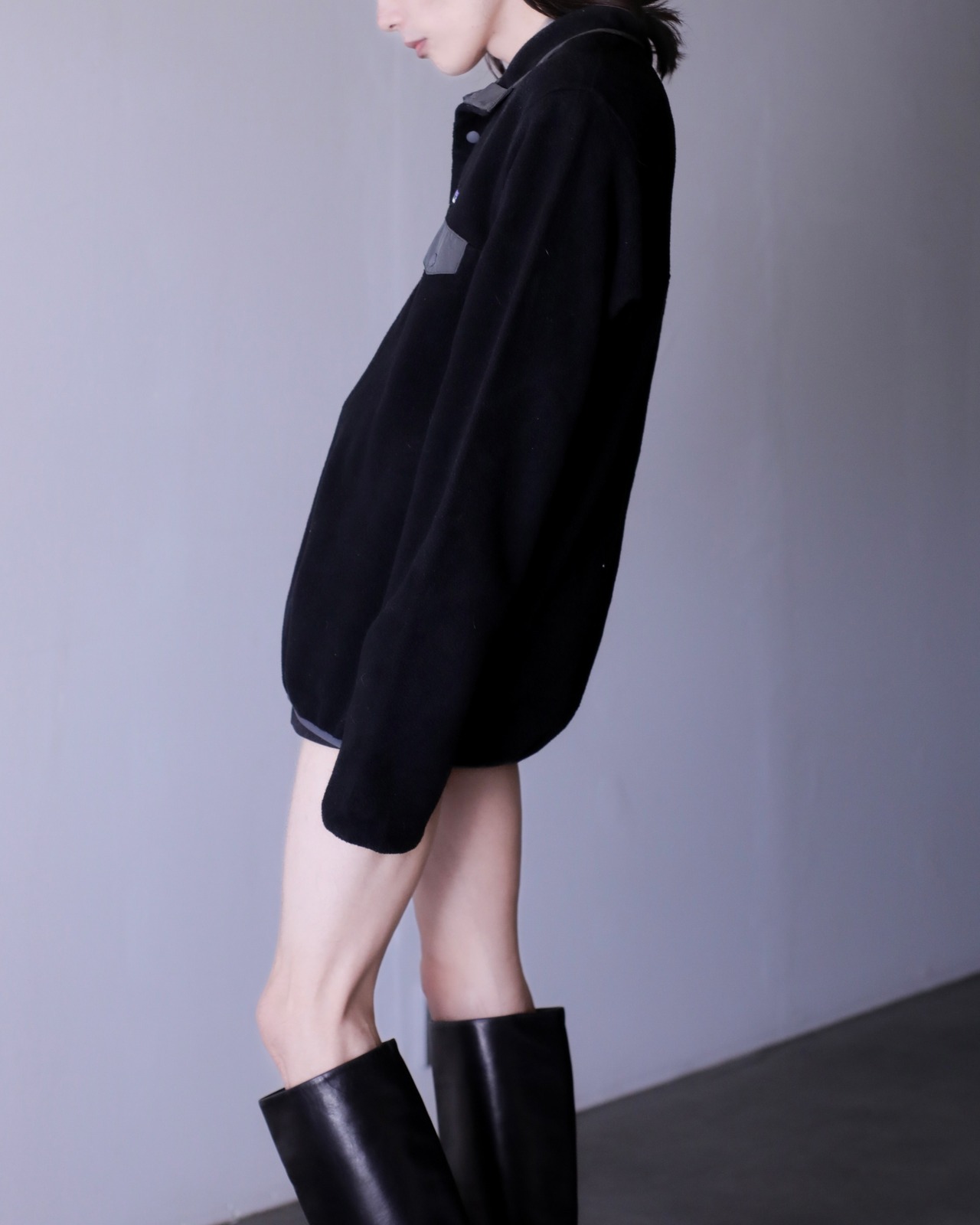 こうしてシンプルに着ると、どこかモードな雰囲気も感じられます。