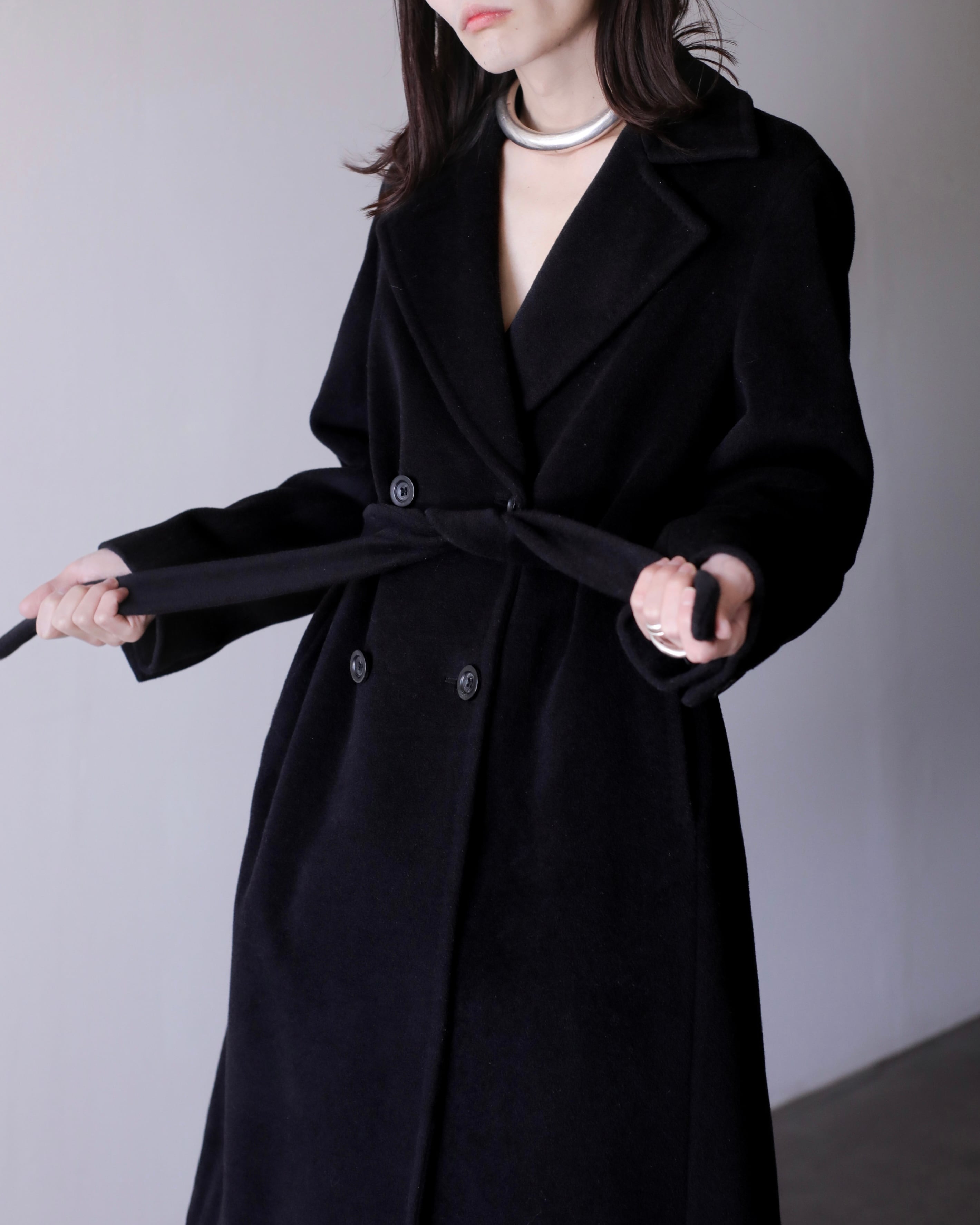 1990s Max Mara "shiro tag" double breasted cashmere mix fabric belted over coat Made In Italy