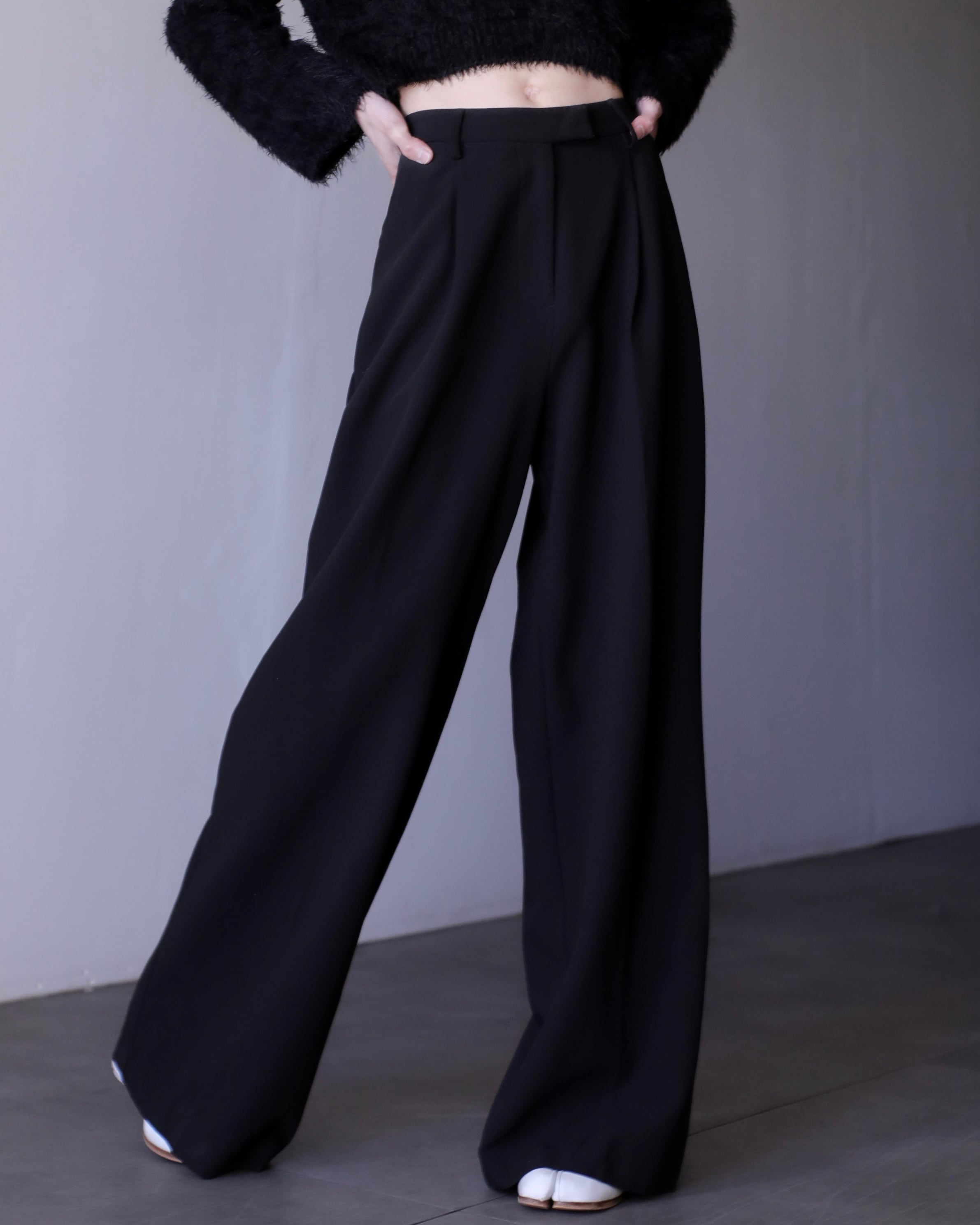 hi-waist 2tuck volume wide straight slacks toromi fabric