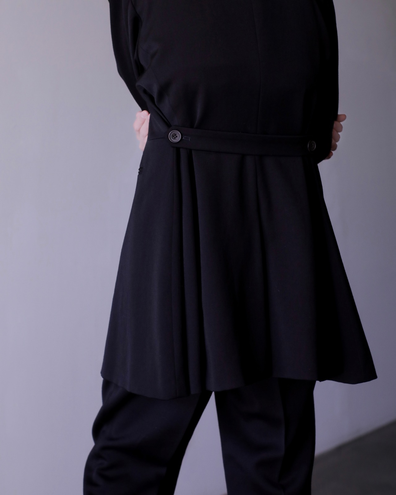 ベルトを外すとノンプリーツにもなる2way仕様。