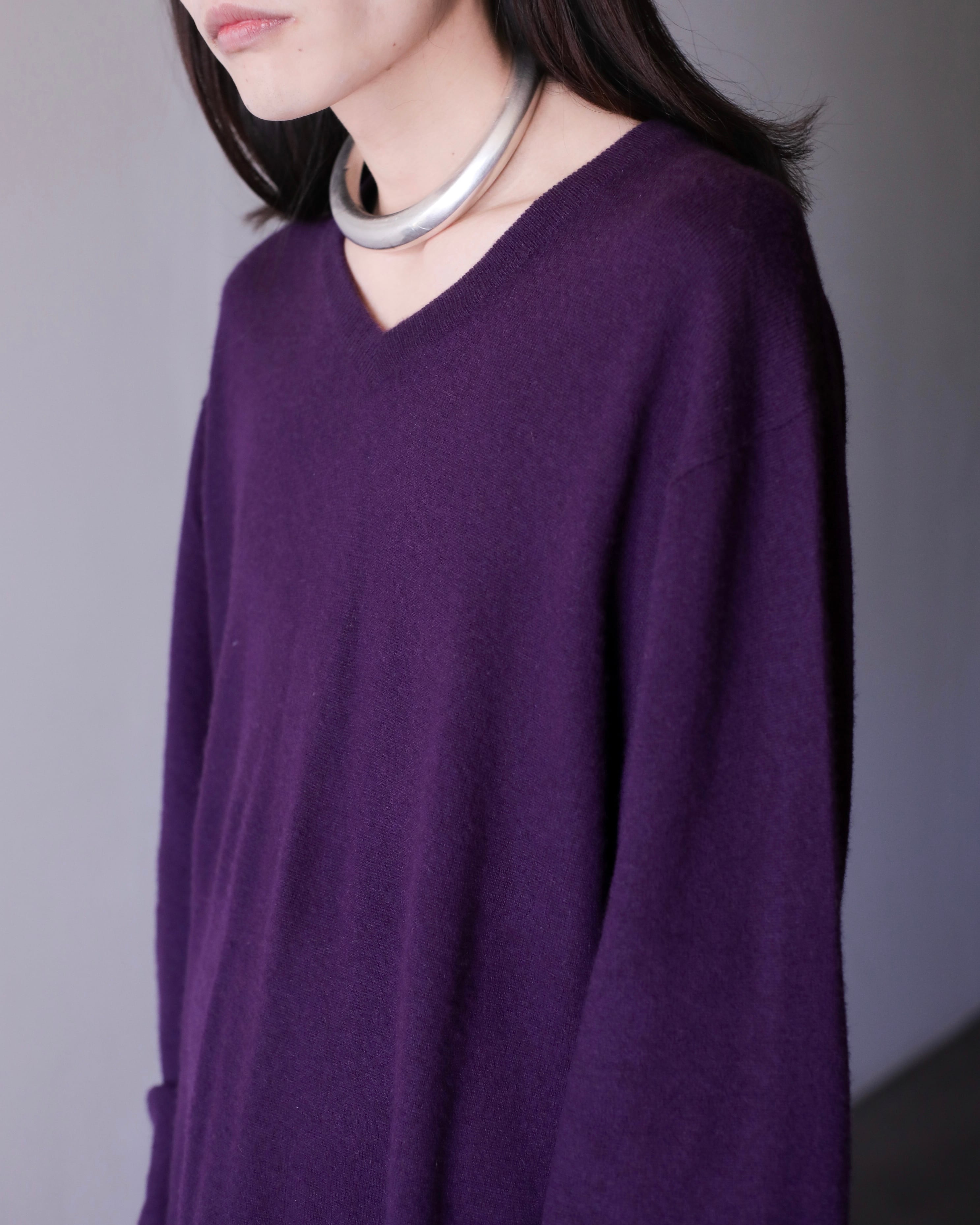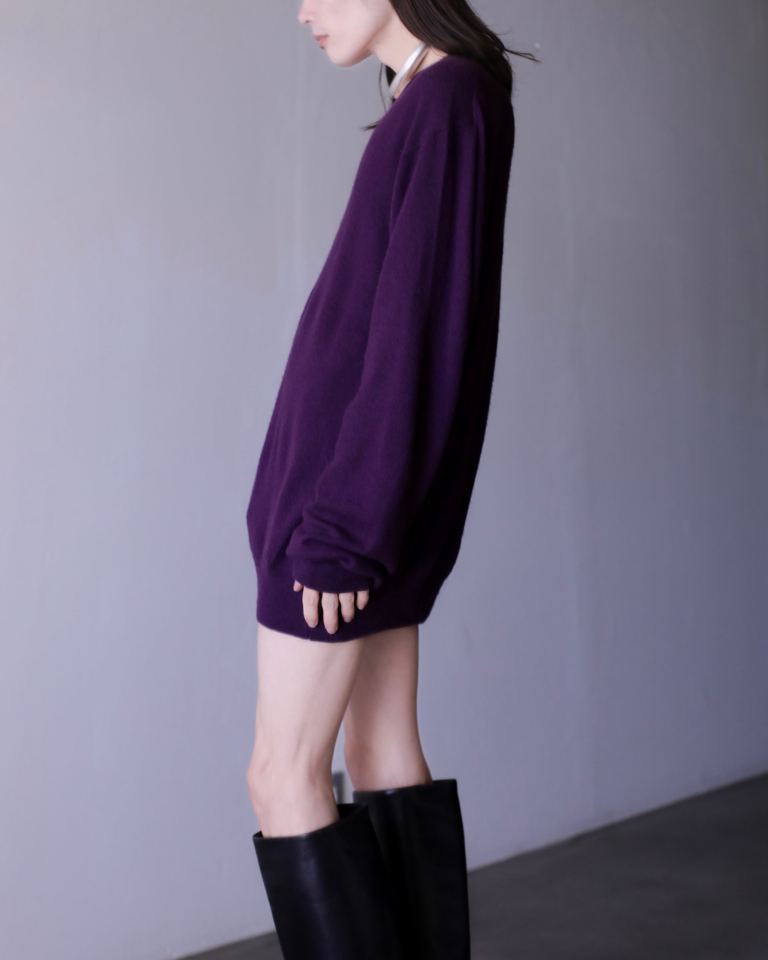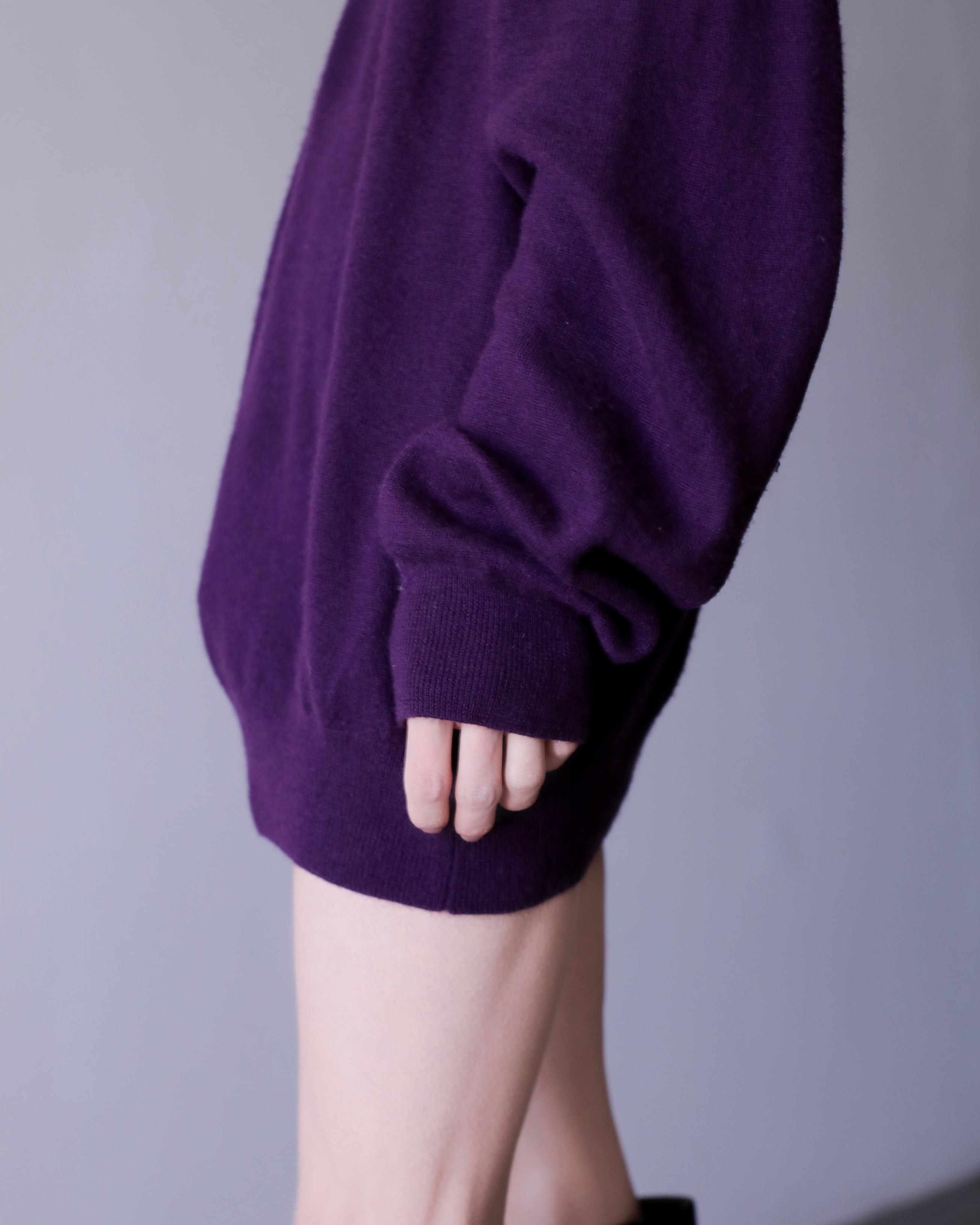 カラーはいらやしくない上品な深みのあるパープルカラー。ブラックのボトムスはもちろんグレーなどオーソドックスなカラーと相性抜群です。