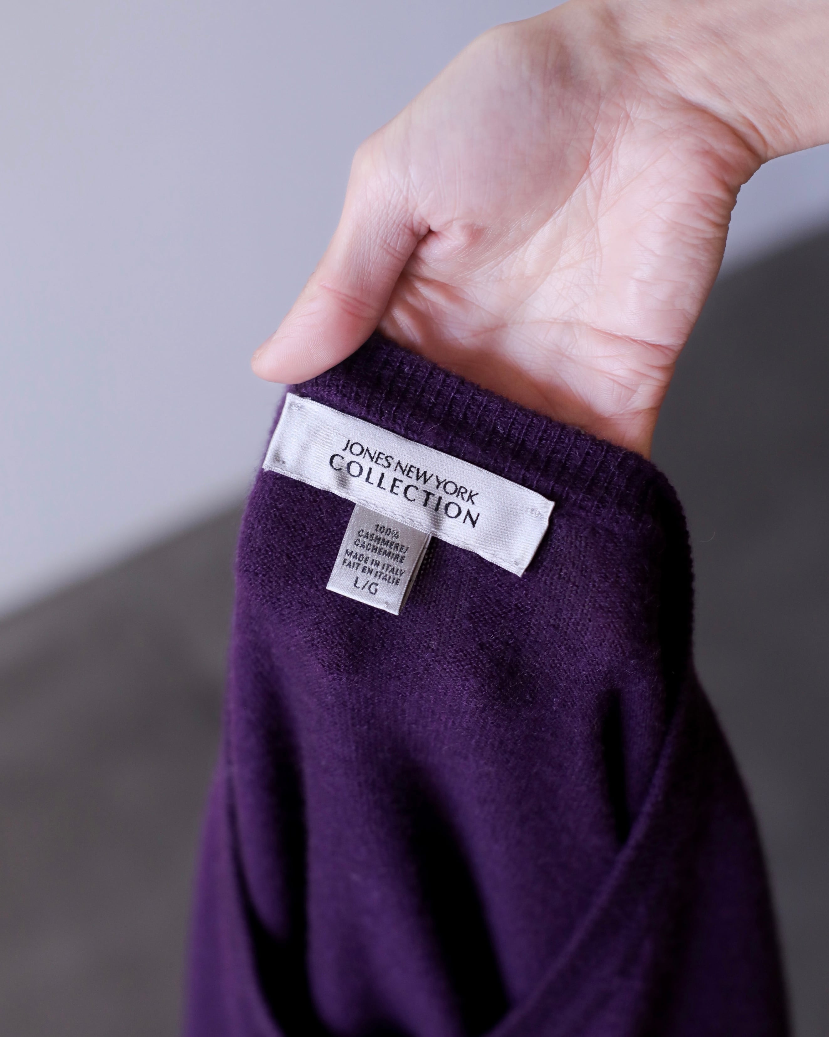 カシミヤニットは薄手すぎるペラペラな物も増えましたが、こちらはふかふかの透け感が全くない品の良いカシミヤニットです。