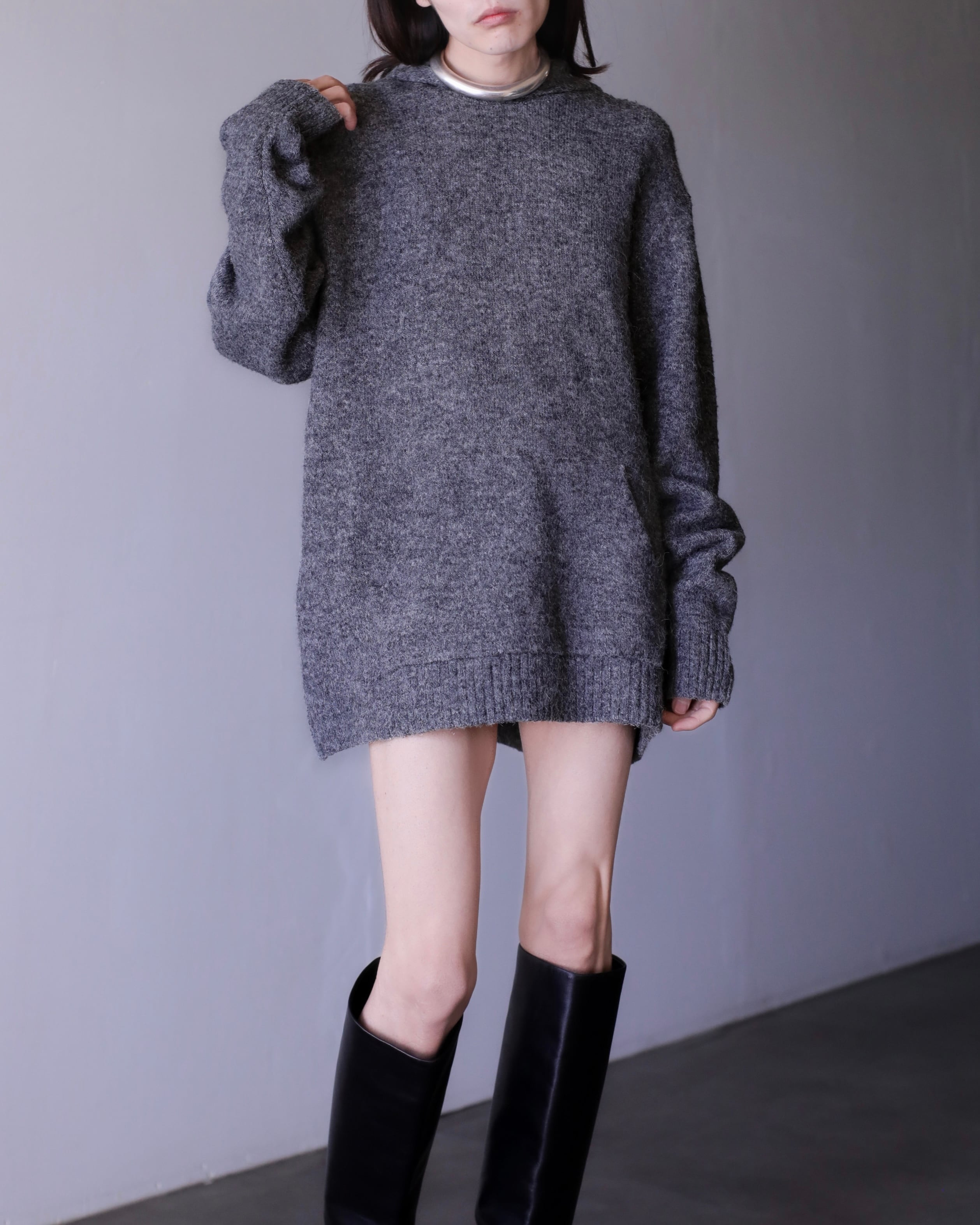 mokemoke knit foodie gray color oversized