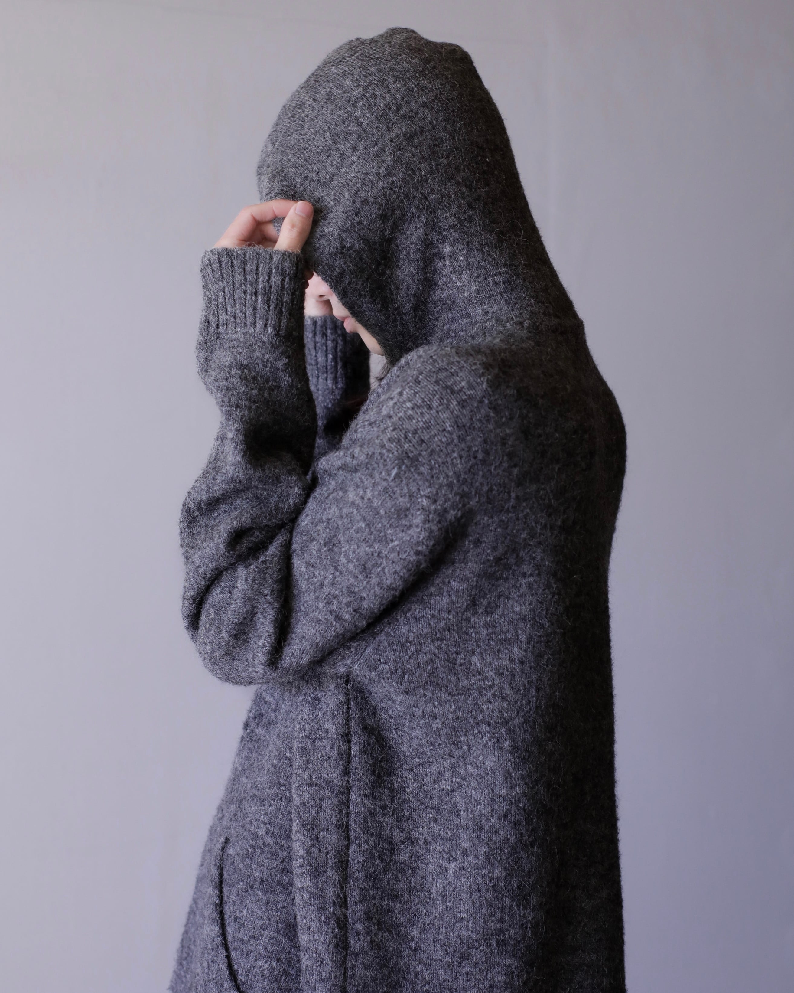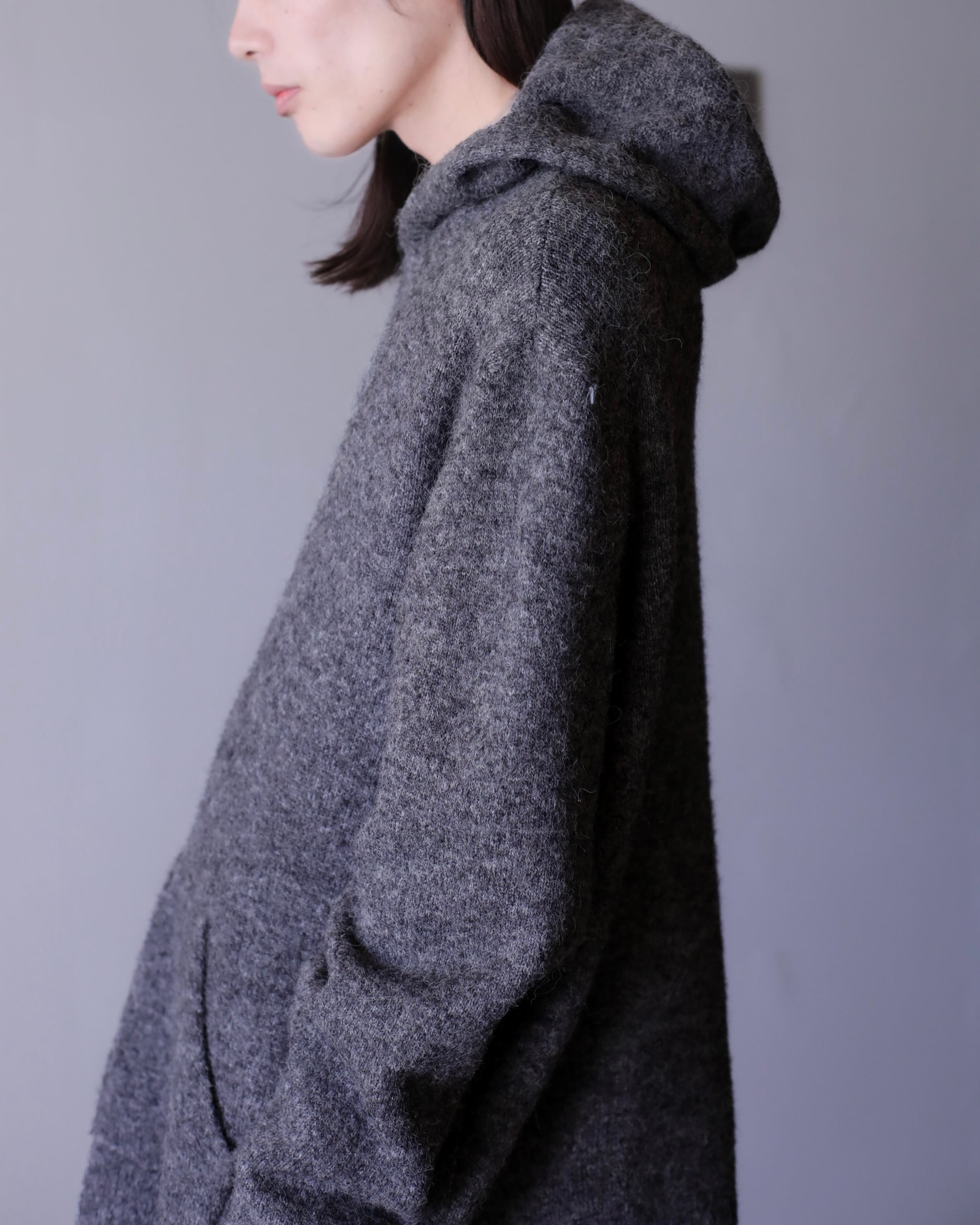 ニットながらスウェットパーカーのような形。