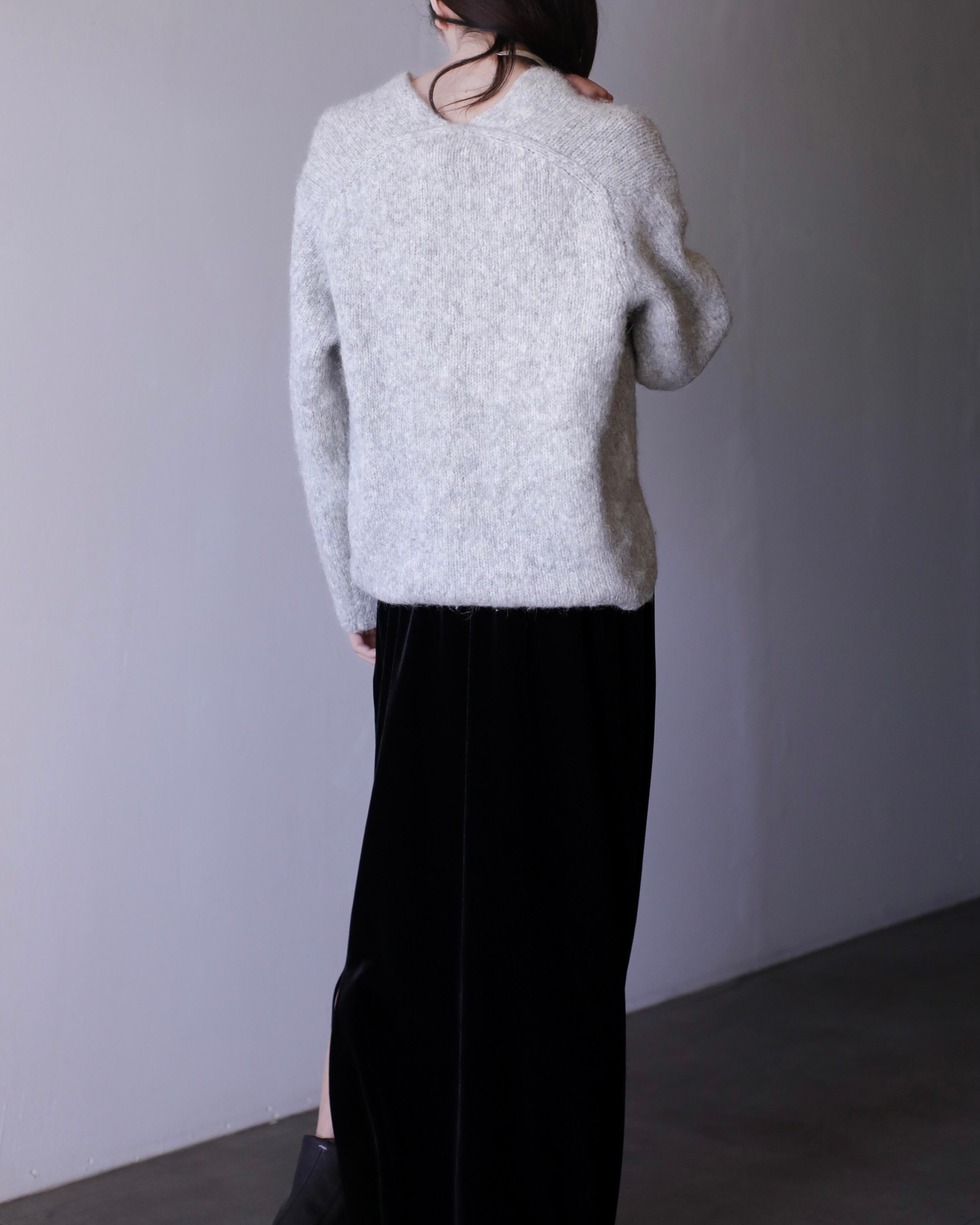 起毛感のある素材と相まって、甘くなりすぎず上品な印象に。