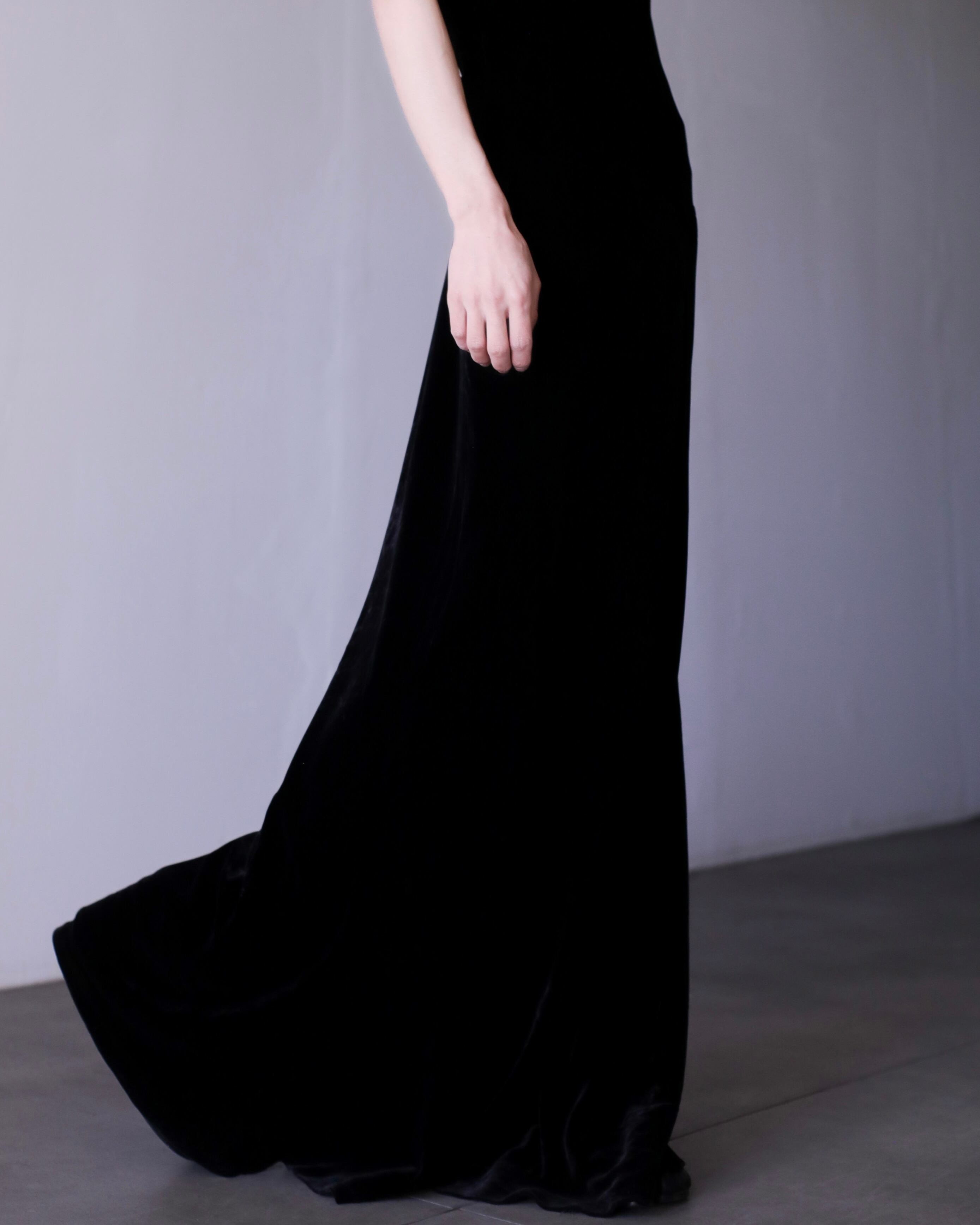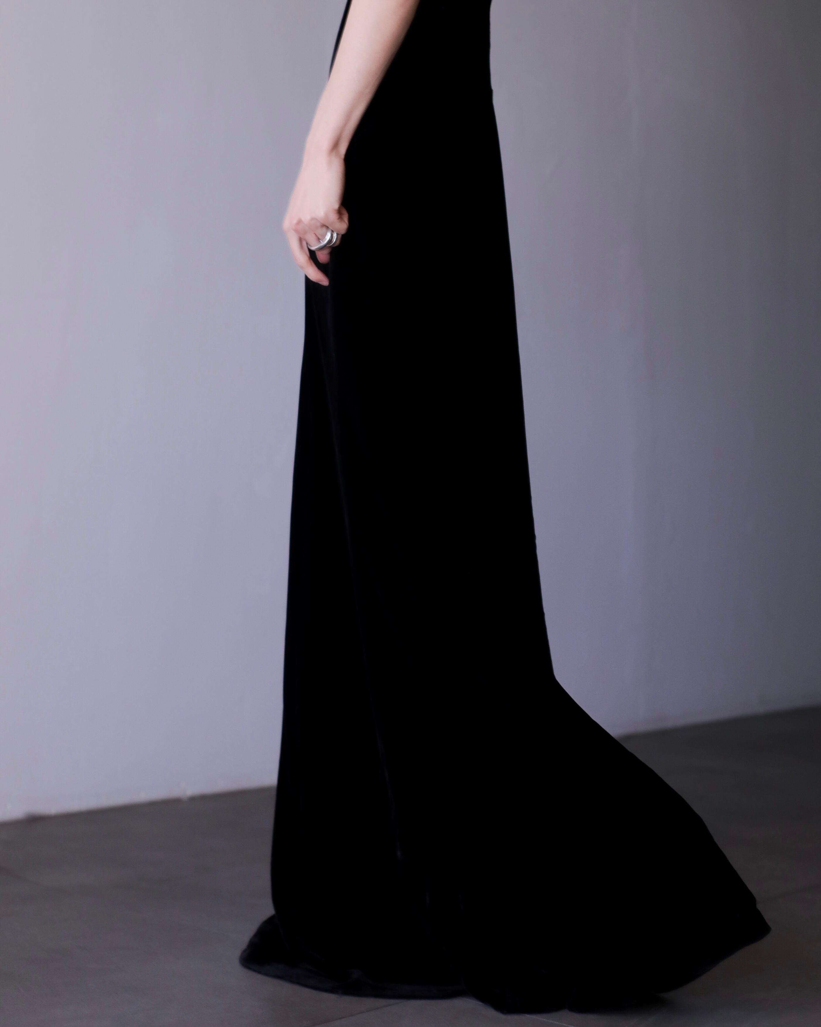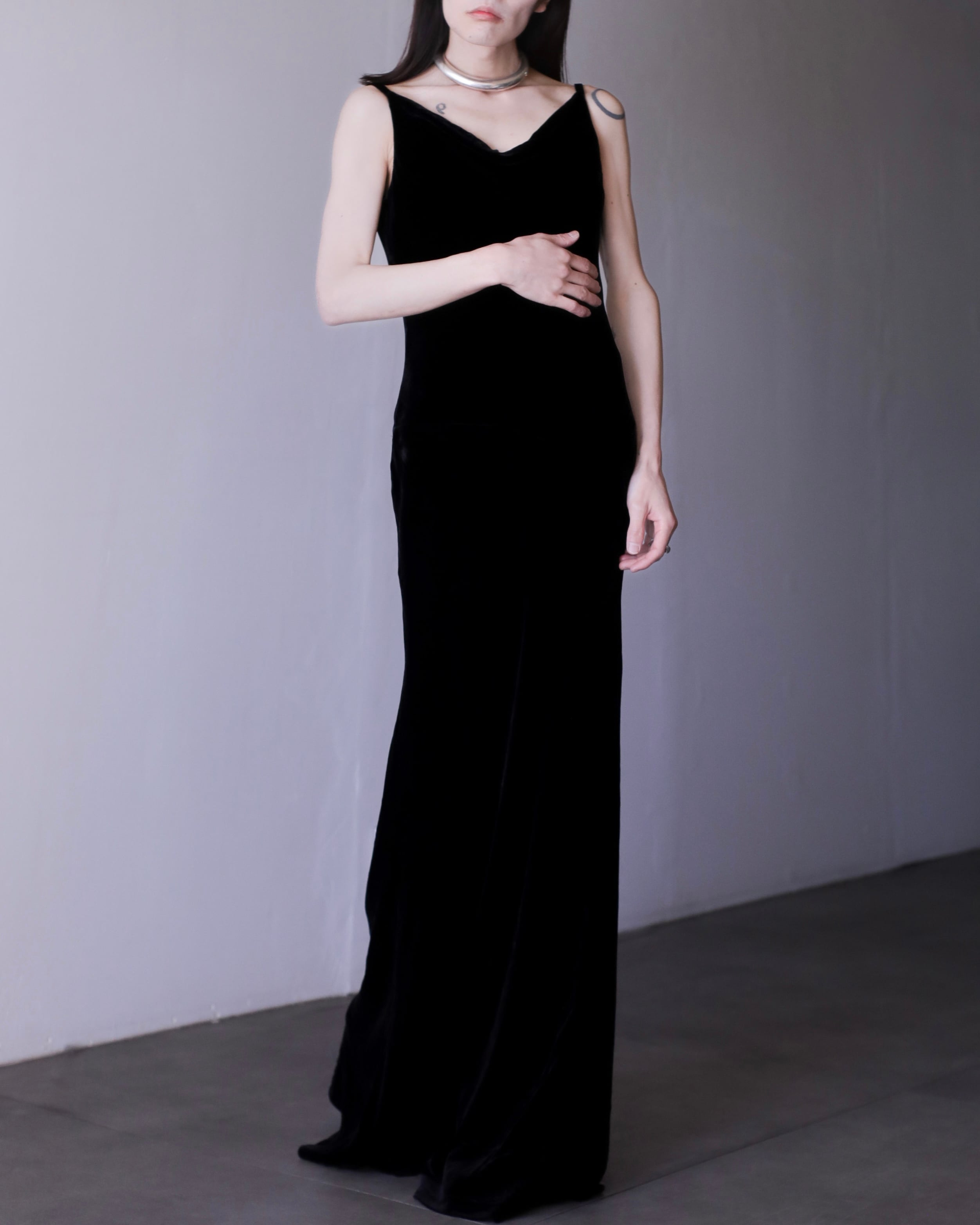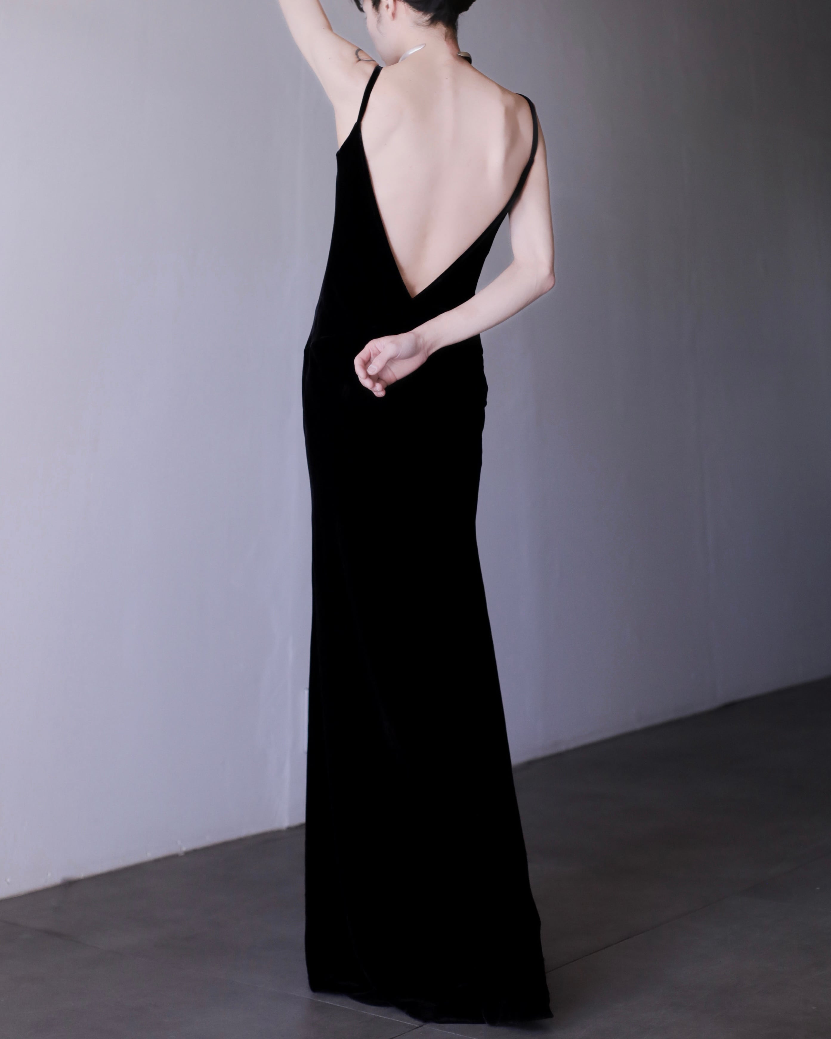 velours "senaka paccaan" deep V maxi length dress